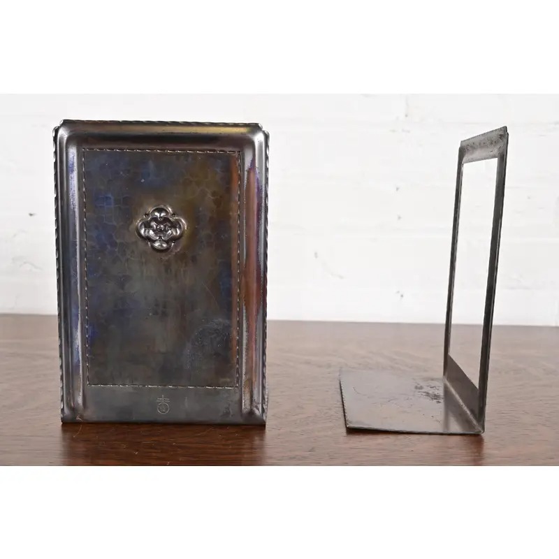 A gorgeous pair of Arts & Crafts period hand hammered copper bookends