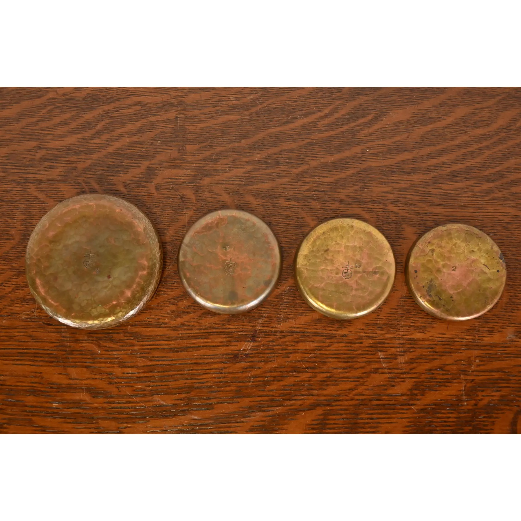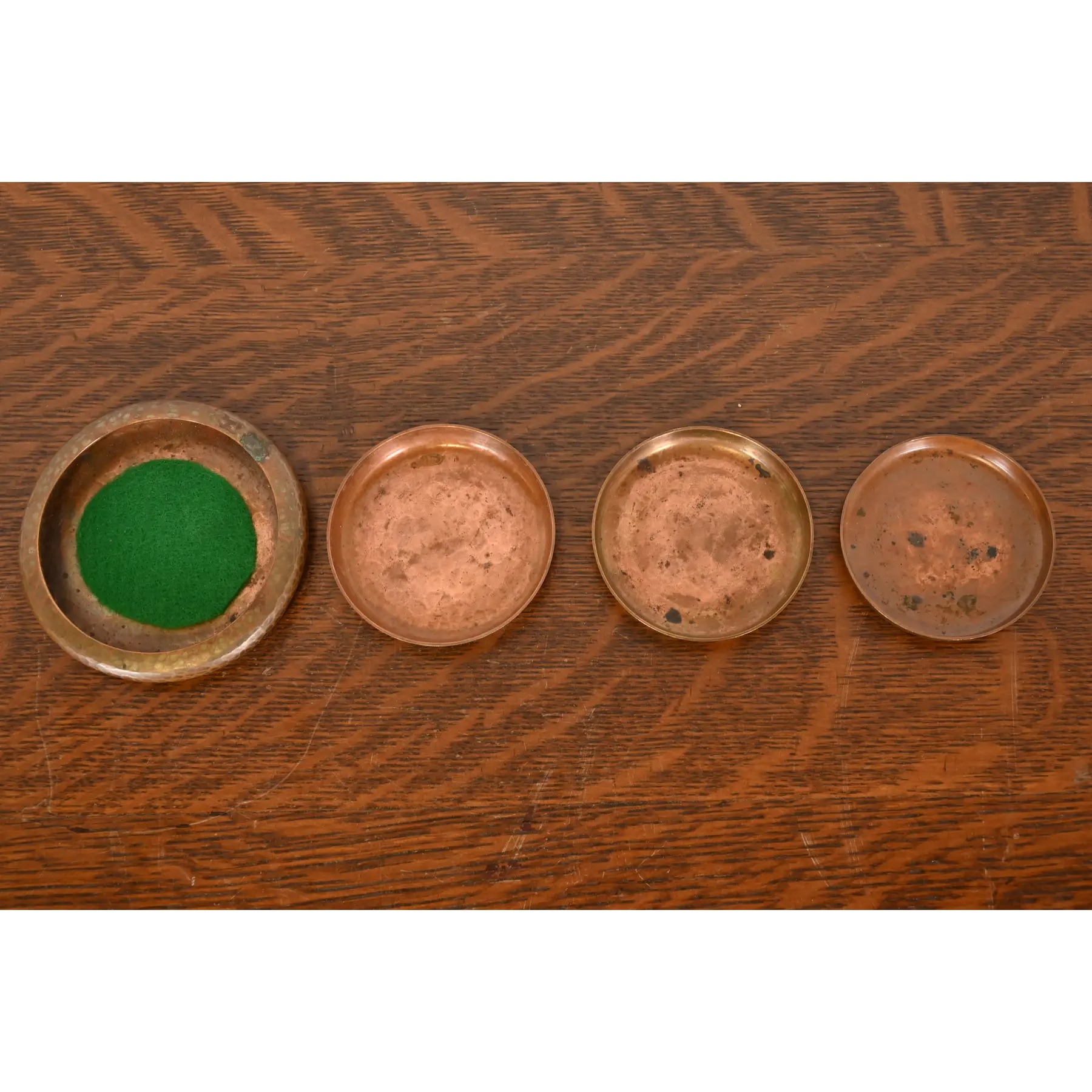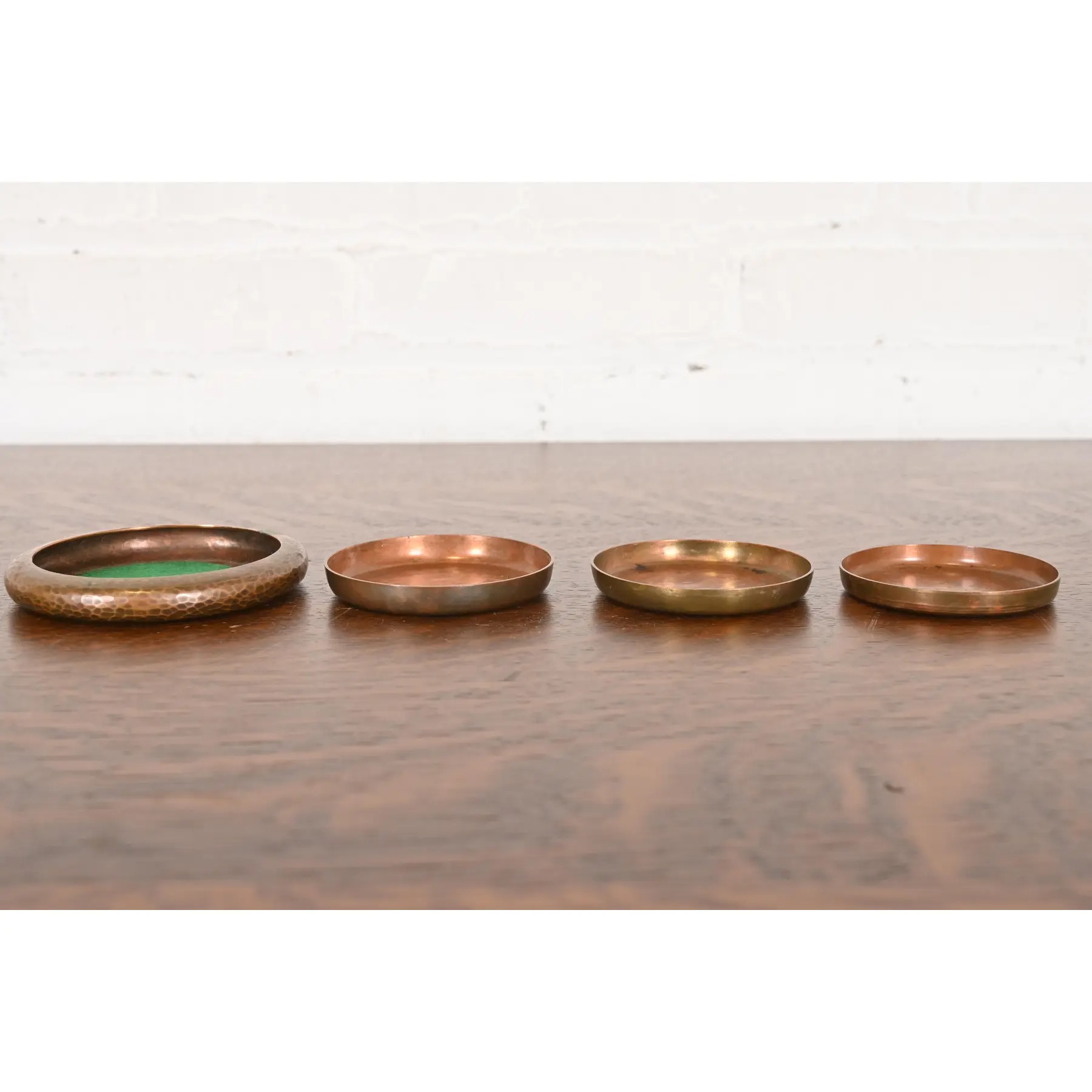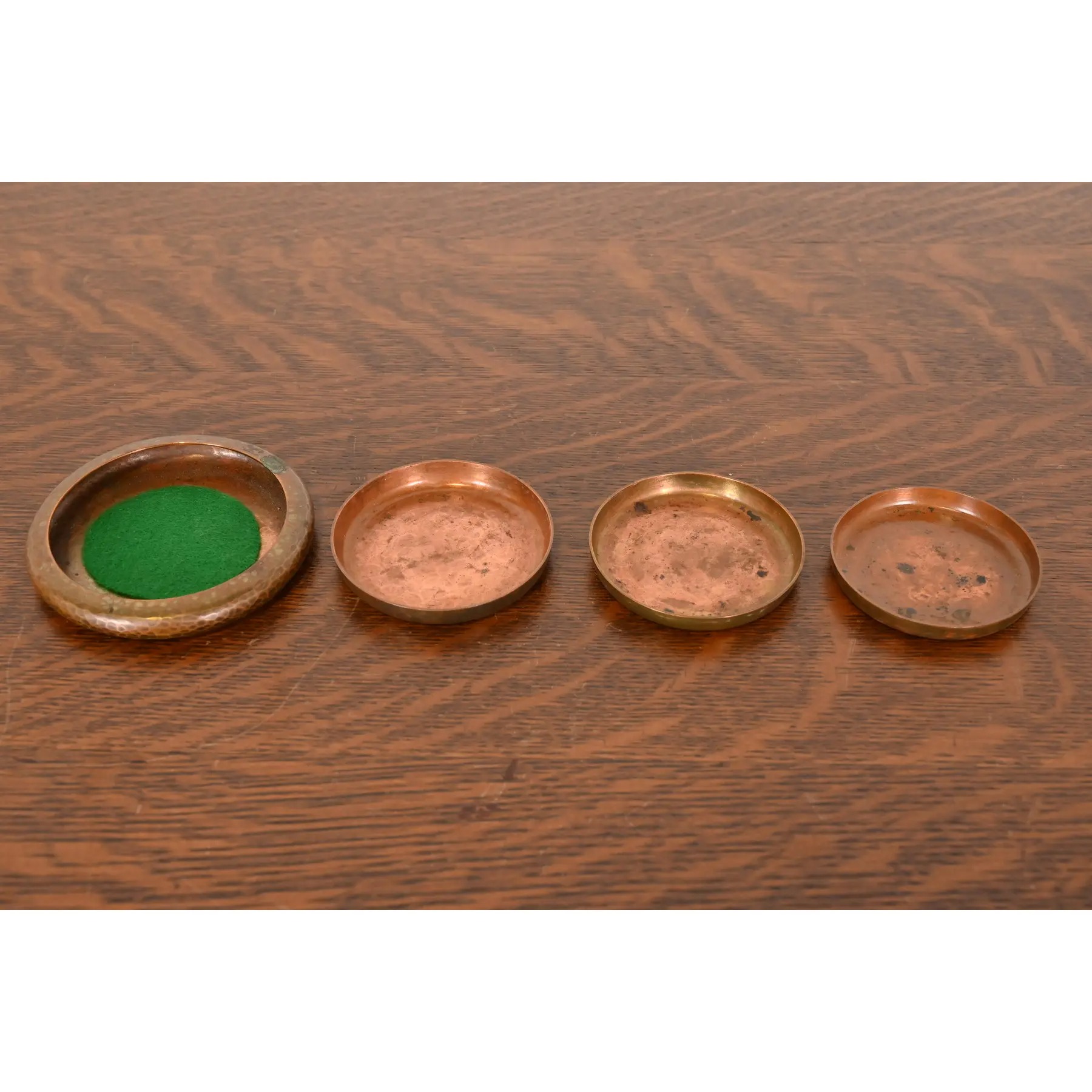 A gorgeous set of four Arts & Crafts period hammered copper coasters or trinket dishes