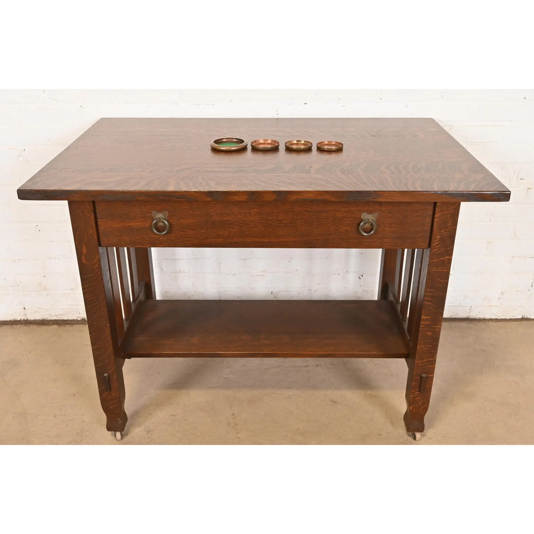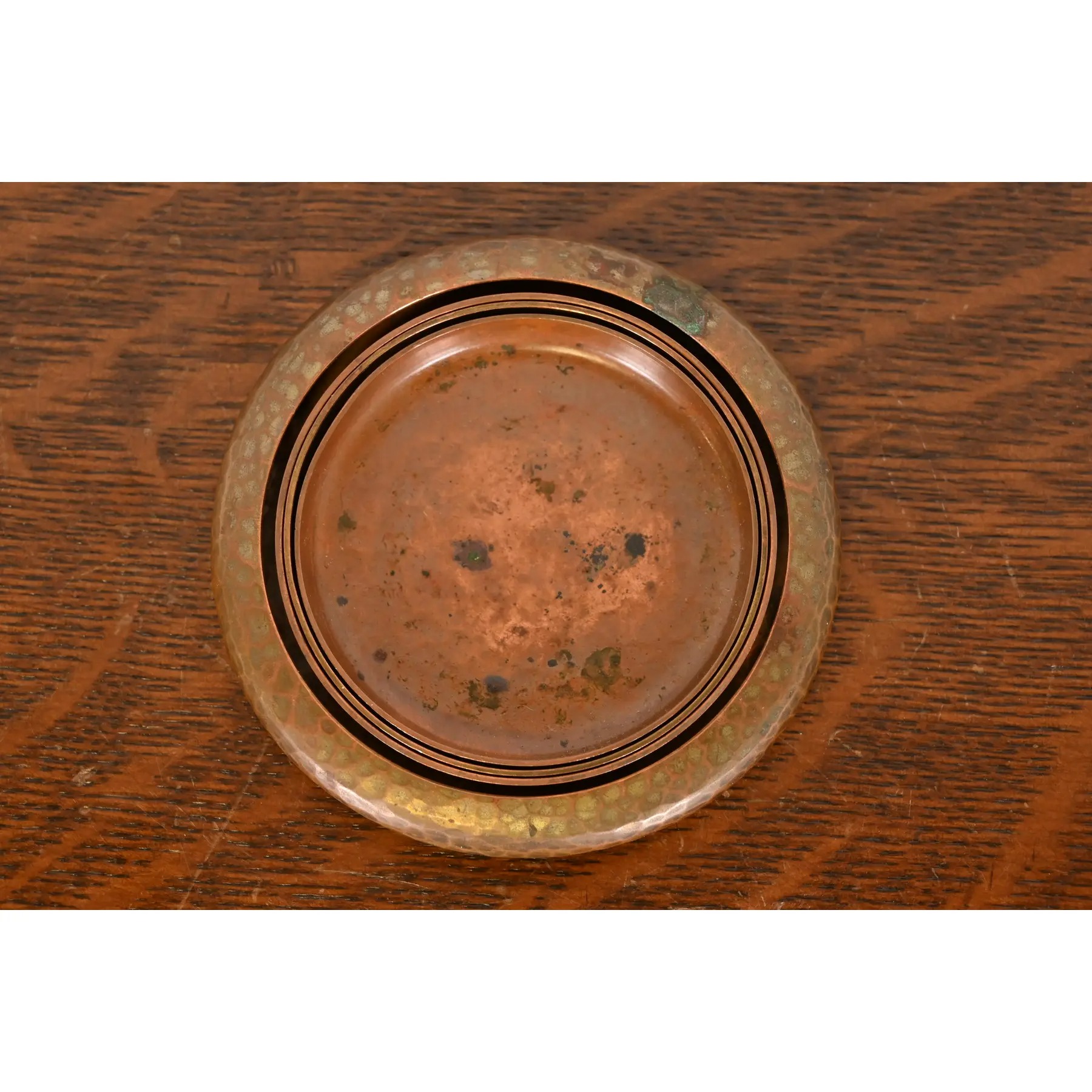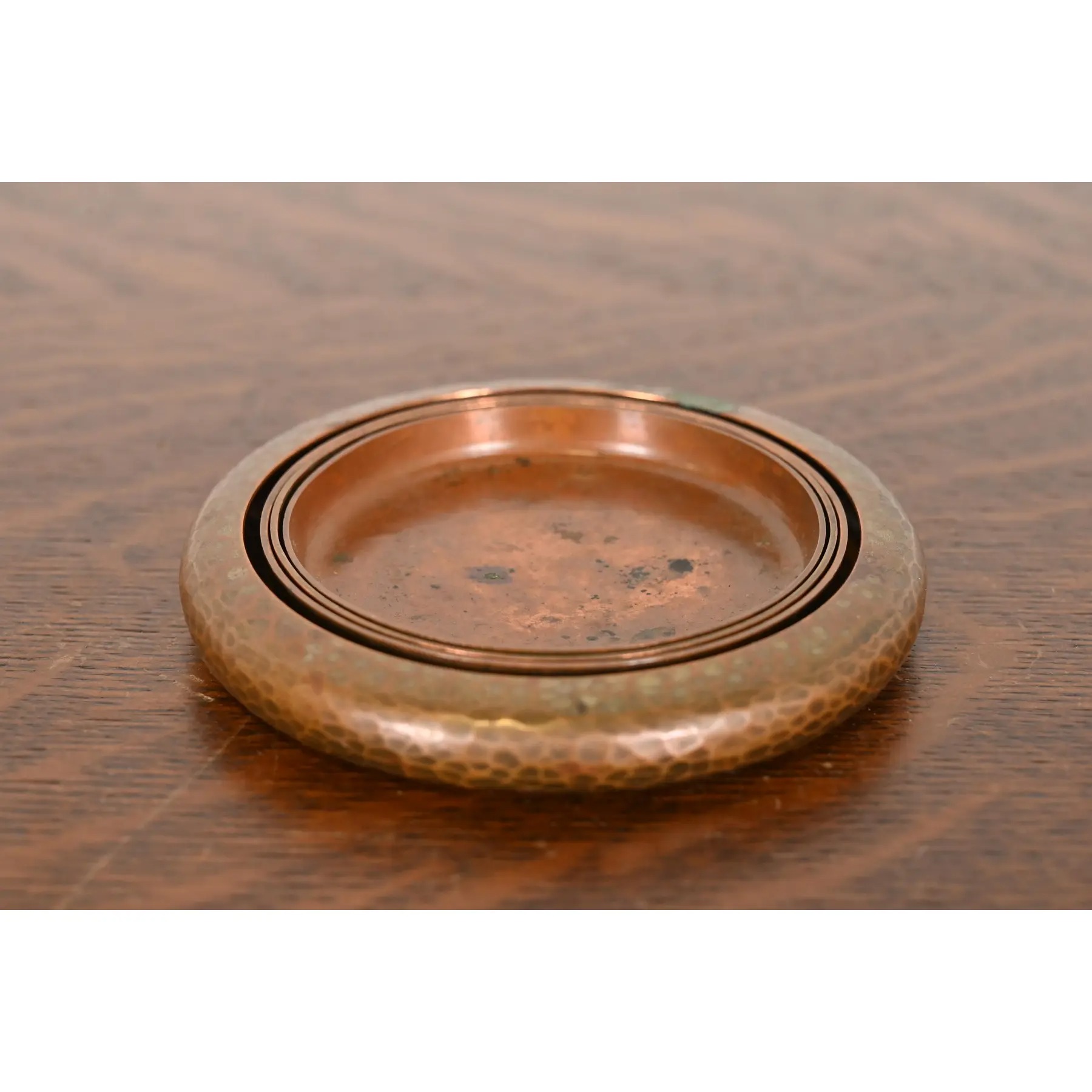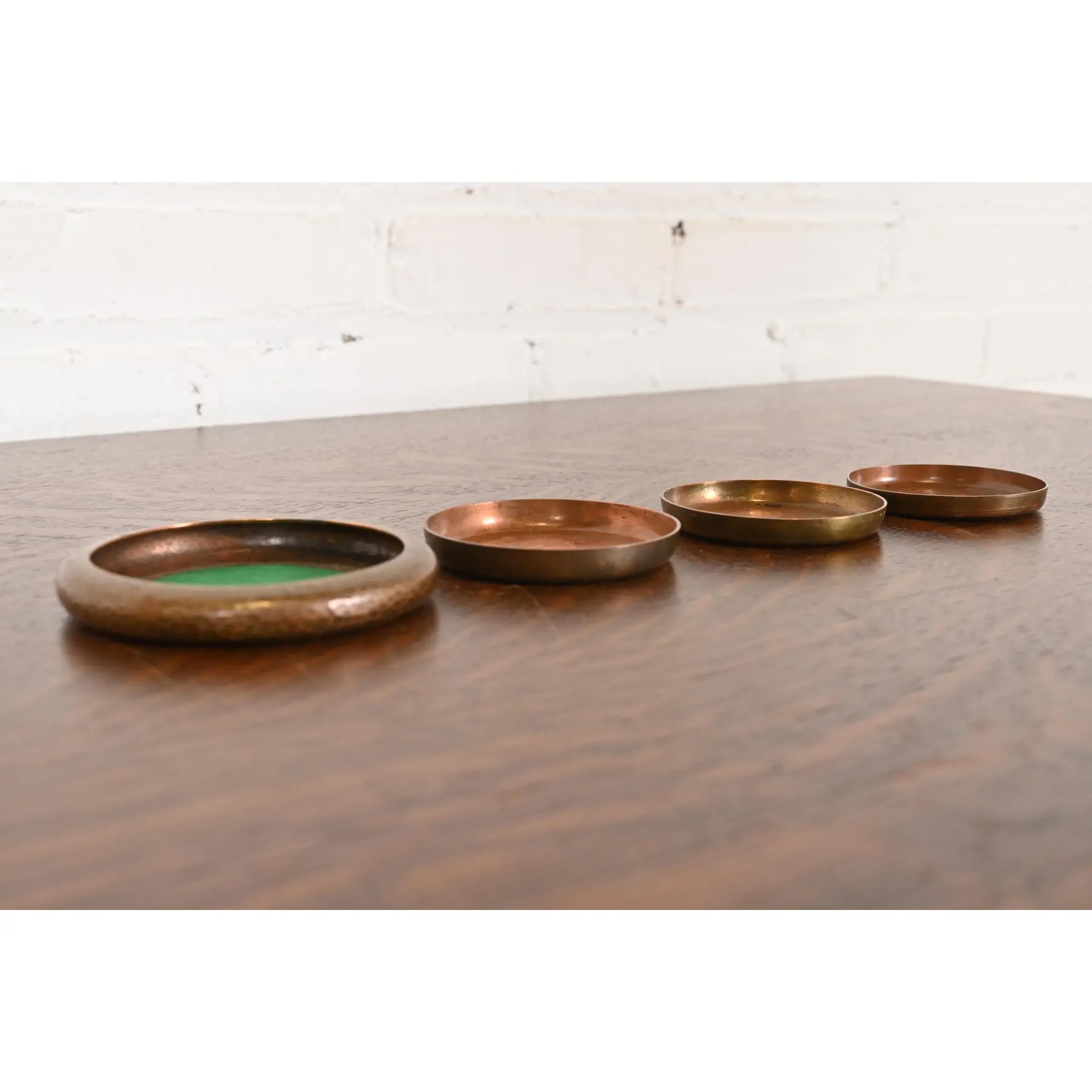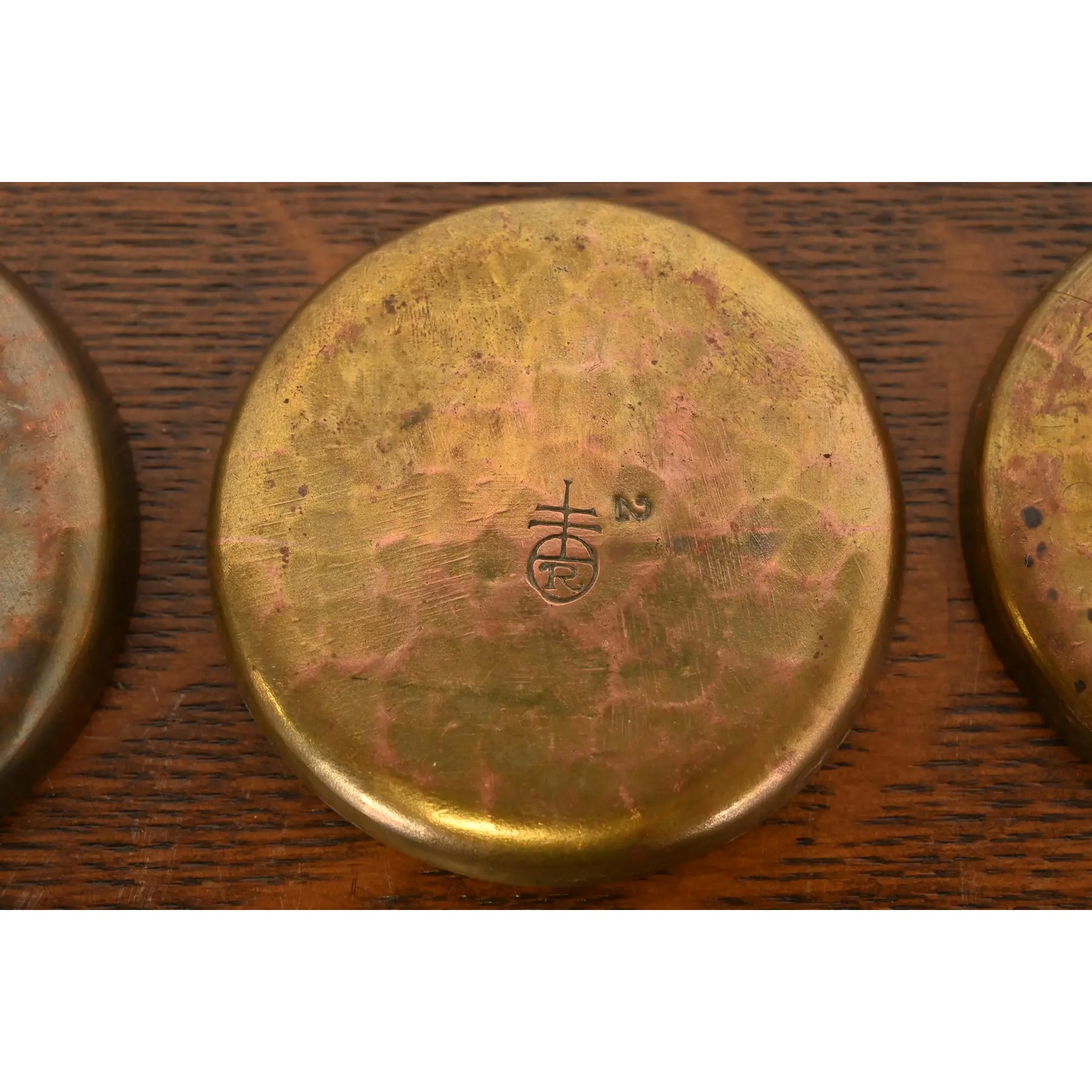 A gorgeous set of four Arts & Crafts period hammered copper coasters or trinket dishes