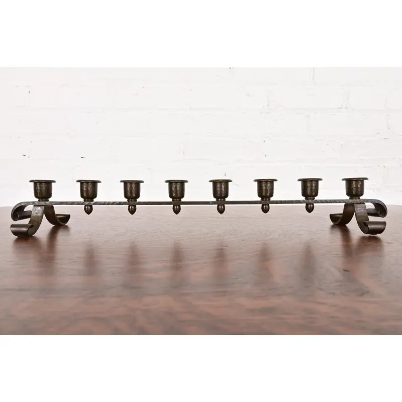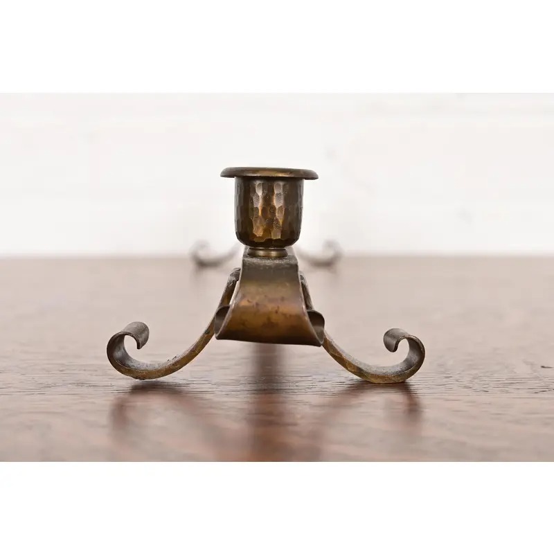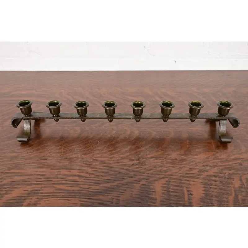 A gorgeous Arts & Crafts period hand hammered copper brass finished eight-light candelabra