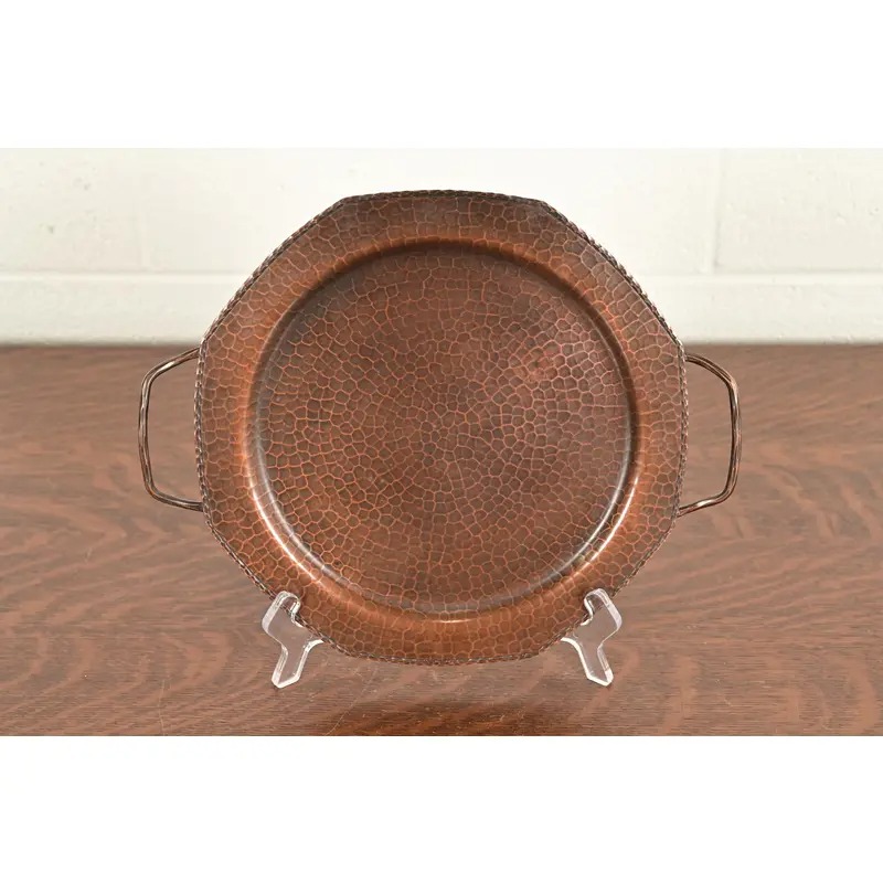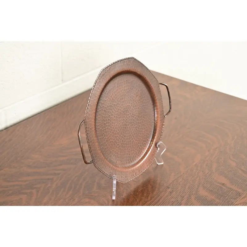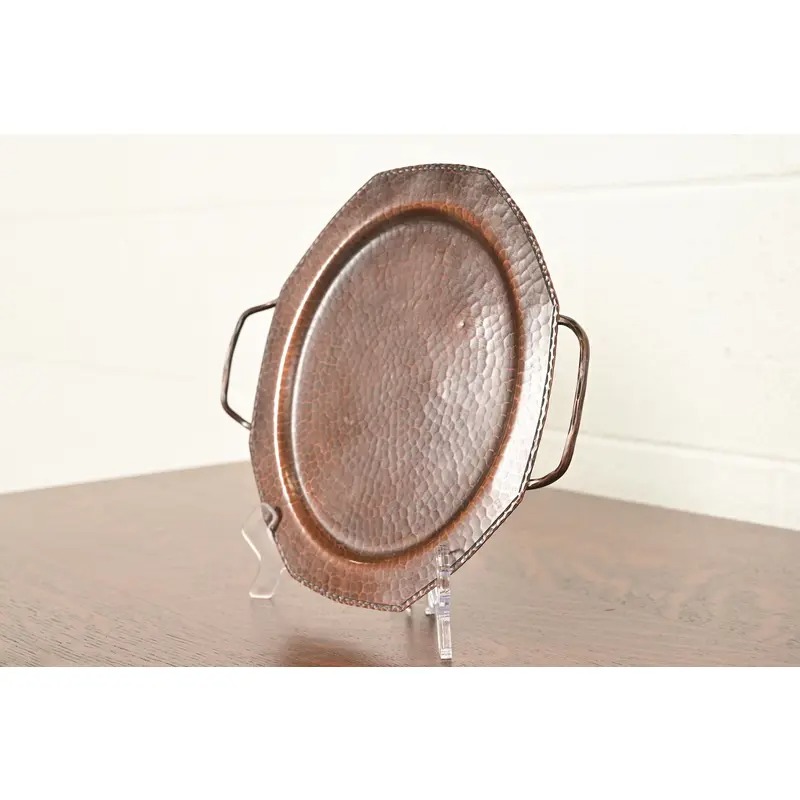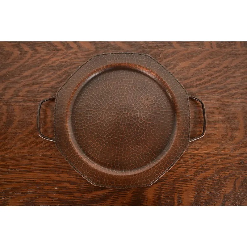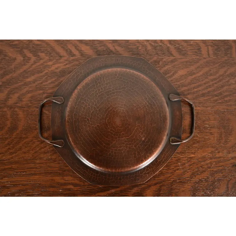 A gorgeous Arts & Crafts period hand hammered copper tray with handles