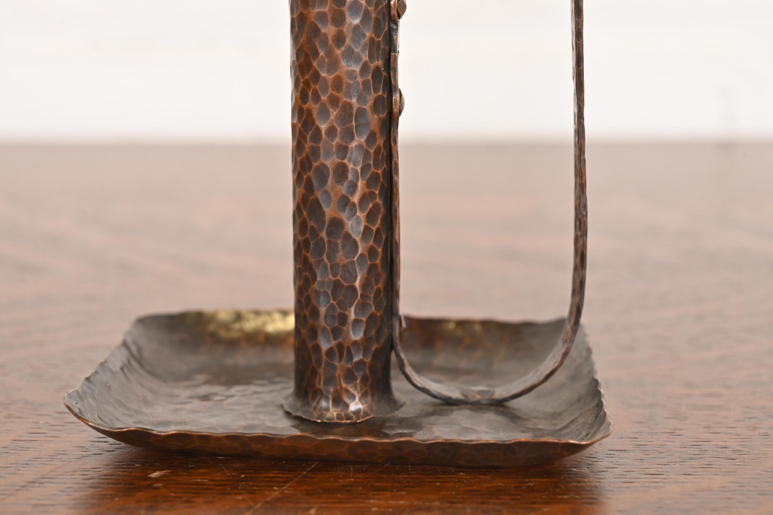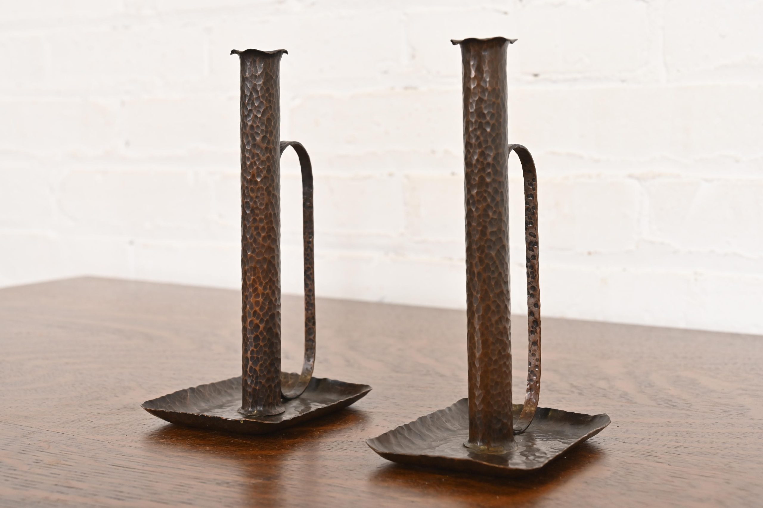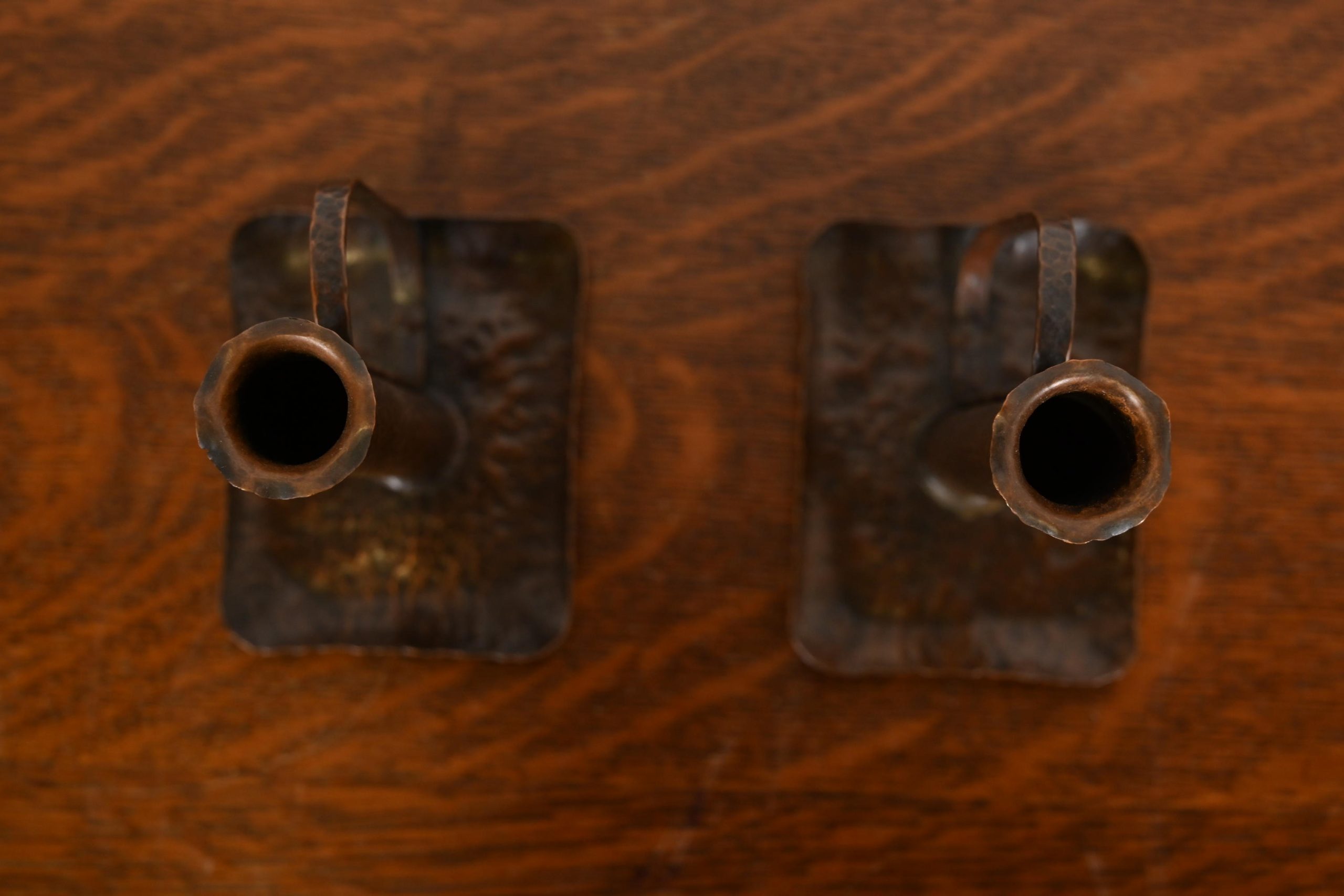 Roycroft Style Arts & Crafts Hammered Copper Handled Candlesticks, Pair