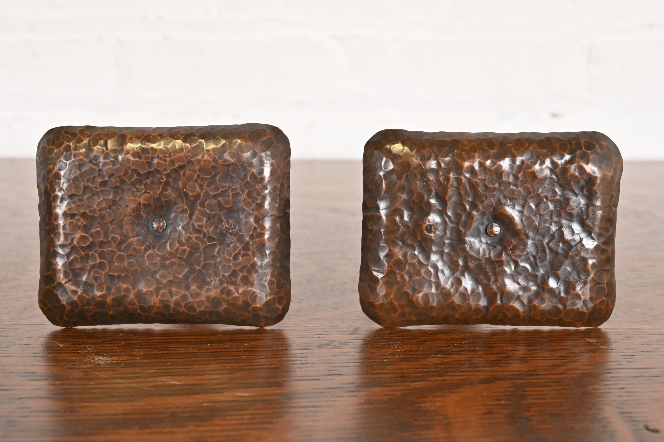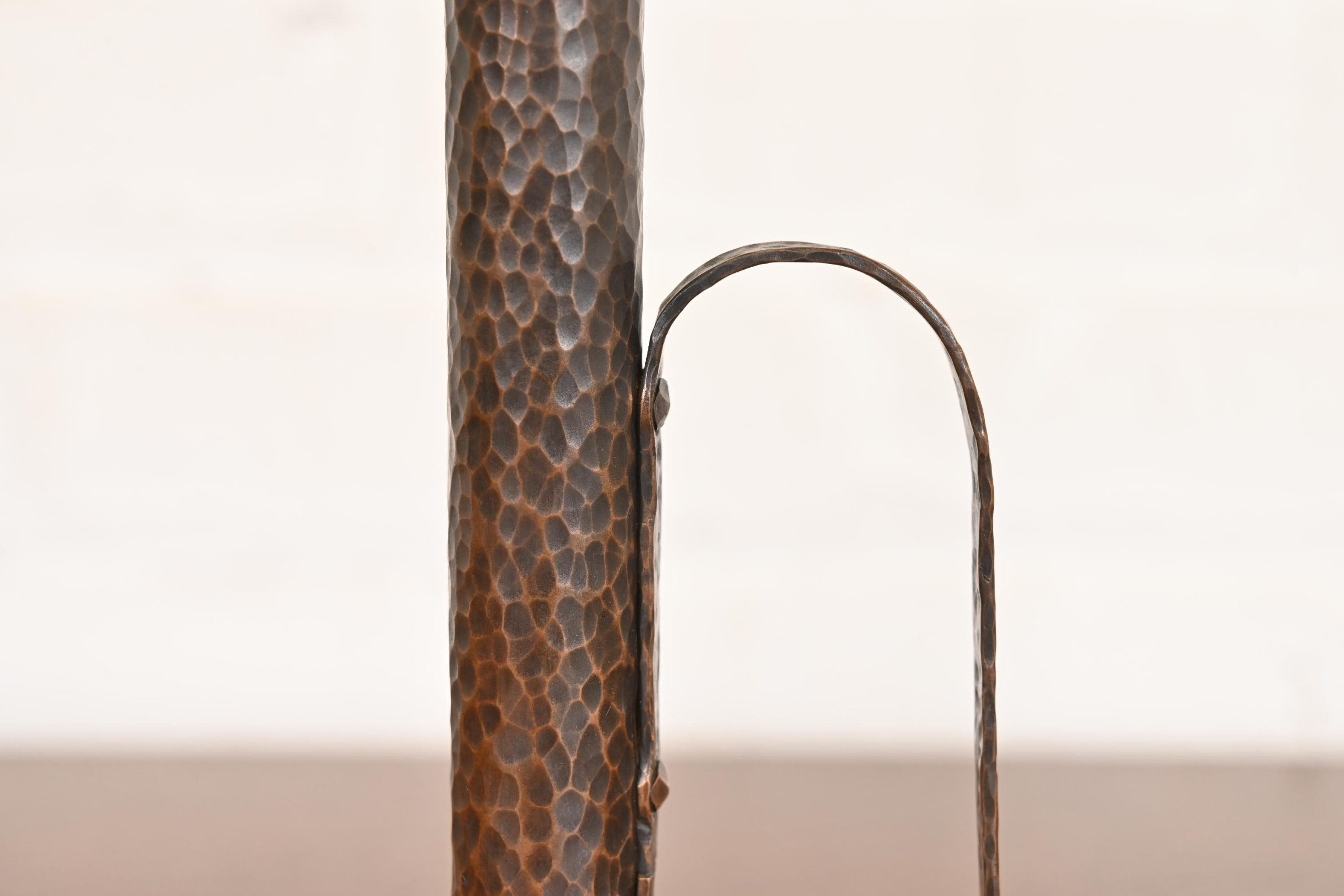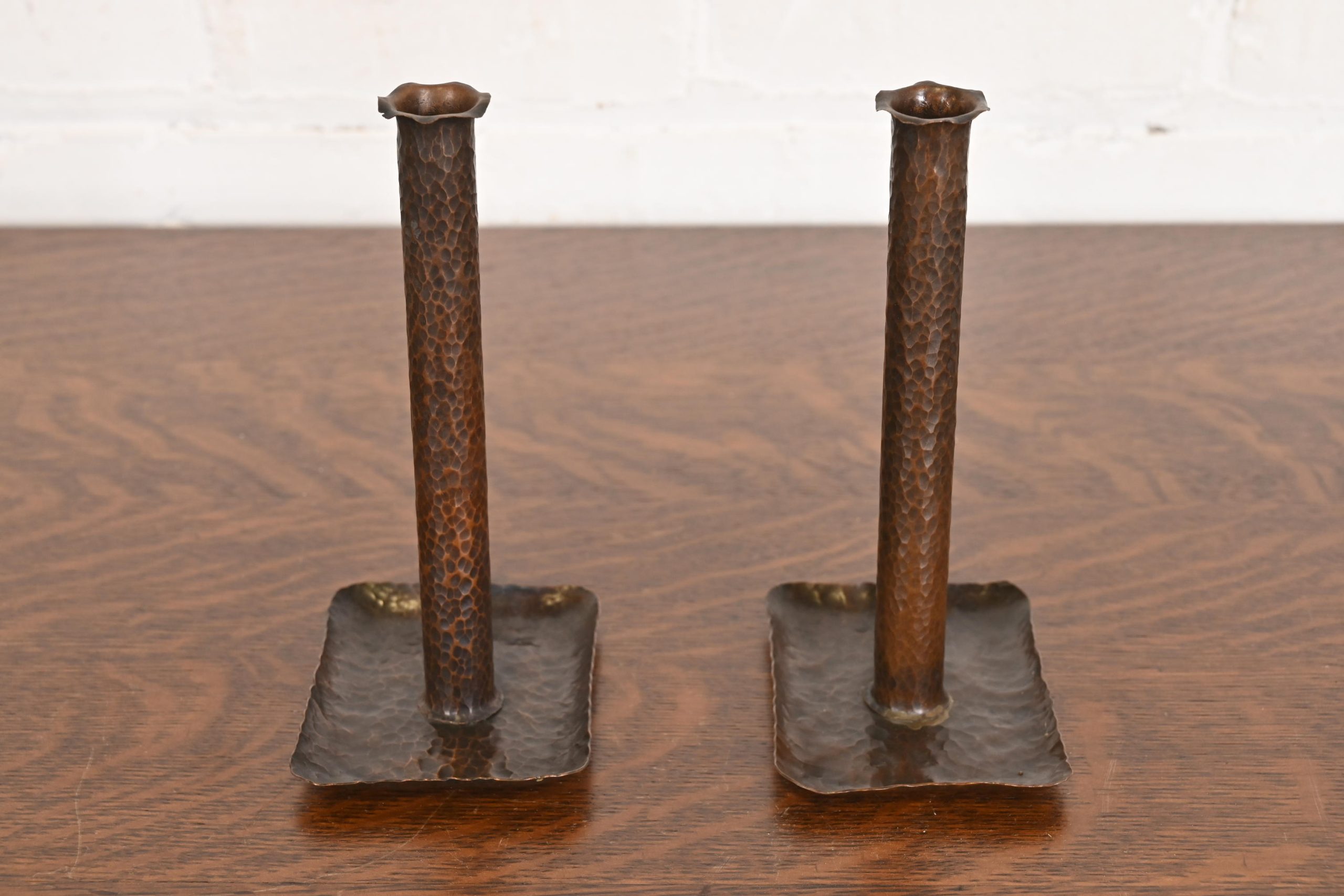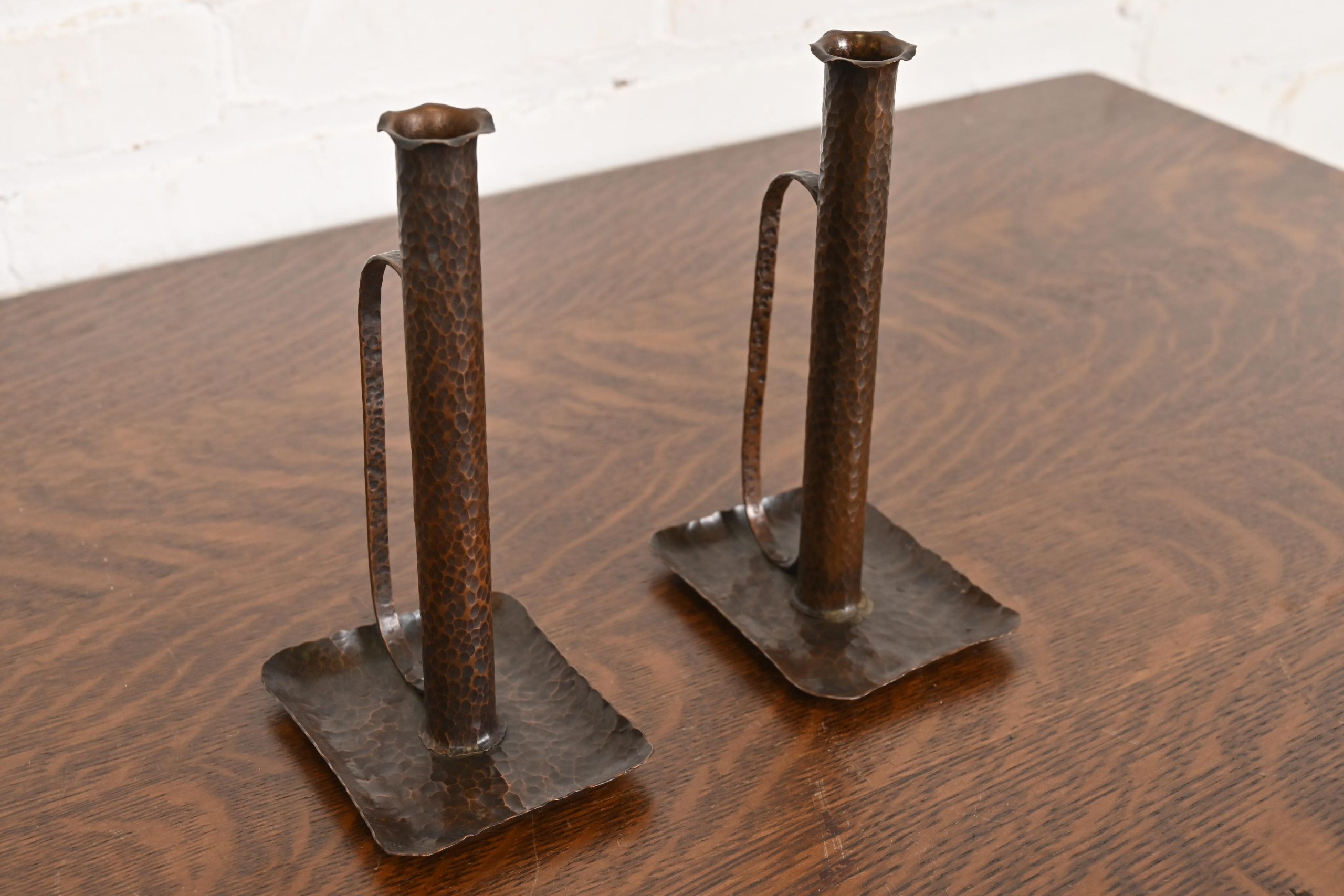 Roycroft Style Arts & Crafts Hammered Copper Handled Candlesticks, Pair