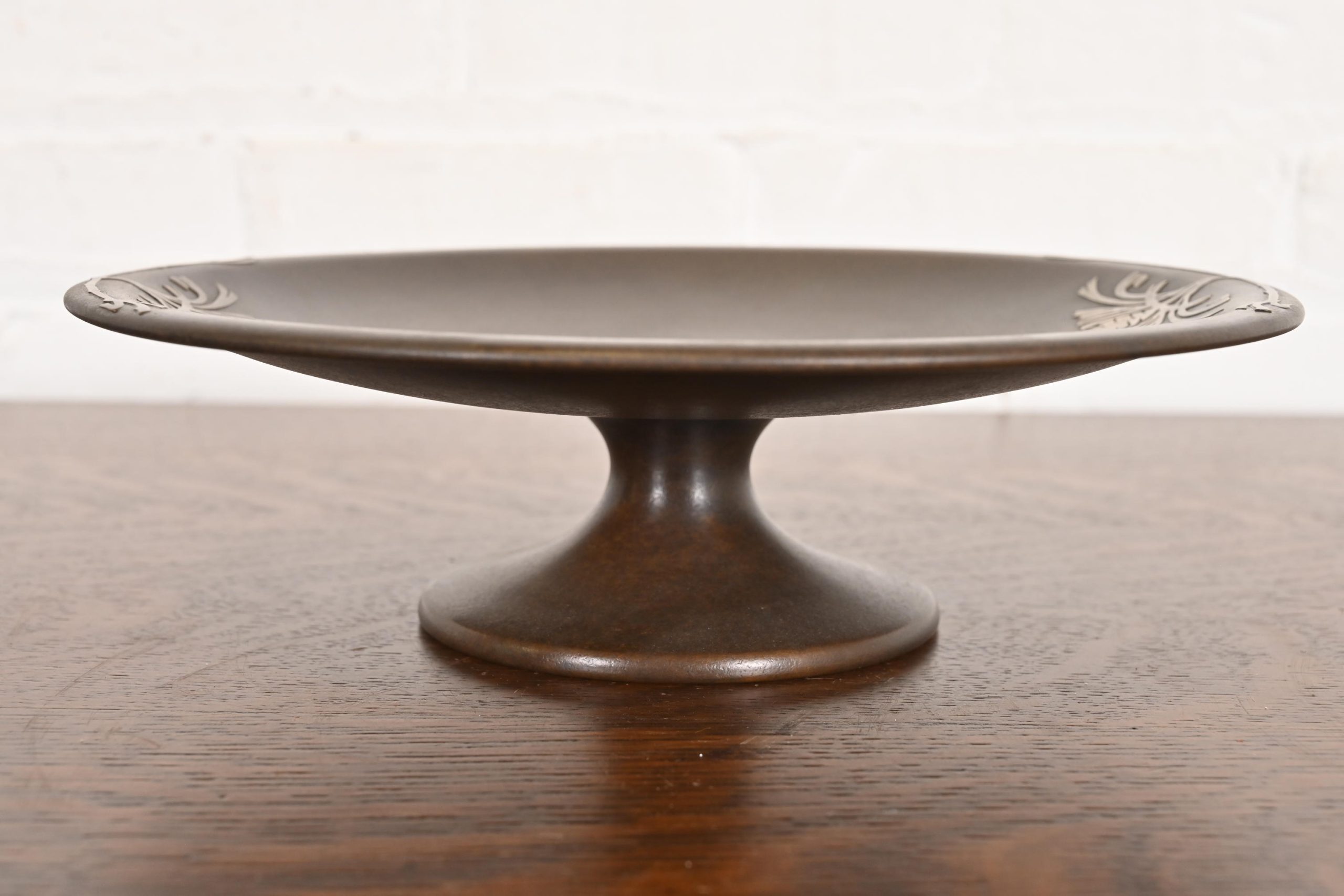 A beautiful Arts & Crafts period sterling silver on bronze footed centerpiece bowl or compote dish