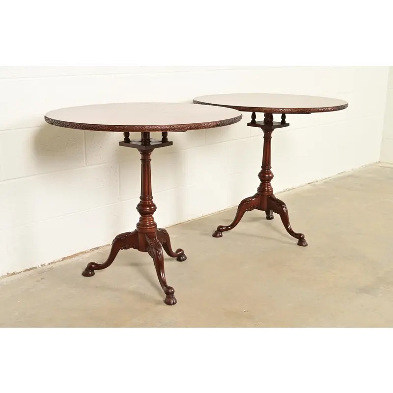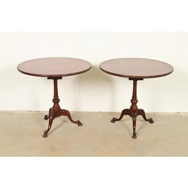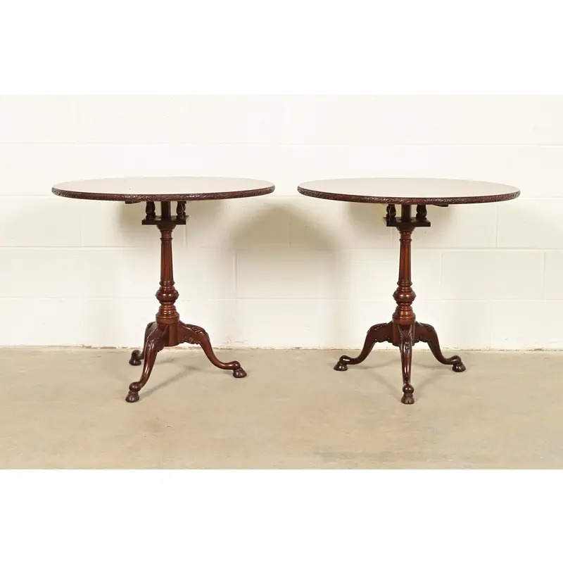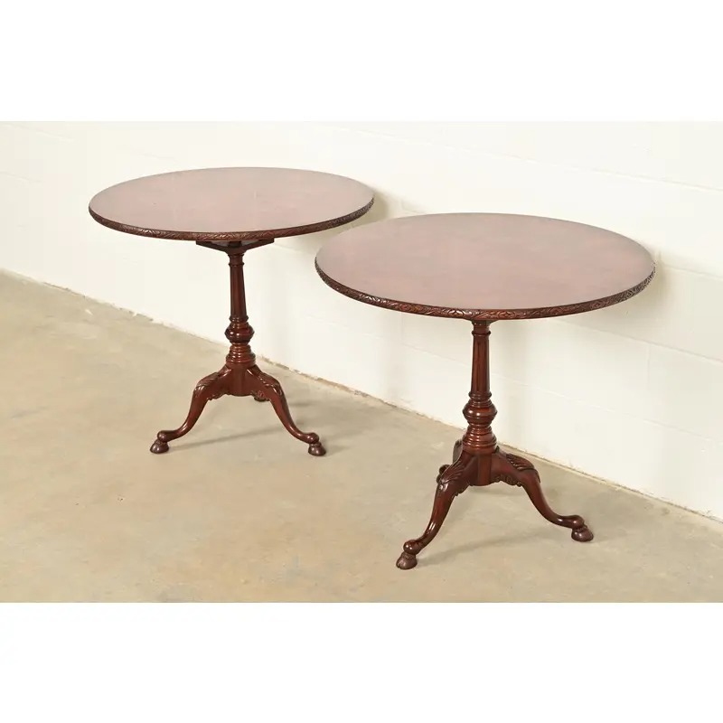 A gorgeous pair of Georgian or Chippendale style pedestal tea tables or side tables