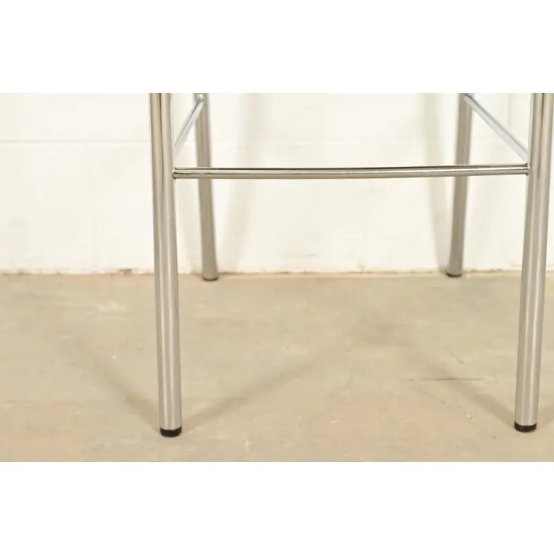 Leather upholstered seats and backs, with chrome frames.