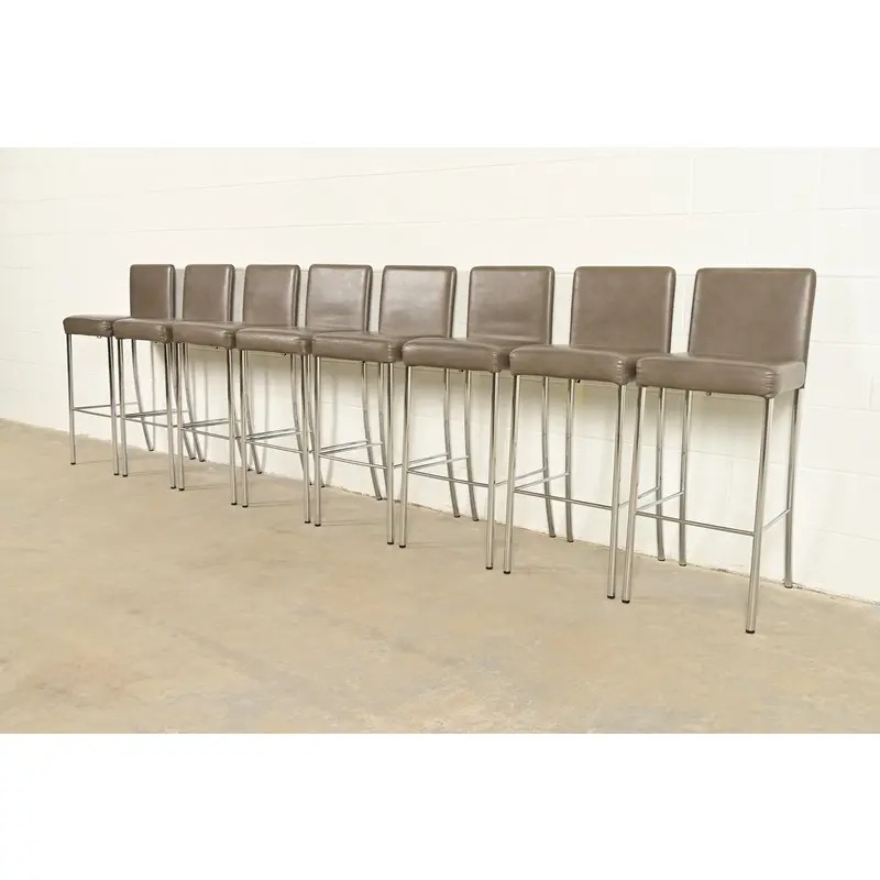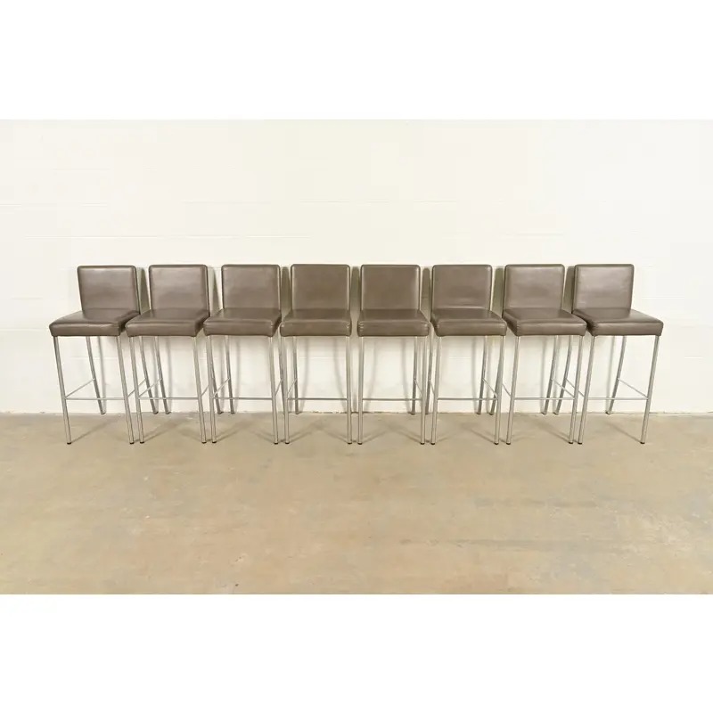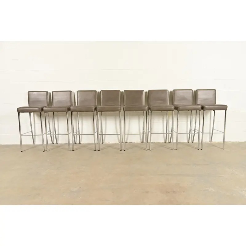 Steelcase Coalesse Modern Leather and Chrome Bar Stools, Set of Eight