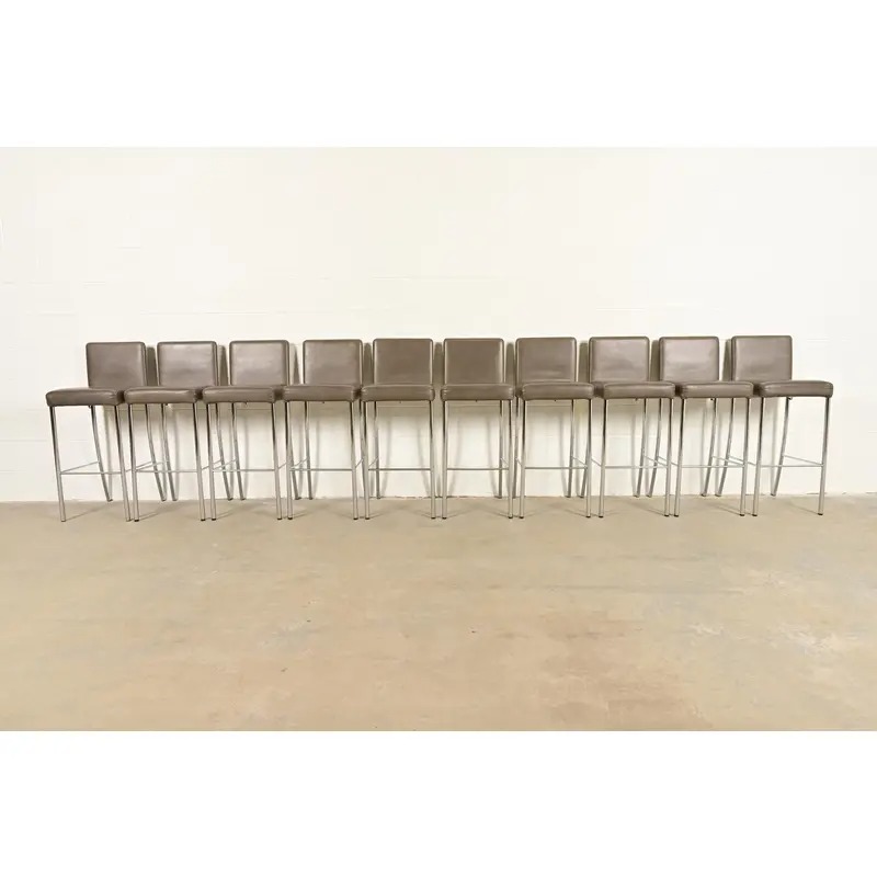 Steelcase Coalesse Modern Leather and Chrome Bar Stools, Set of Ten