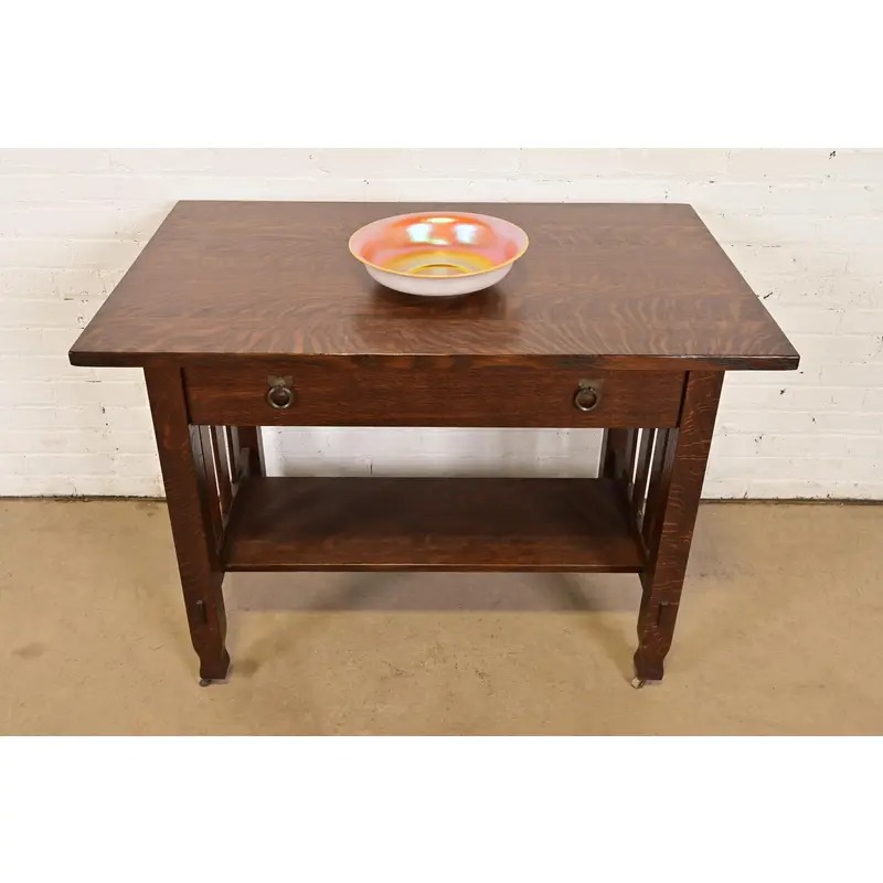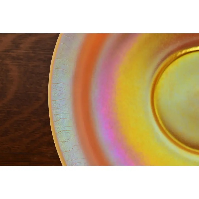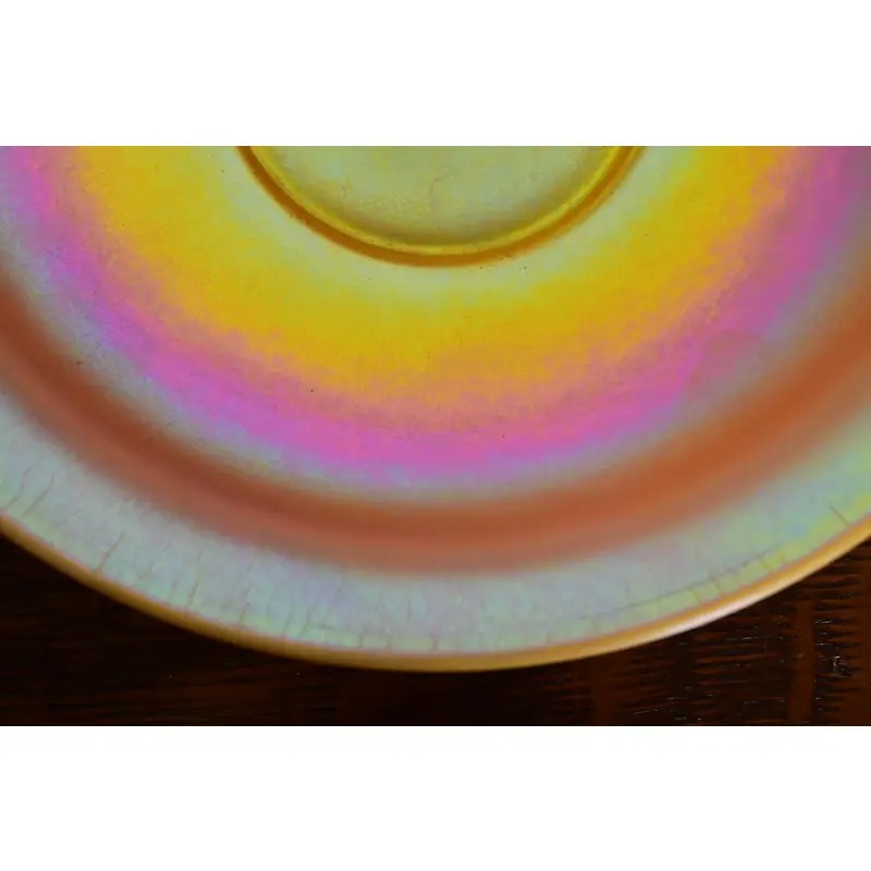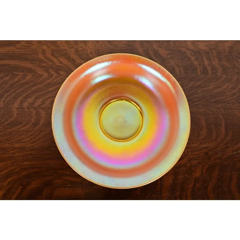 A gorgeous Arts & Crafts or Art Nouveau period aurene iridescent art glass fruit bowl or center bowl