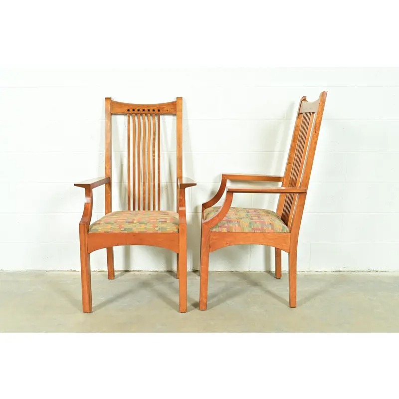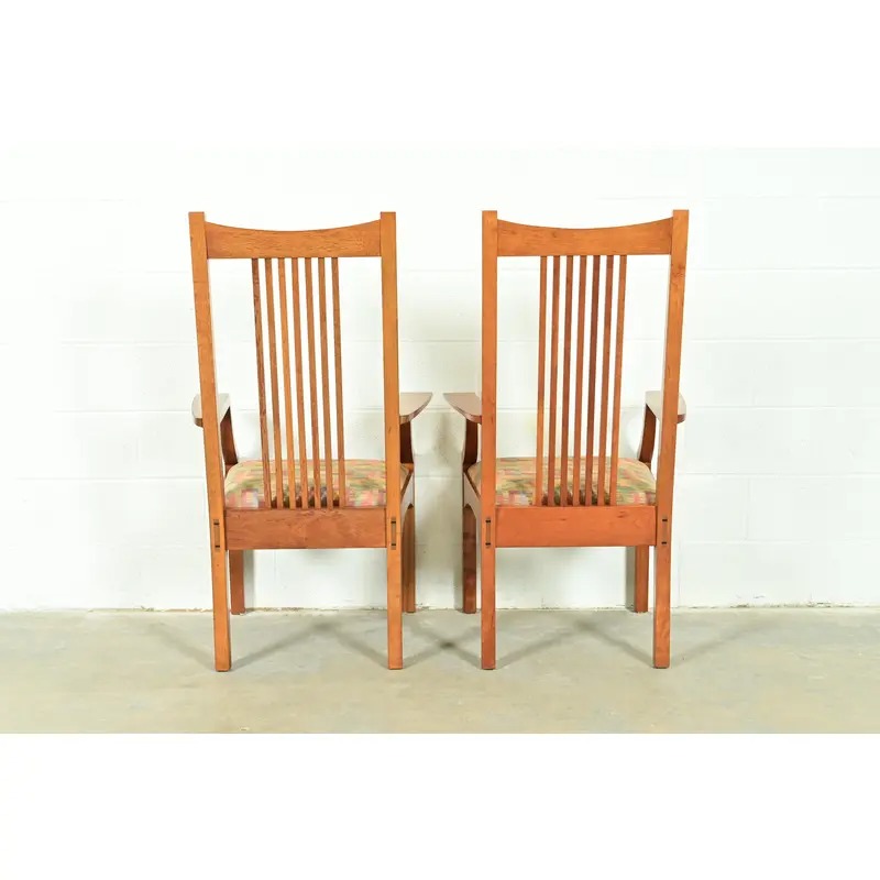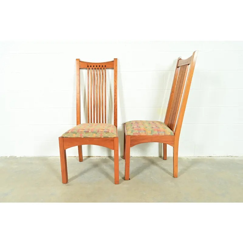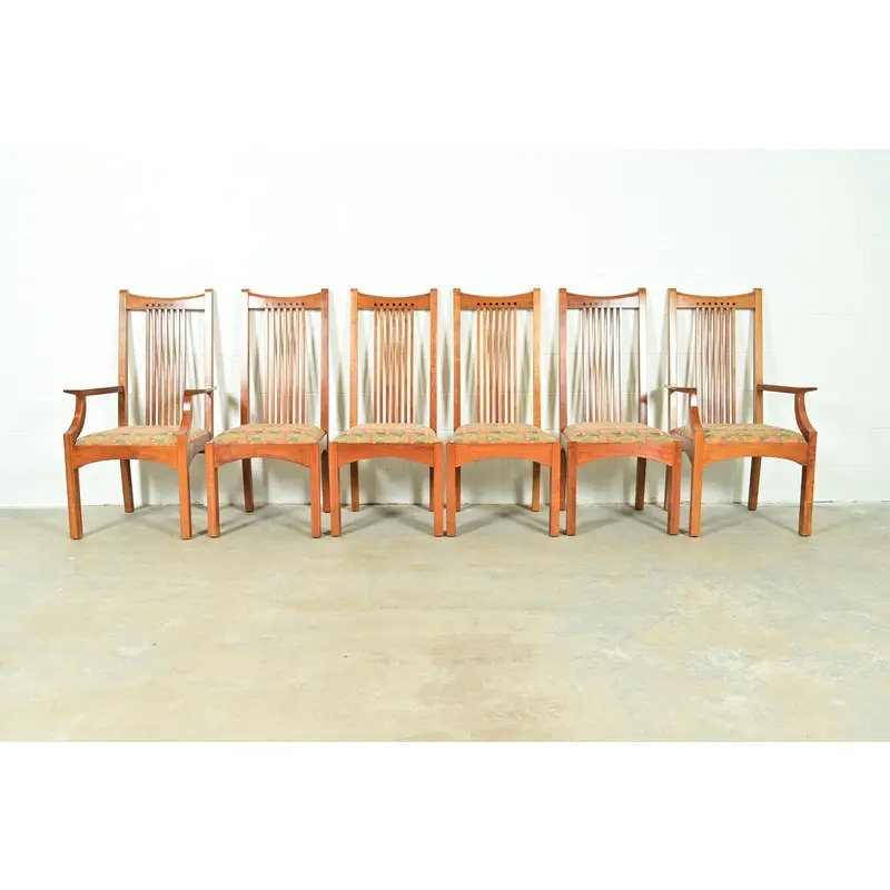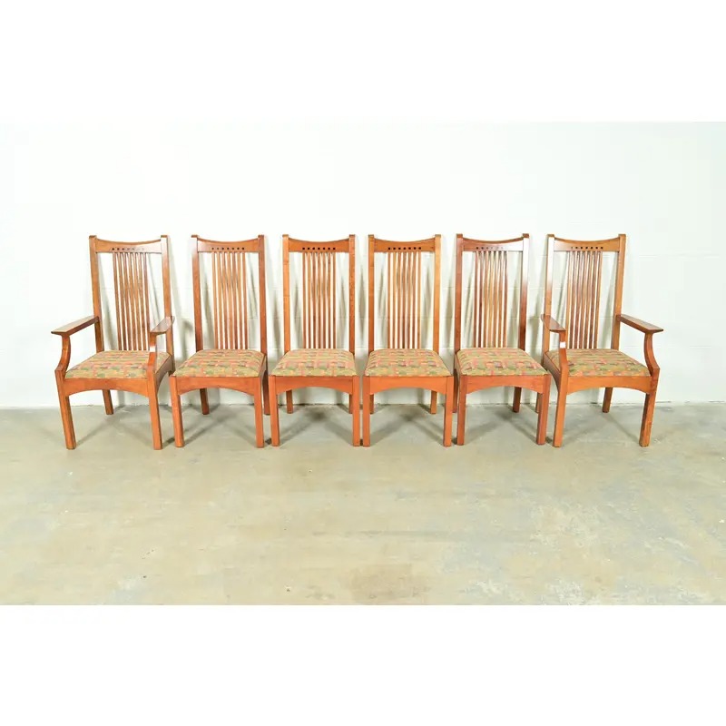 Stickley Arts & Crafts Cherry Wood High Back Spindle Dining Chairs, Set of Six