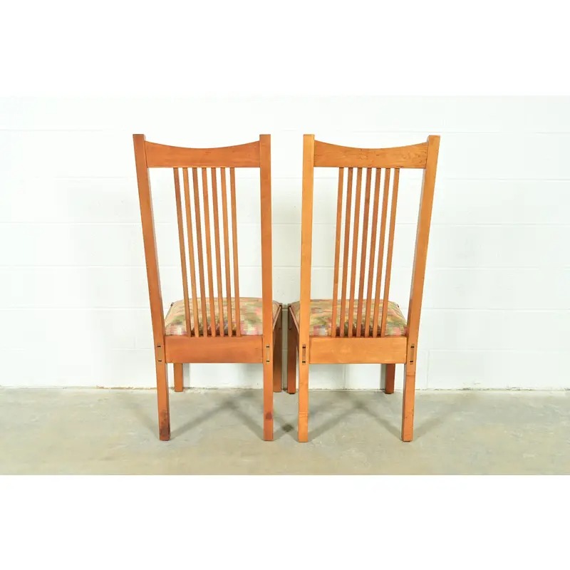 An exceptional pair of Mission or Arts & Crafts style high back spindle side chairs or dining chairs