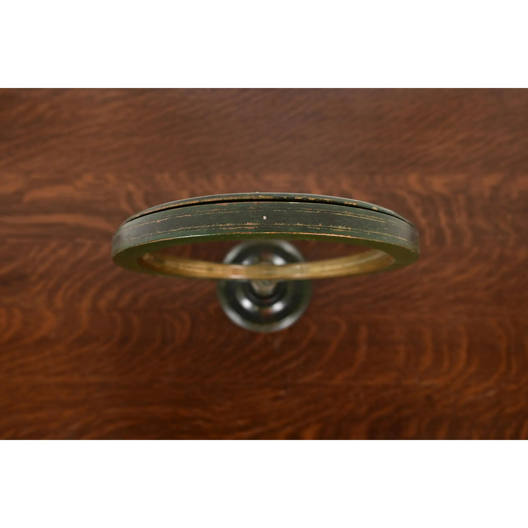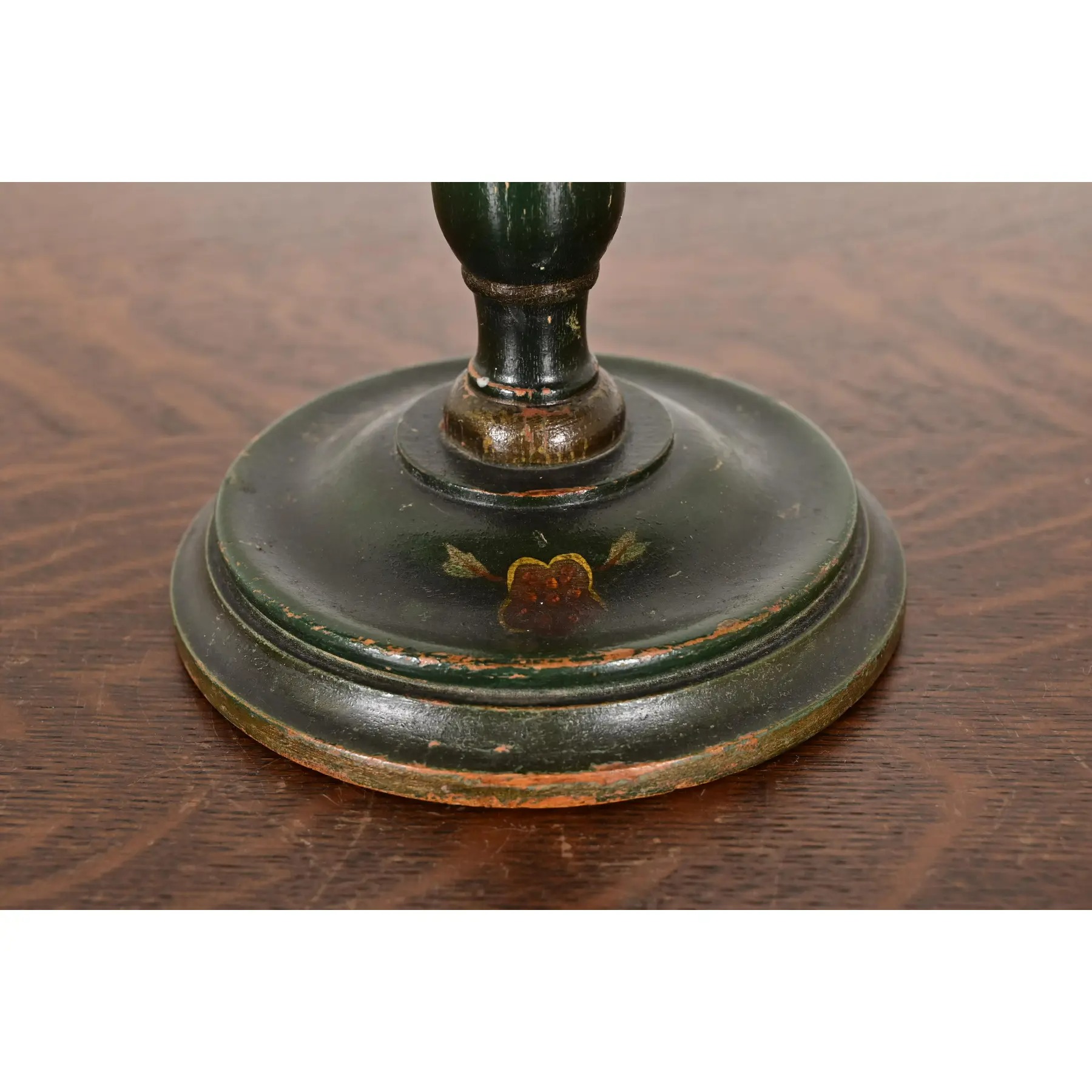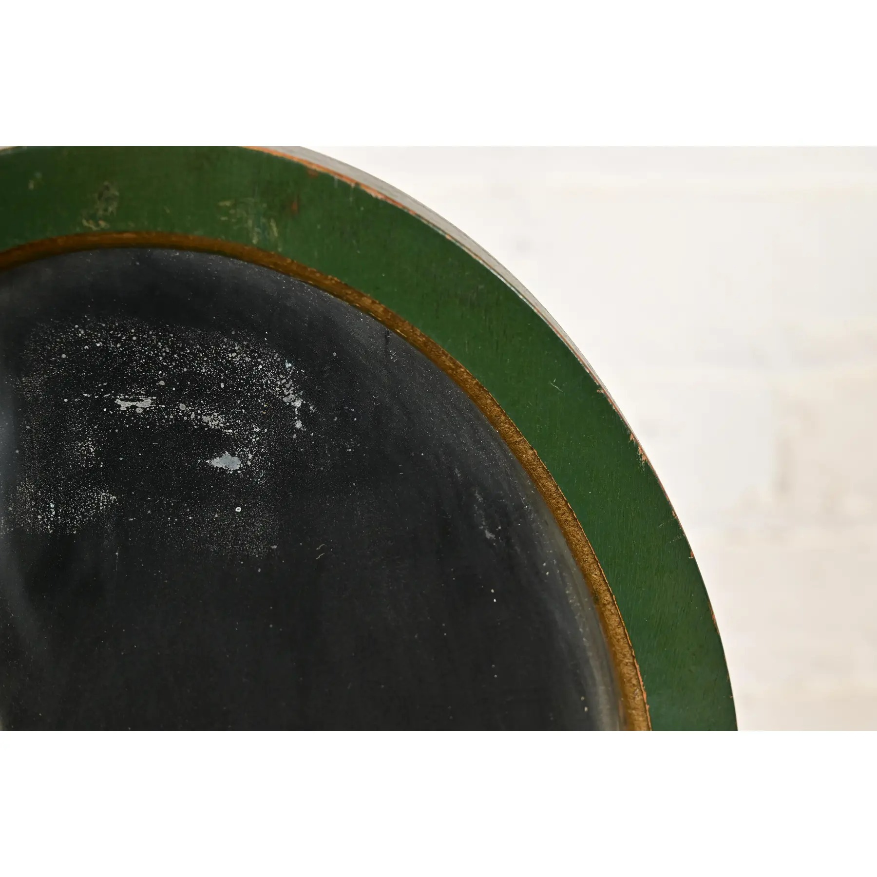 Solid maple frame, in original green lacquered and gold gilt finish, with hand painted floral detail.