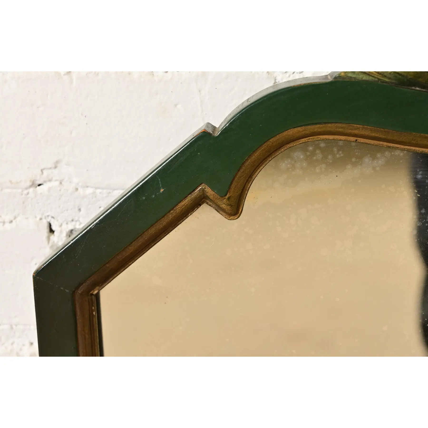 Solid maple frame, in original green lacquered and gold gilt finish.
