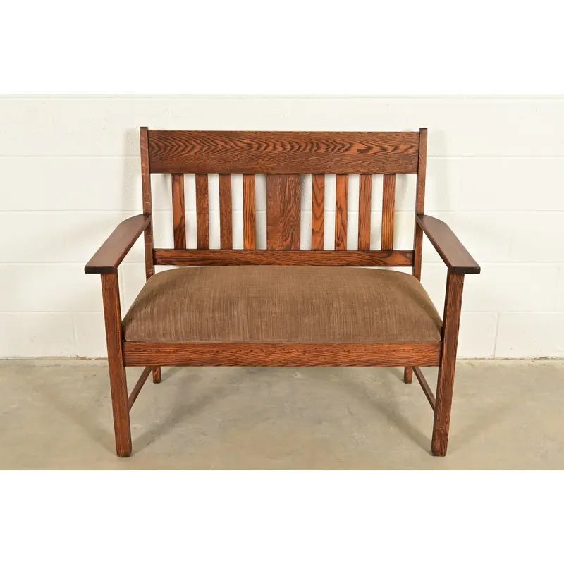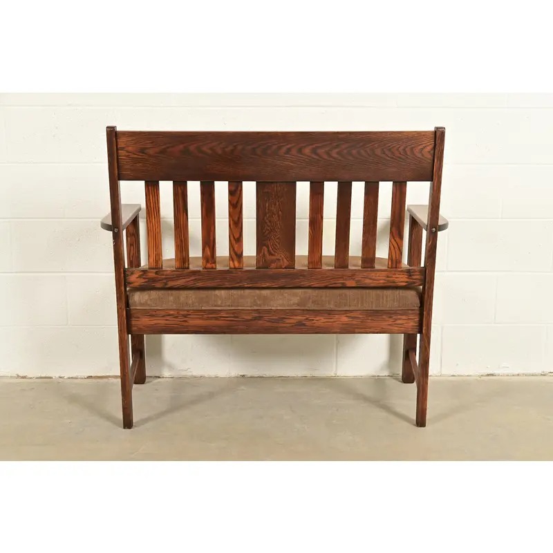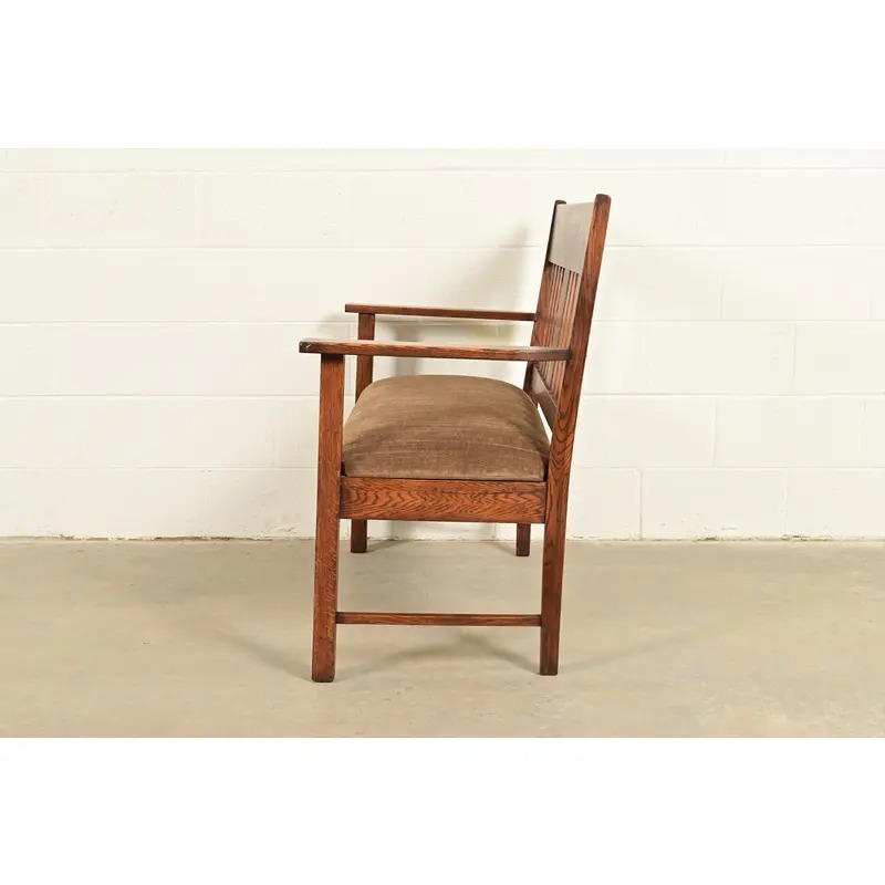 An exceptional antique Mission or Arts & Crafts period bench, settle sofa, settee, or love seat