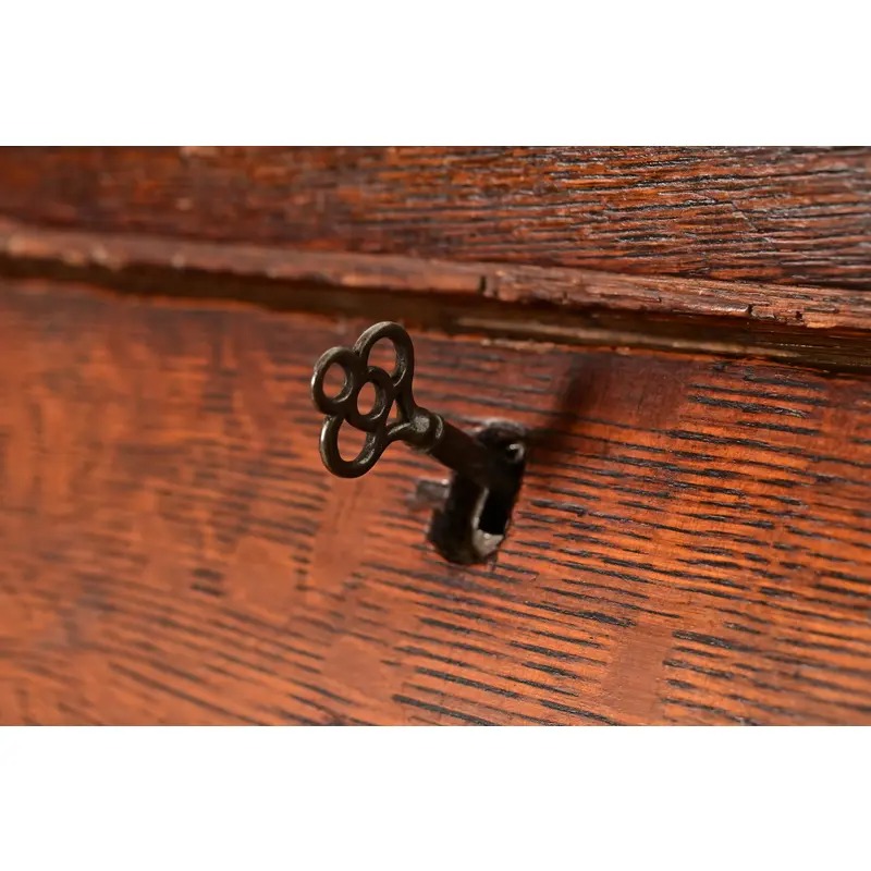 Beautiful carved quarter sawn oak, with mullioned glass front doors.