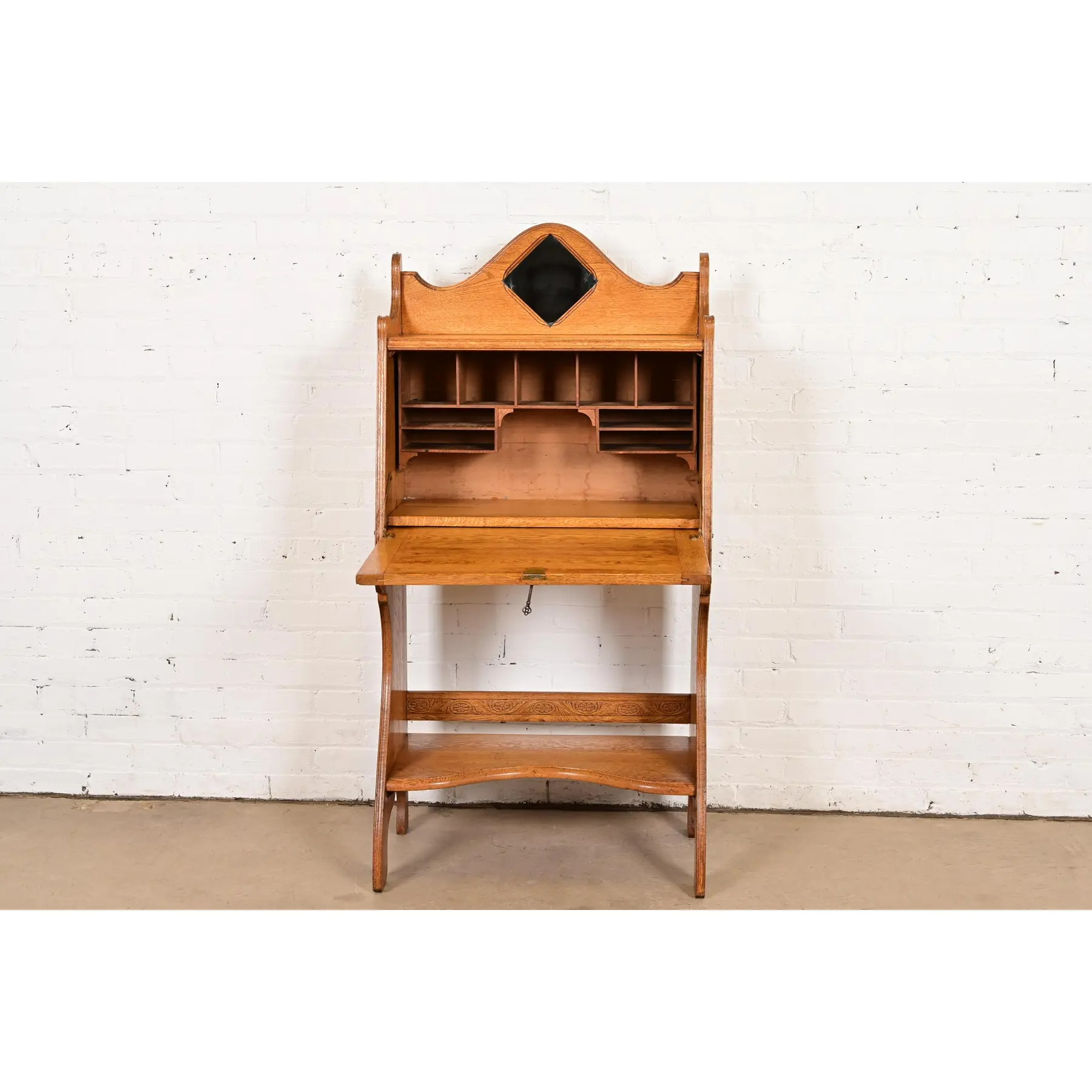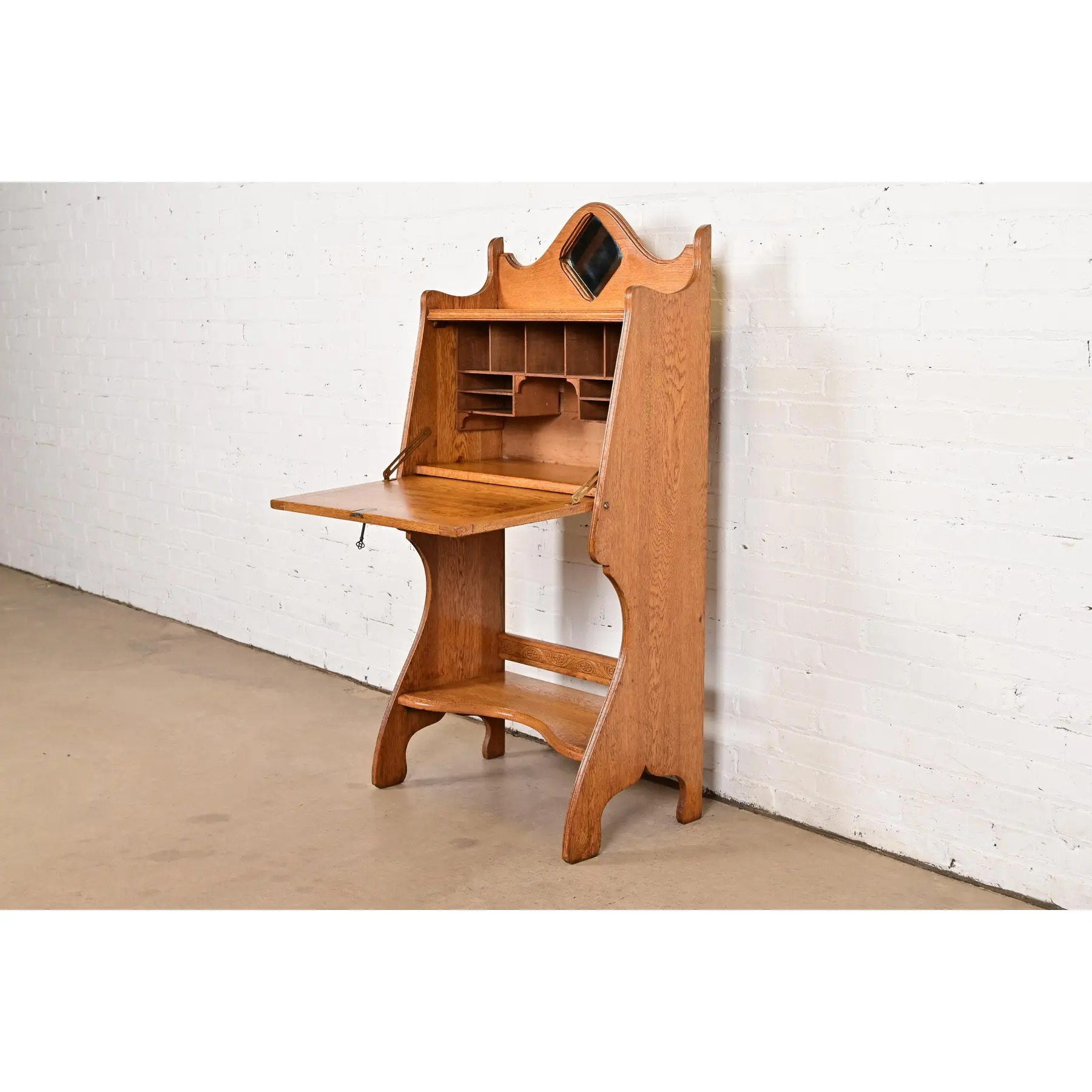 An exceptional Mission, Arts & Crafts, or Late Victorian drop front secretary desk