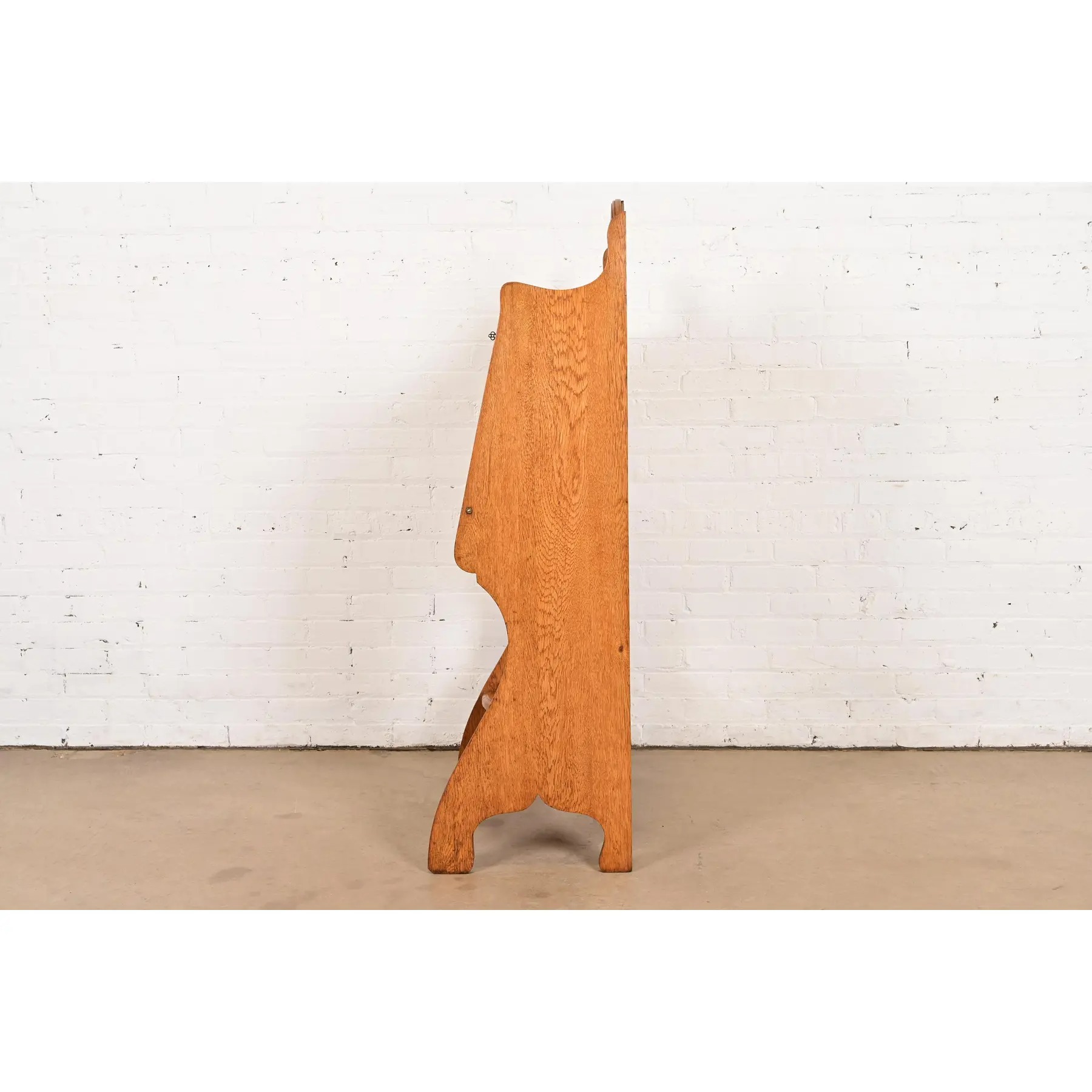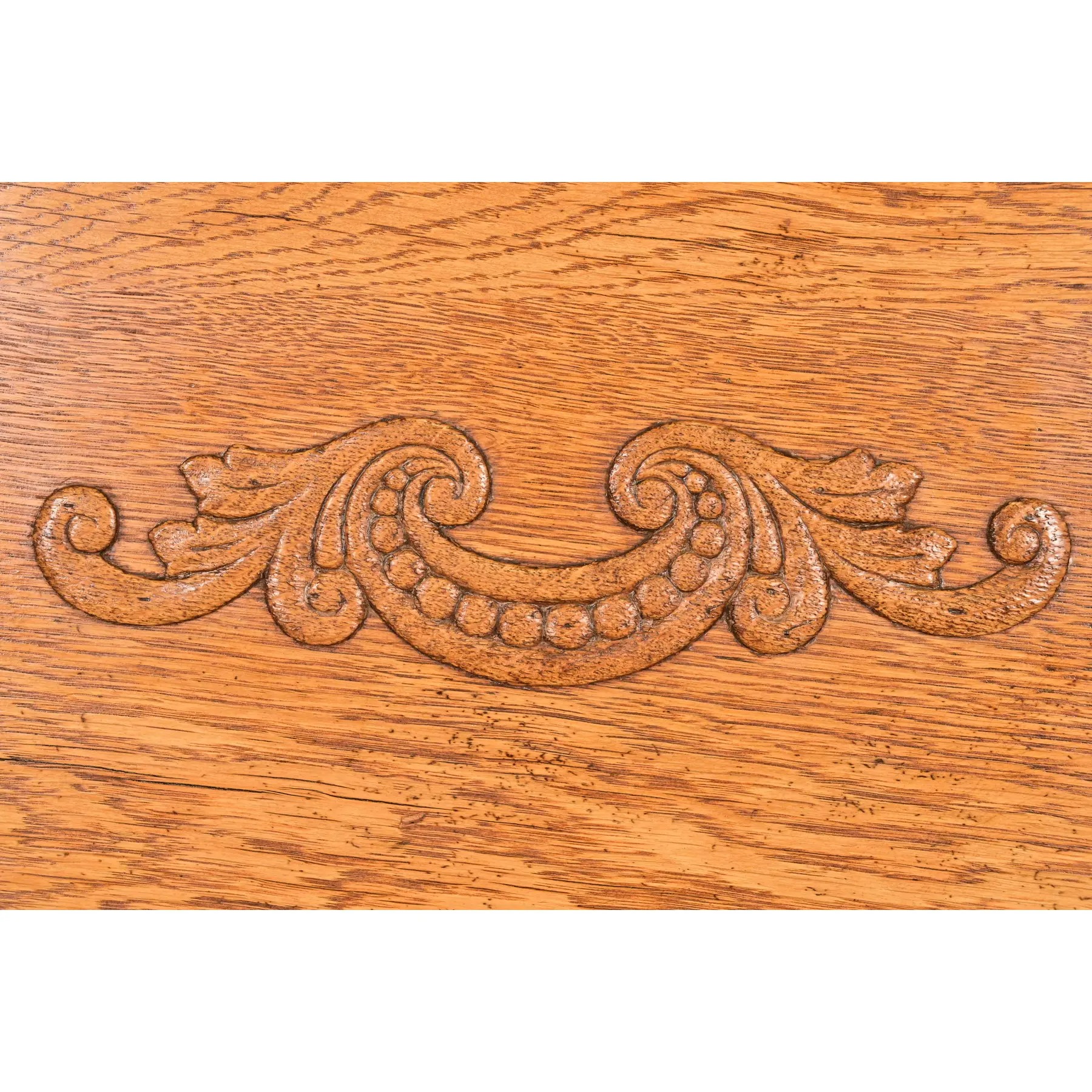 Carved oak, with inset mirror on backsplash, and original brass hardware.