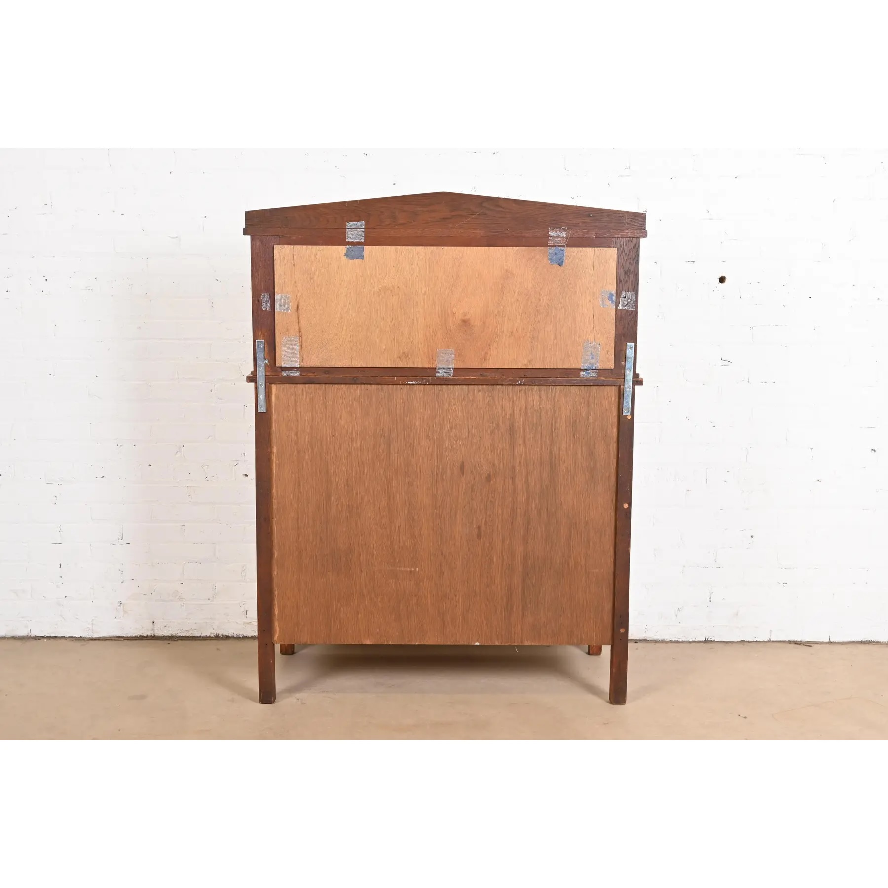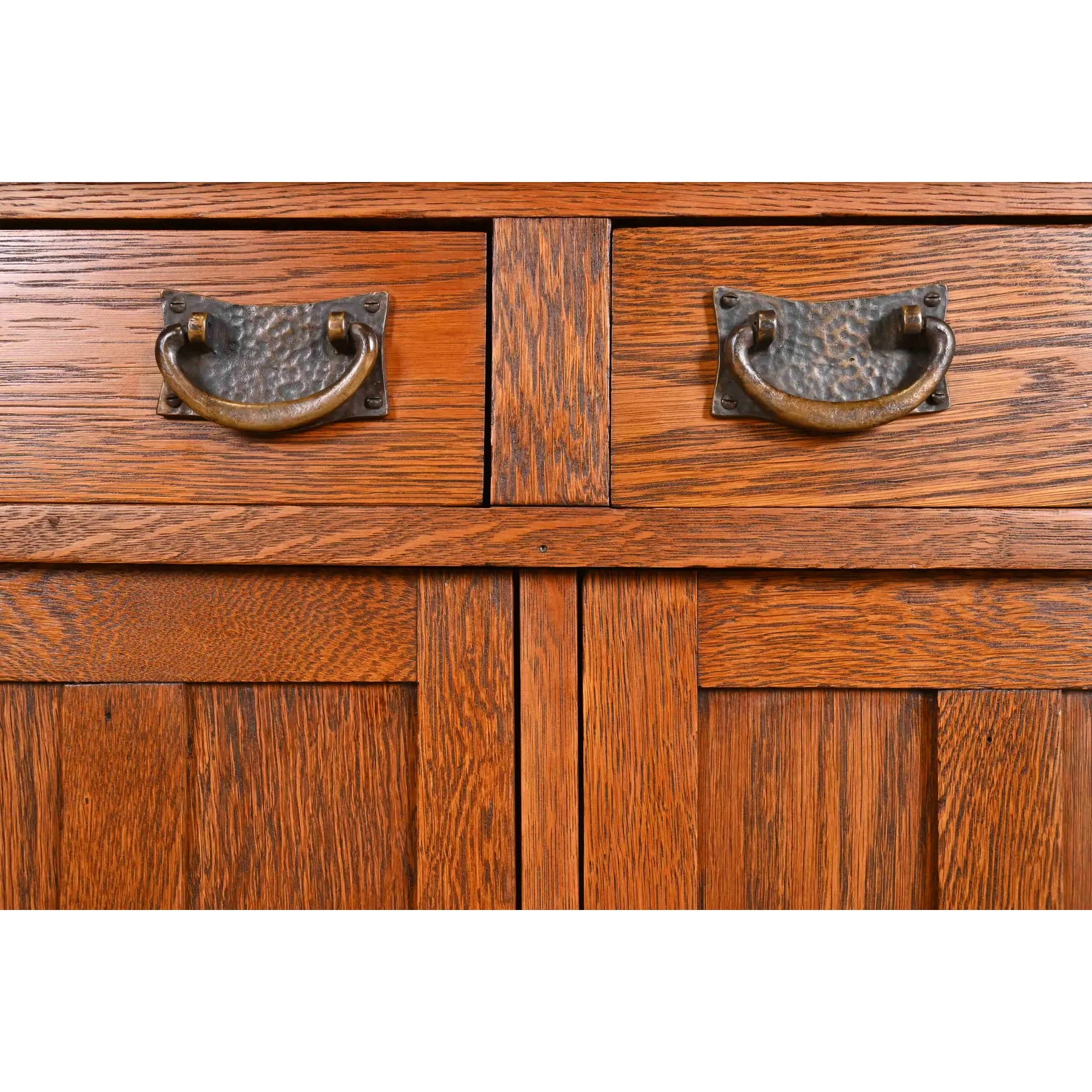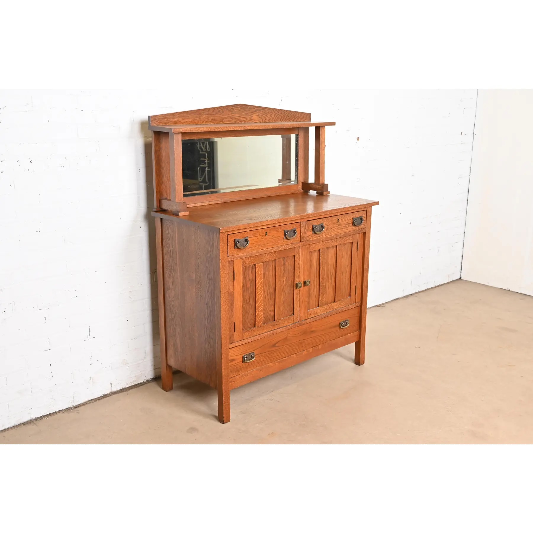 Gorgeous quarter sawn oak, with mirrored backsplash, and hammered copper hardware.