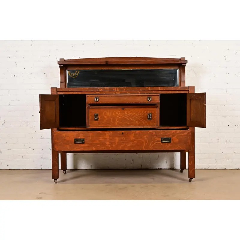 A gorgeous antique Mission or Arts & Crafts period sideboard, buffet server, or bar cabinet