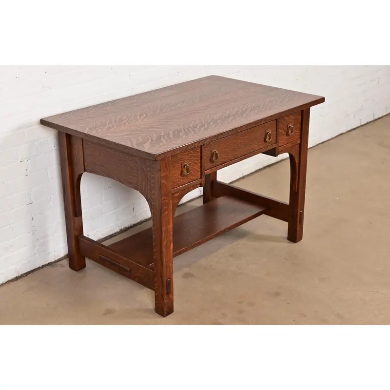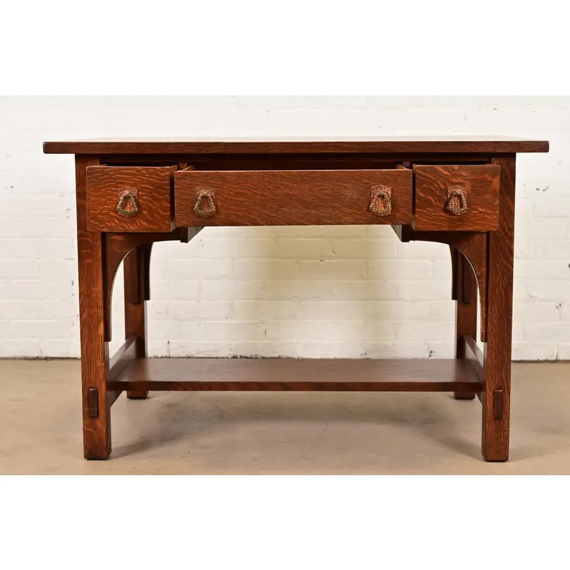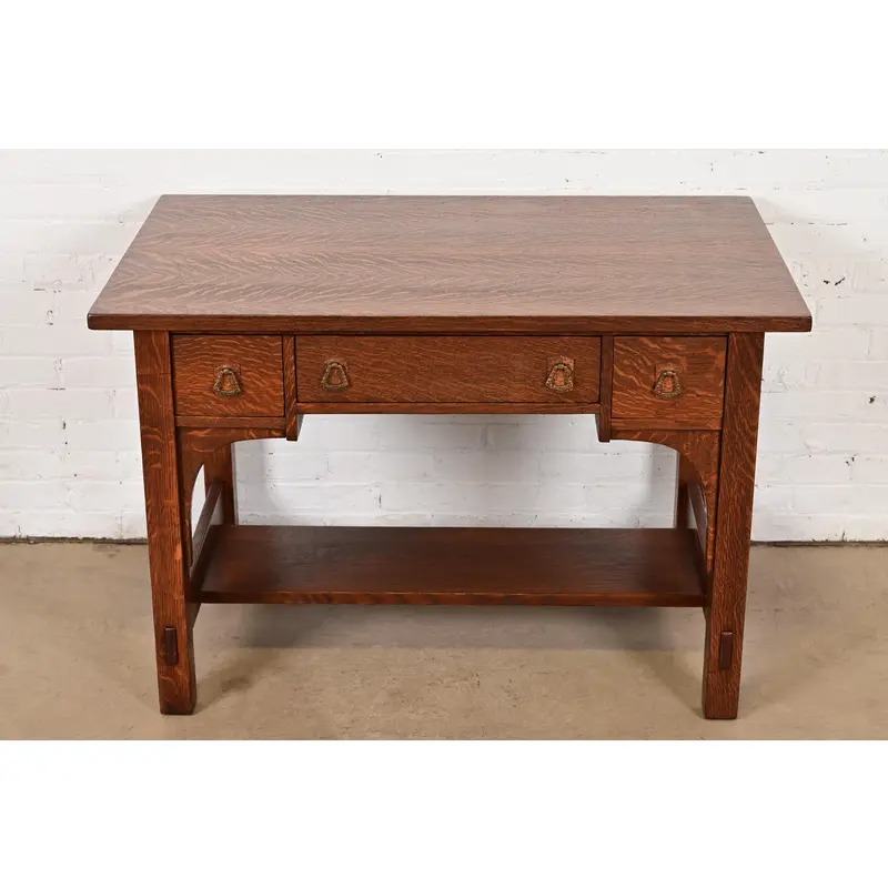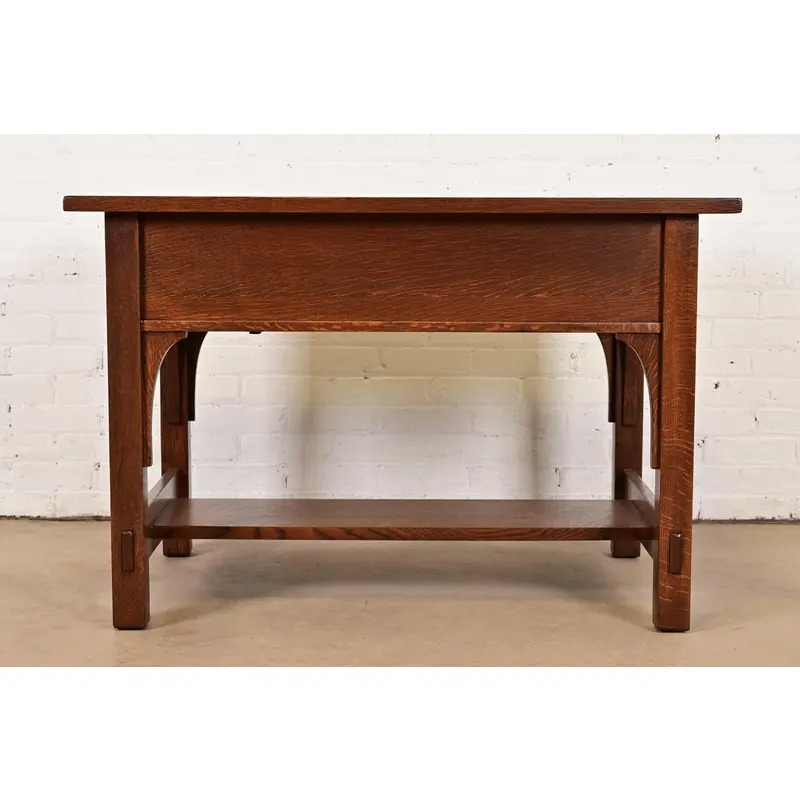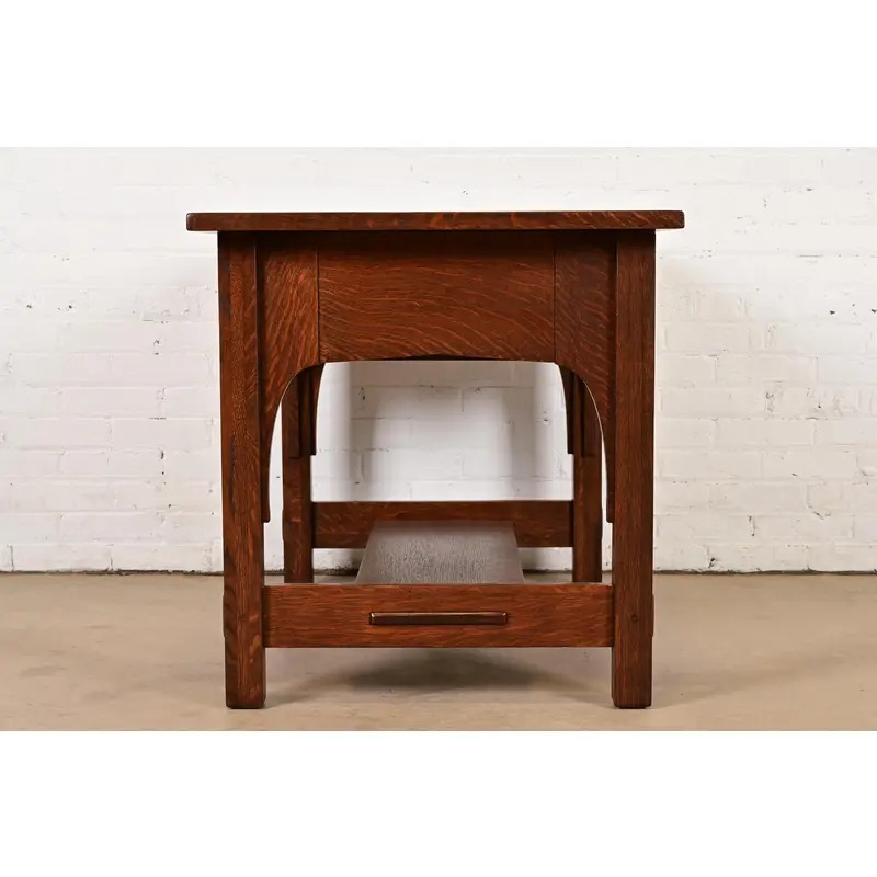 Stickley Brothers Style Antique Mission Oak Arts & Crafts Writing Desk or Library Table, Newly Refinished