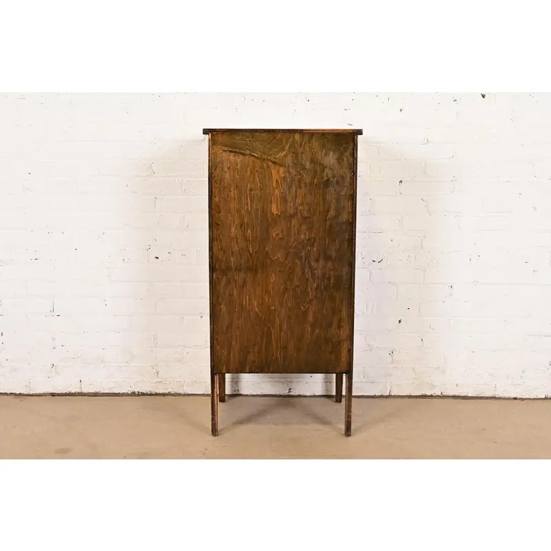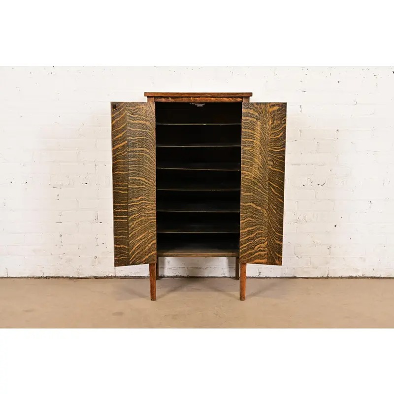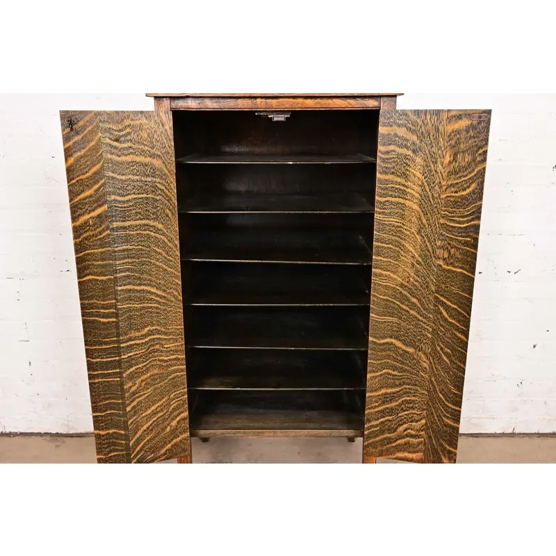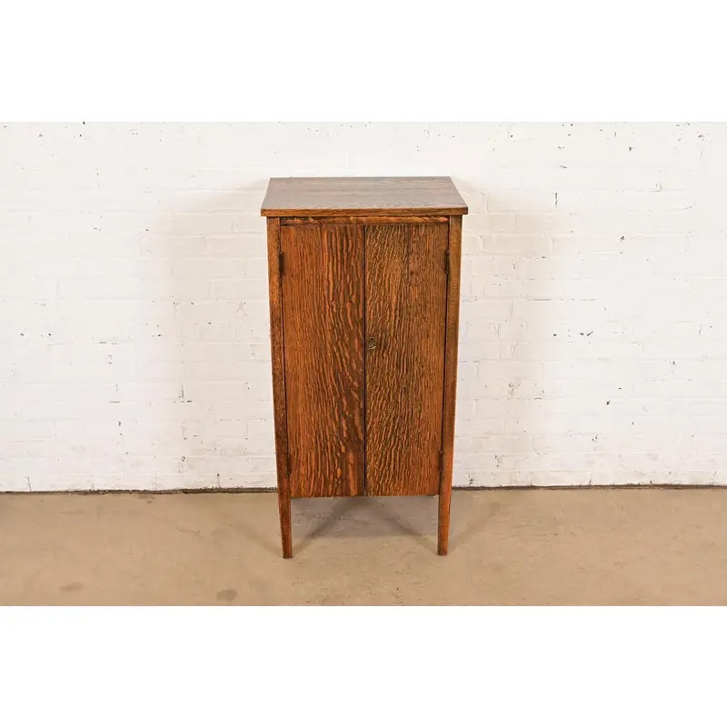 A beautiful antique Mission or Arts & Crafts period tiger oak music cabinet or bar cabinet