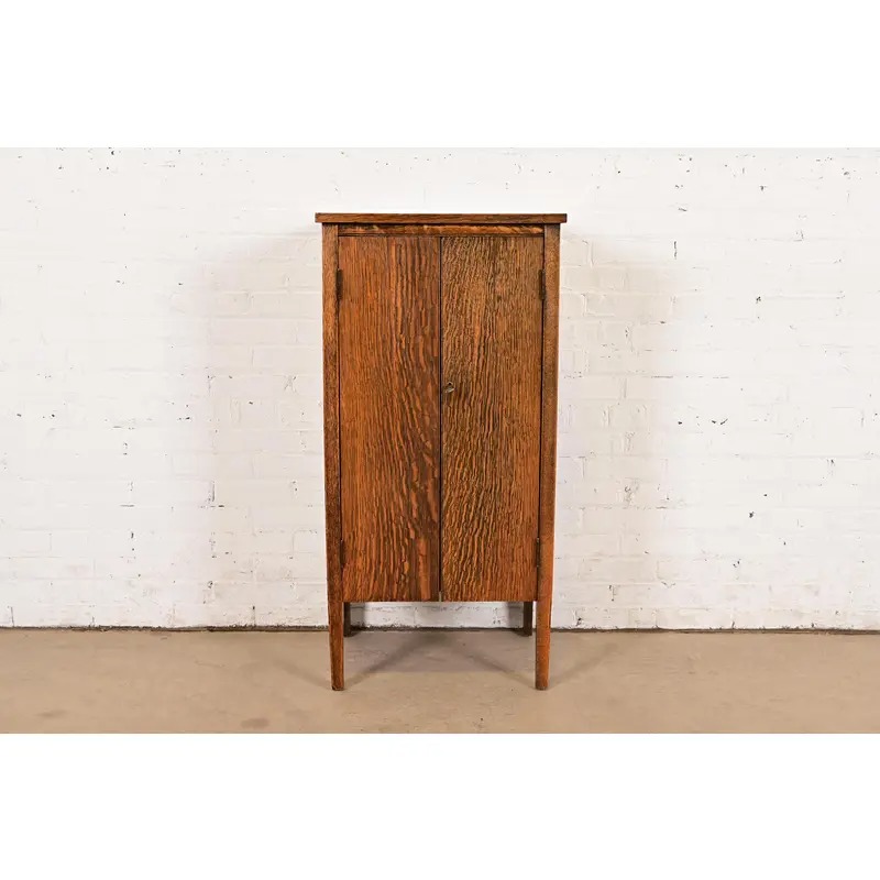 Stickley Brothers Style Antique Mission Tiger Oak Arts & Crafts Music Cabinet, Circa 1900