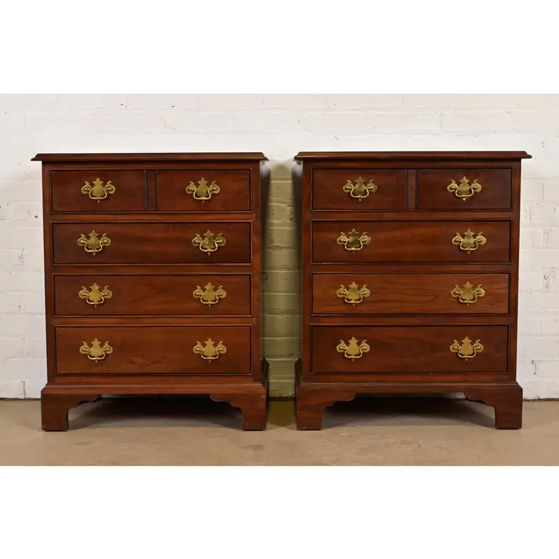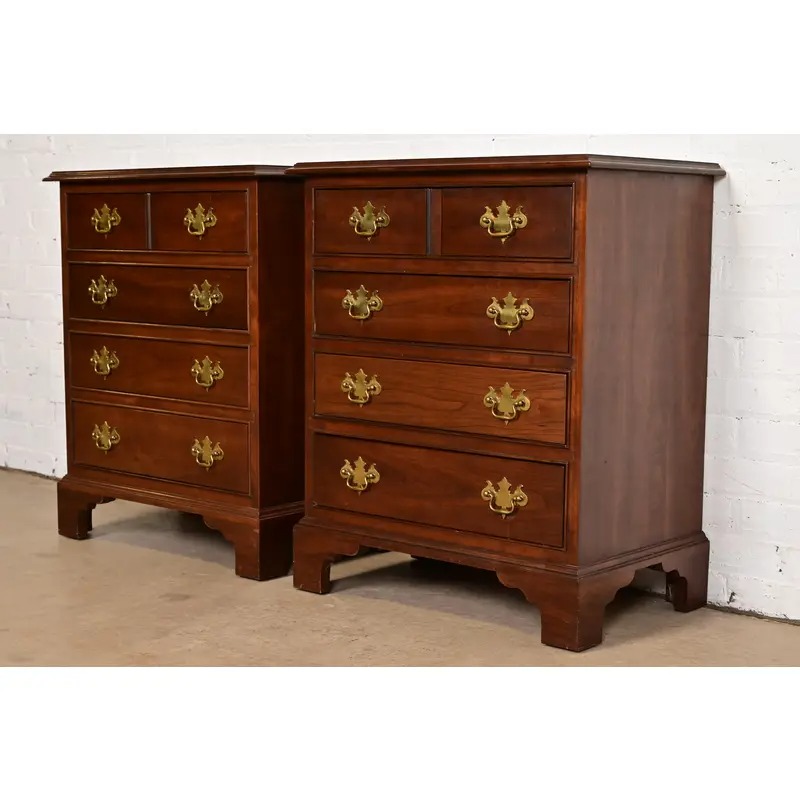 Stickley Georgian Solid Cherry Wood Bedside Chests, Pair