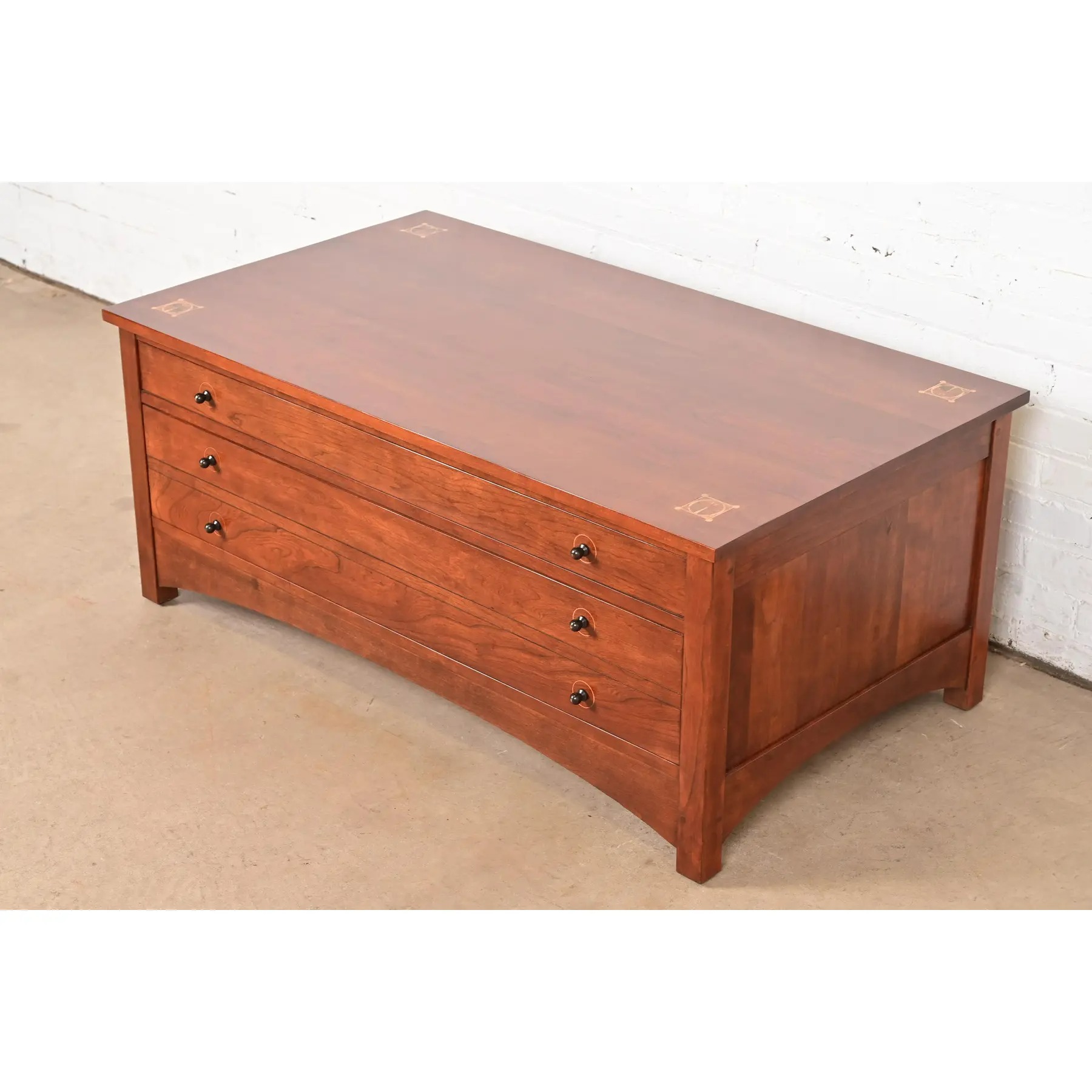 An exceptional Mission or Arts & Crafts style coffee or cocktail table with two drawers