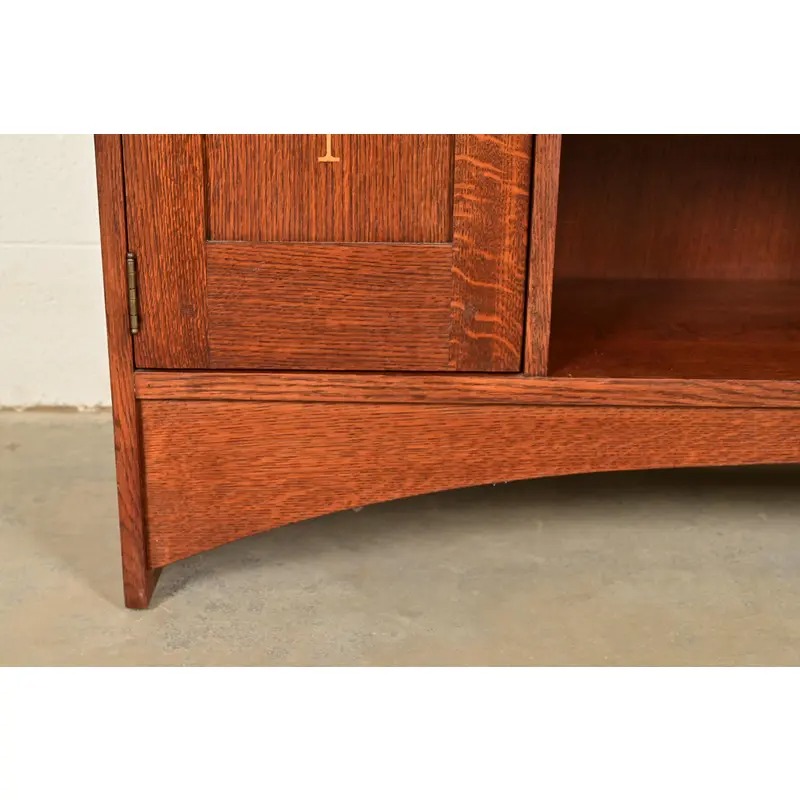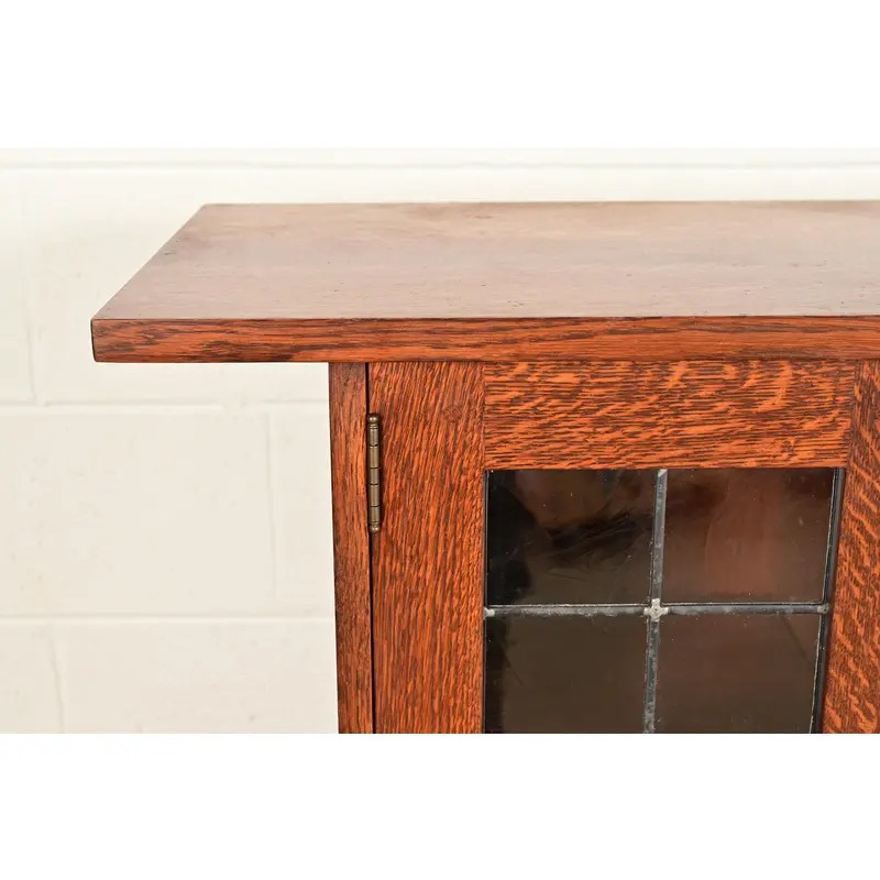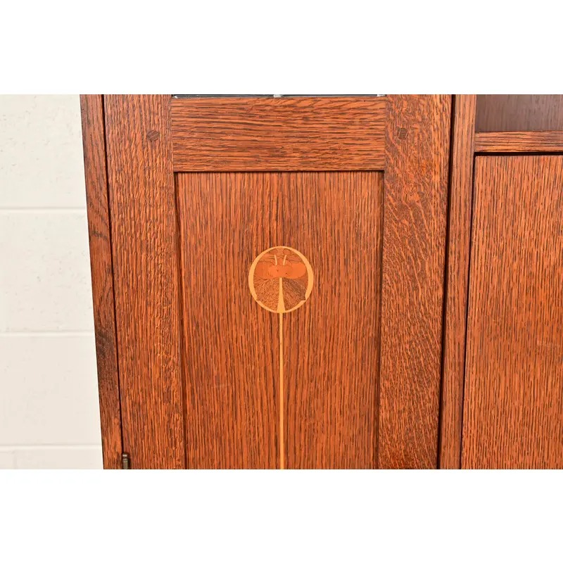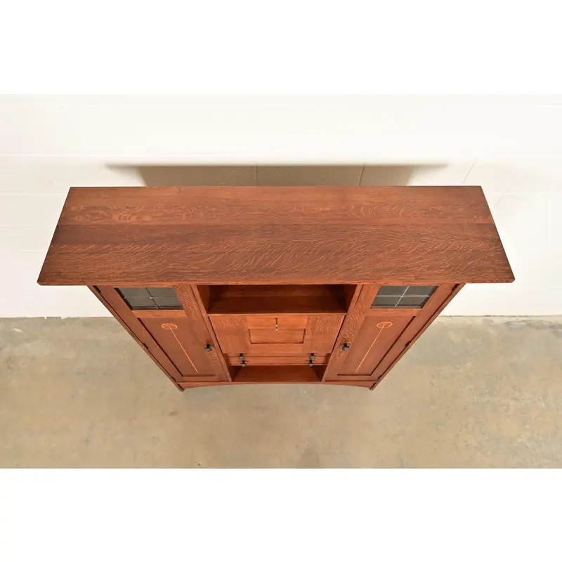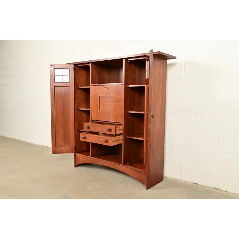 Stickley Harvey Ellis Collection Arts & Crafts Inlaid Oak and Leaded Glass Bookcase With Drop Front Secretary Desk