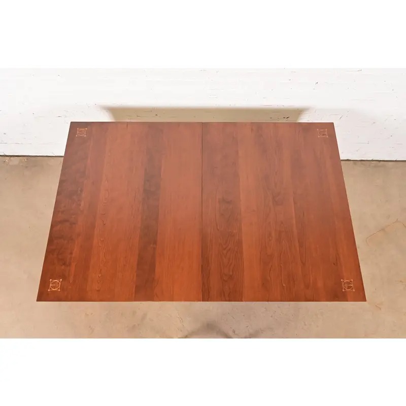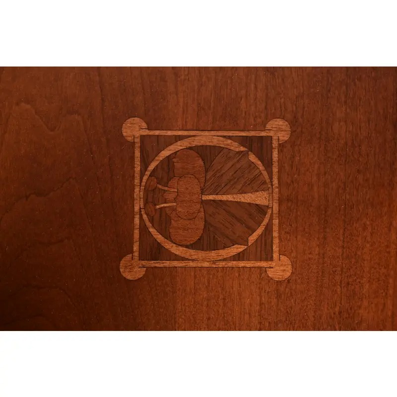 Solid cherry wood, with inlaid marquetry on four top corners.