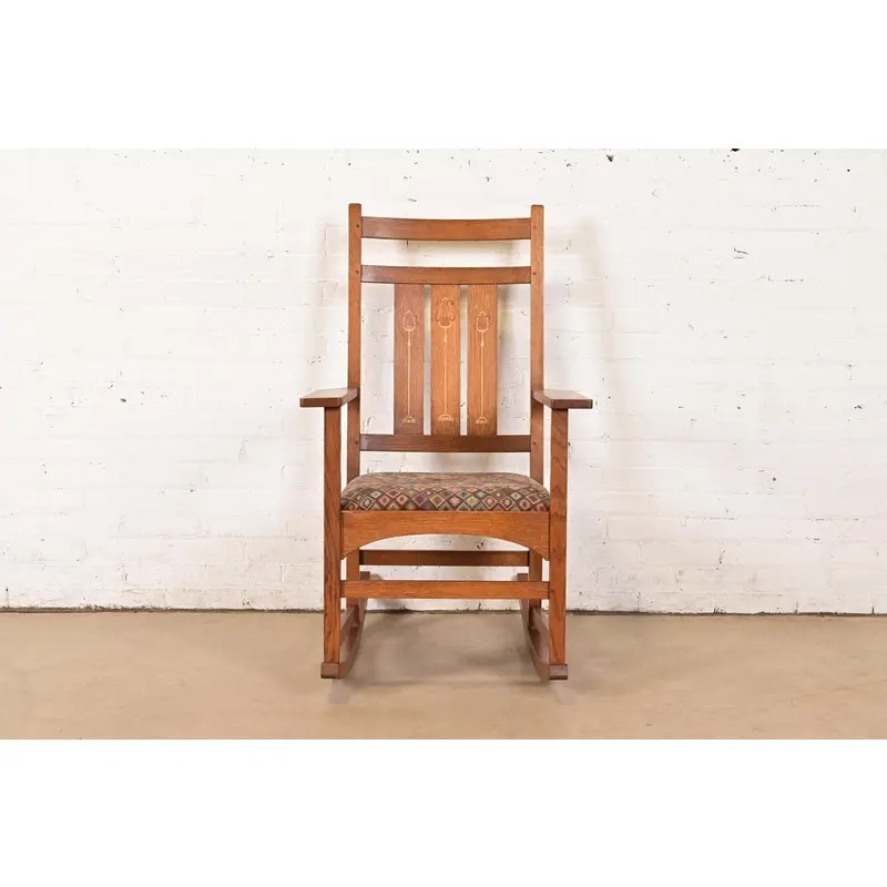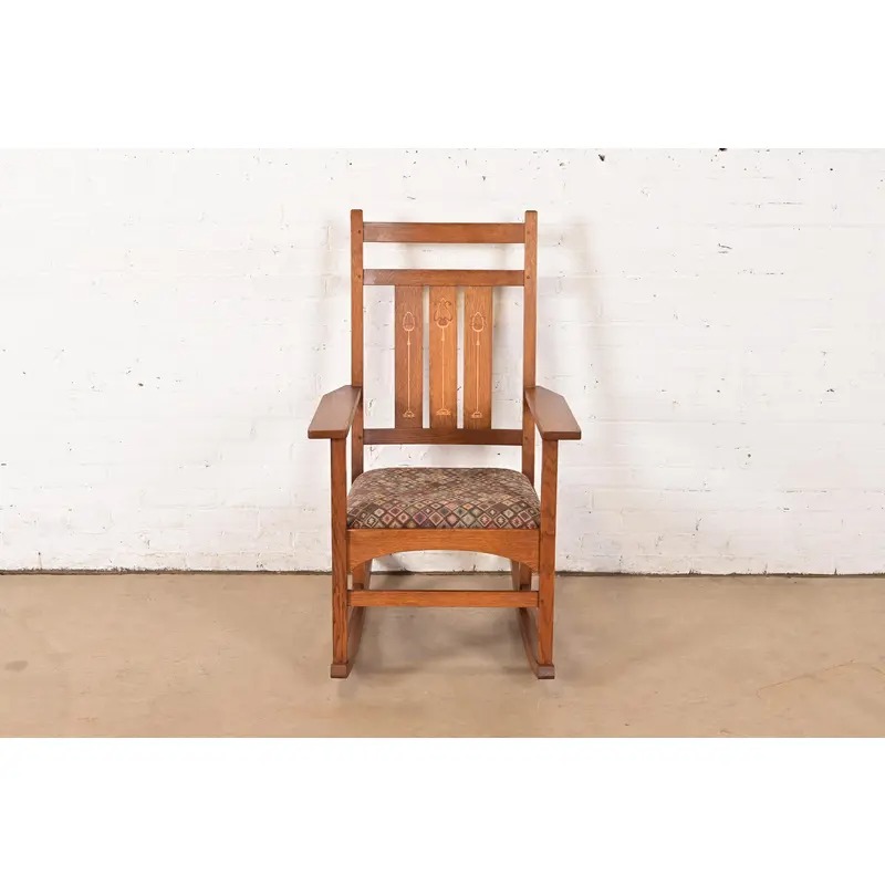 Stickley Harvey Ellis Collection Mission Arts & Crafts Inlaid Oak Rocking Chair