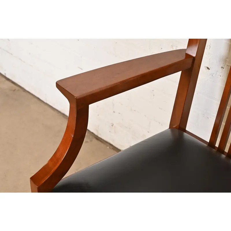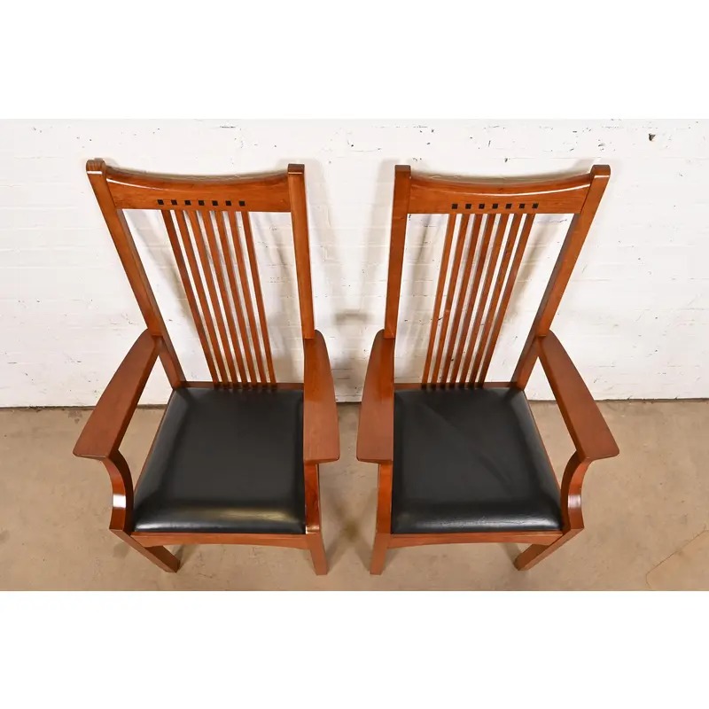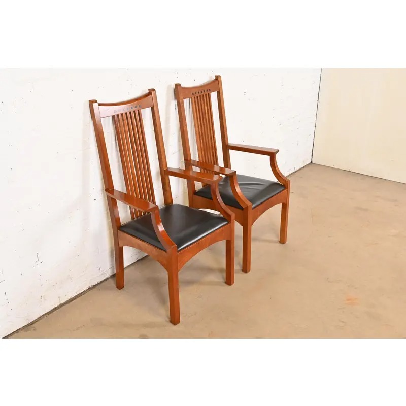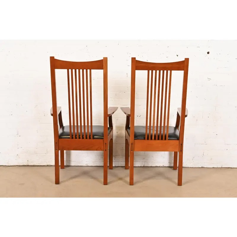 Stickley Mission Arts & Crafts Cherry Wood High Back Spindle Armchairs, Pair