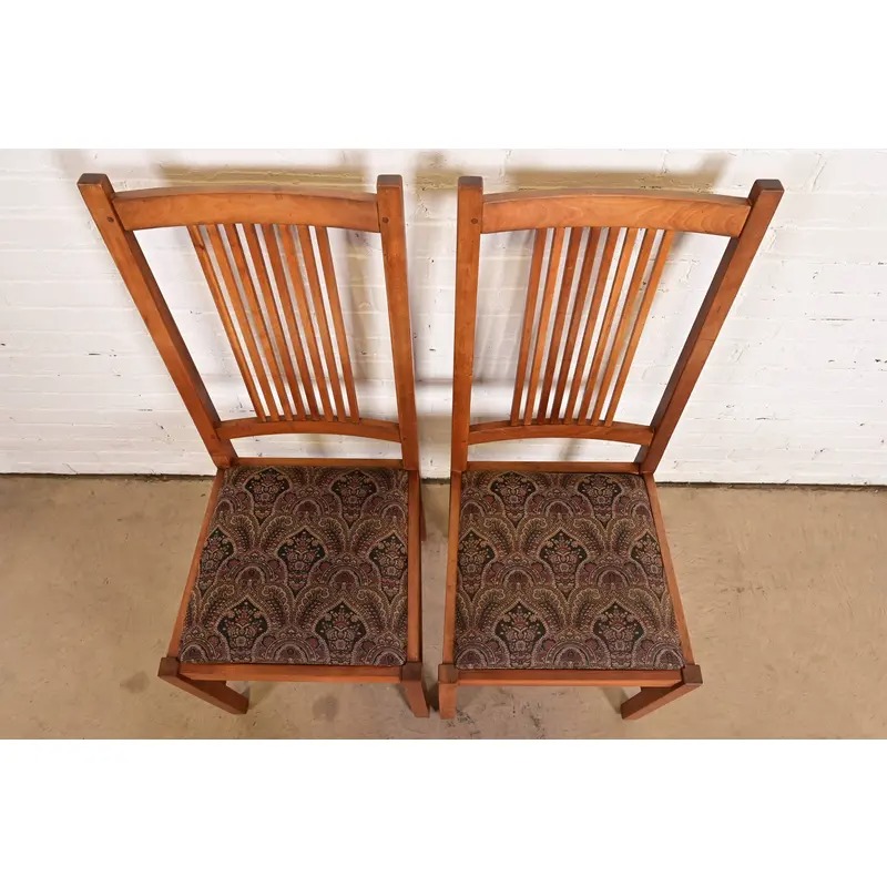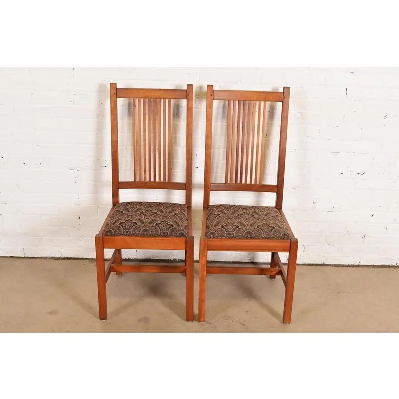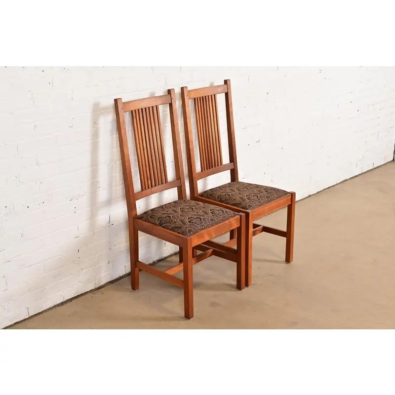 Stickley Mission Arts & Crafts Cherry Wood Spindle Back Side Chairs or Dining Chairs, Pair