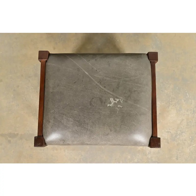 Solid quarter sawn oak frame, with leather upholstered seat and back cushions.
