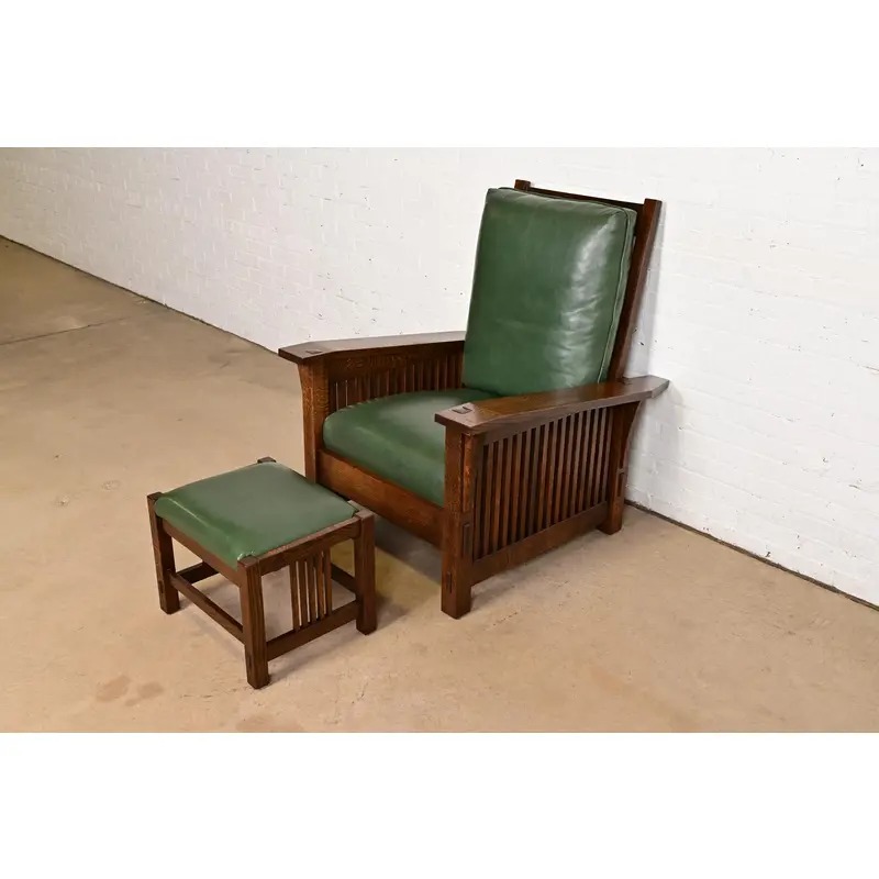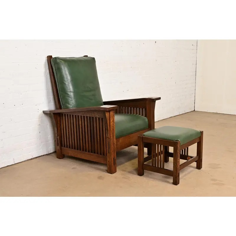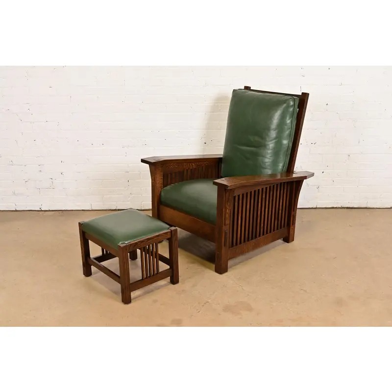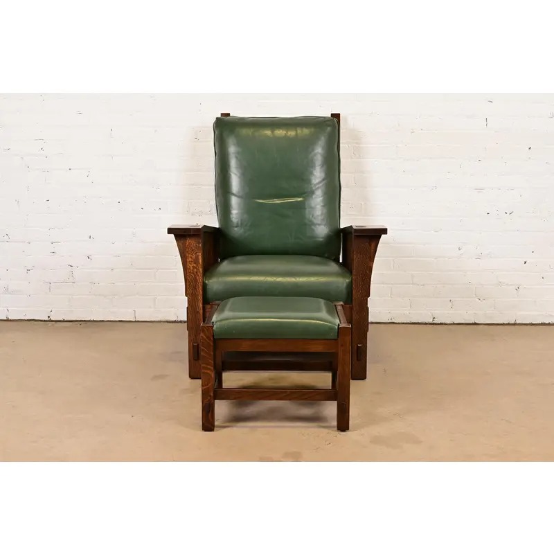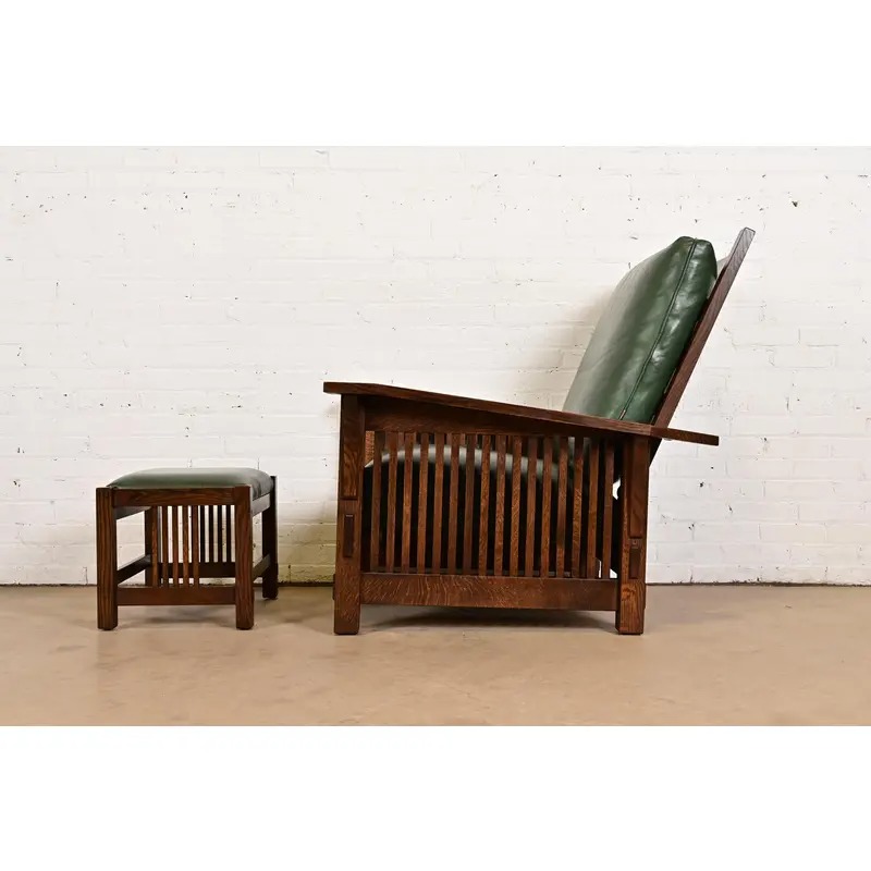 Stickley Mission Oak Arts & Crafts Reclining Morris Lounge Chair With Ottoman