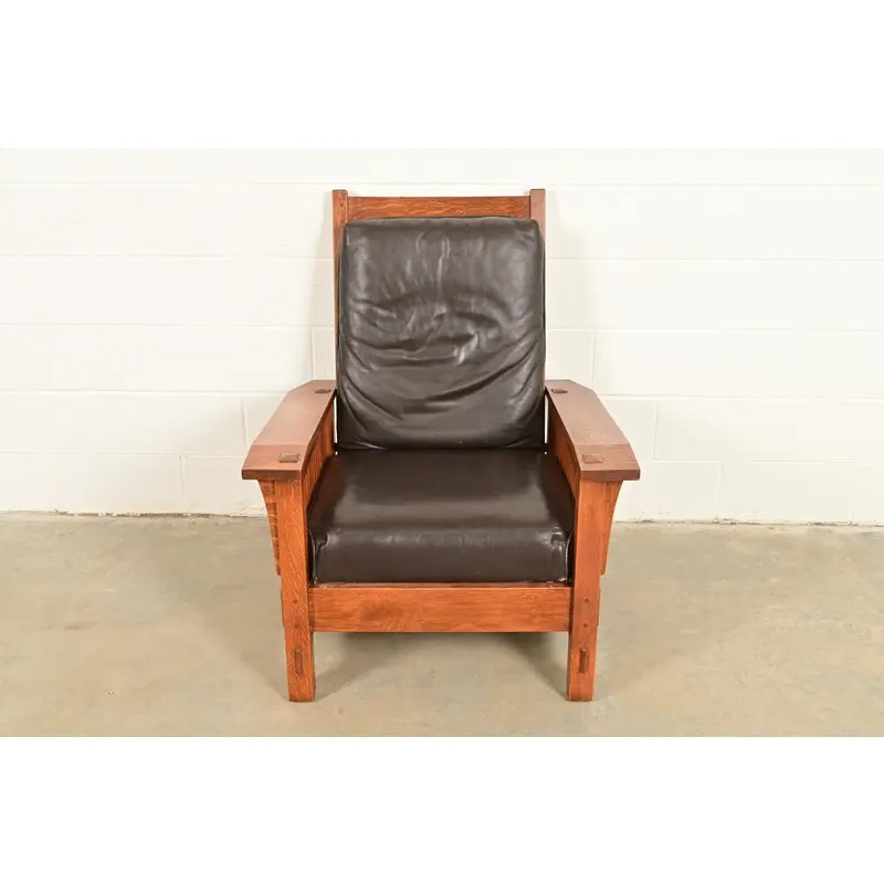 Stickley Mission Oak Arts & Crafts Spindle Reclining Morris Lounge Chair
