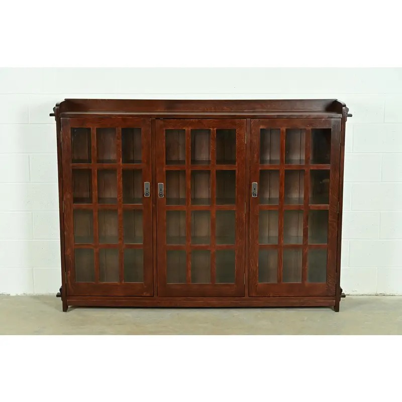 Stickley Mission Oak Arts & Crafts Triple Bookcase
