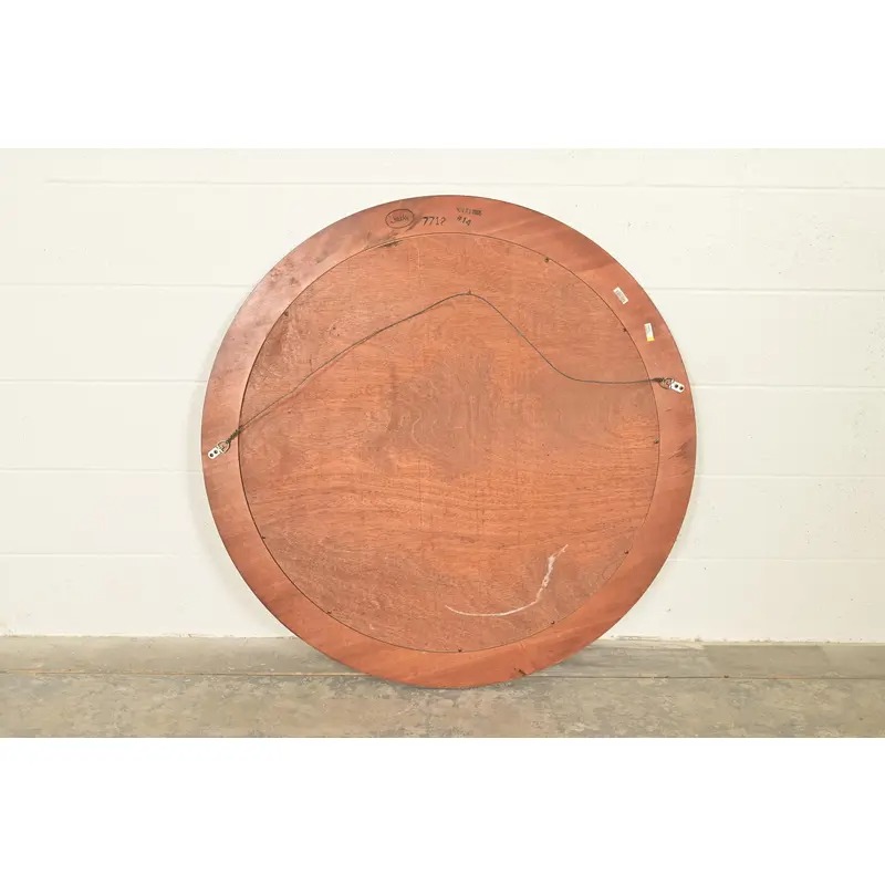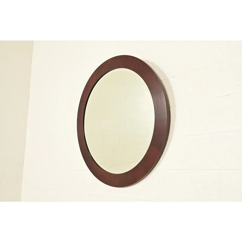 Stickley Modern Art Deco Mahogany Framed Round Beveled Wall Mirror