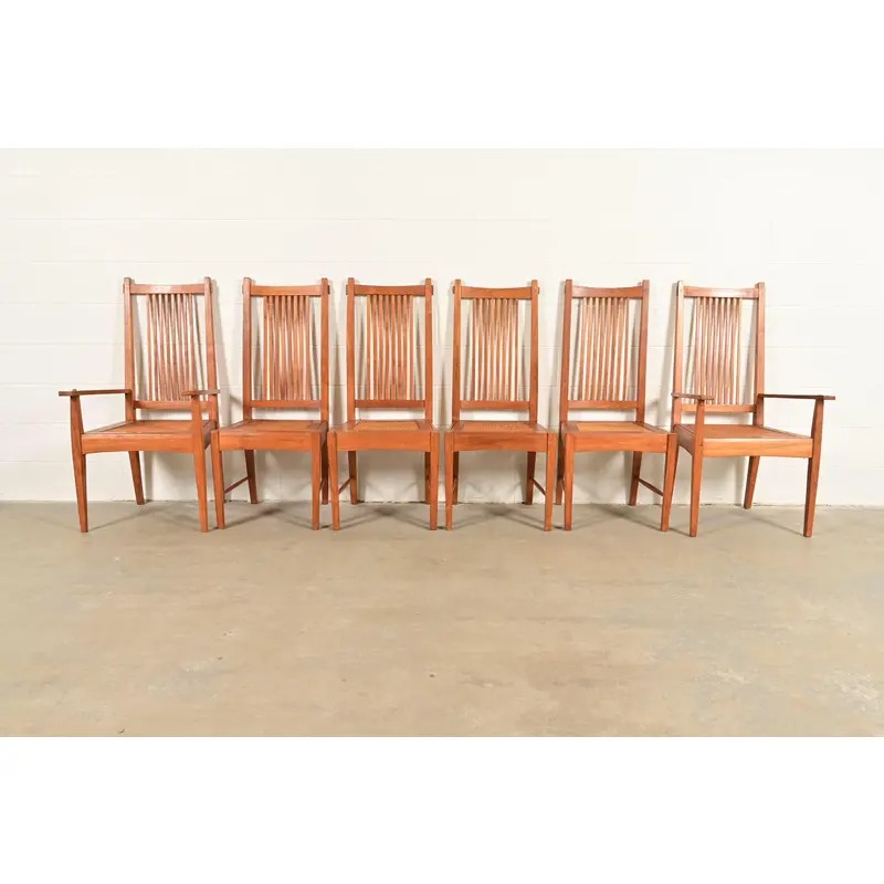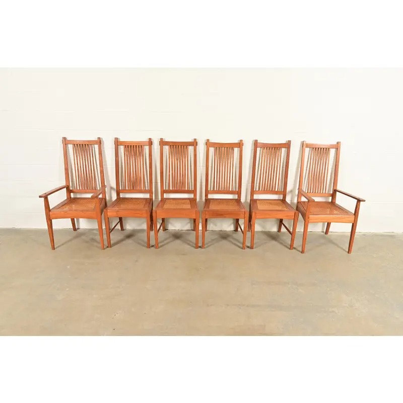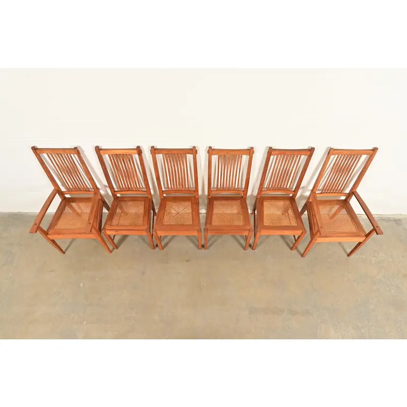 Stickley Style Arts & Crafts Teak and Cane Dining Chairs, Set of Six