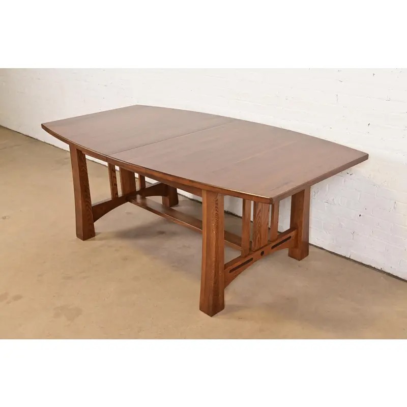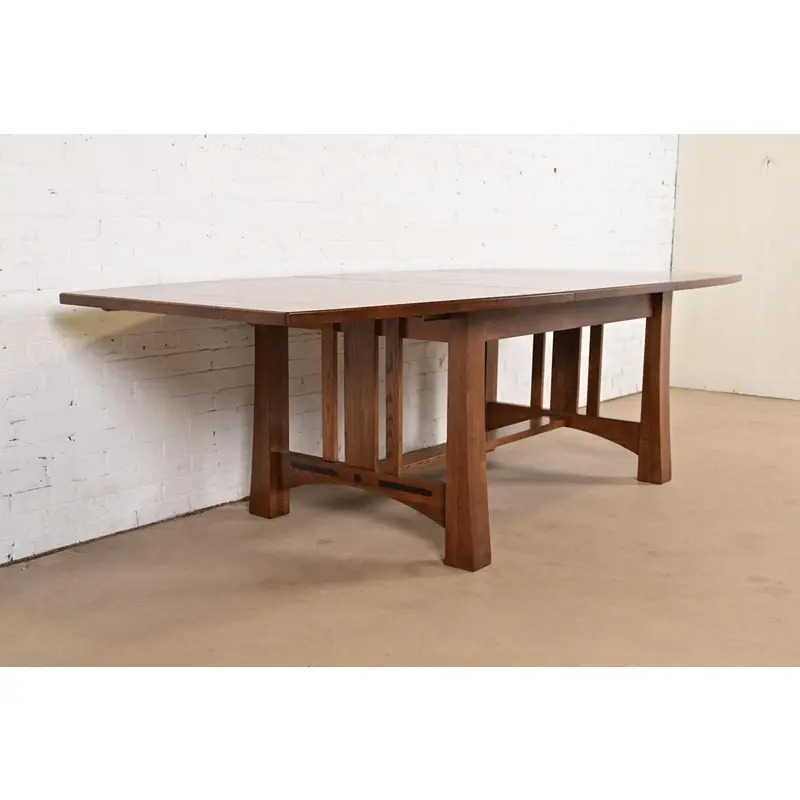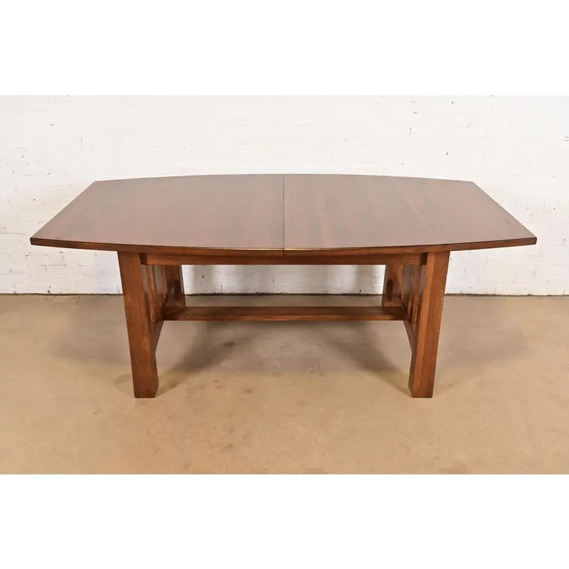 An exceptional Mission or Arts & Crafts style quarter sawn oak extension dining table