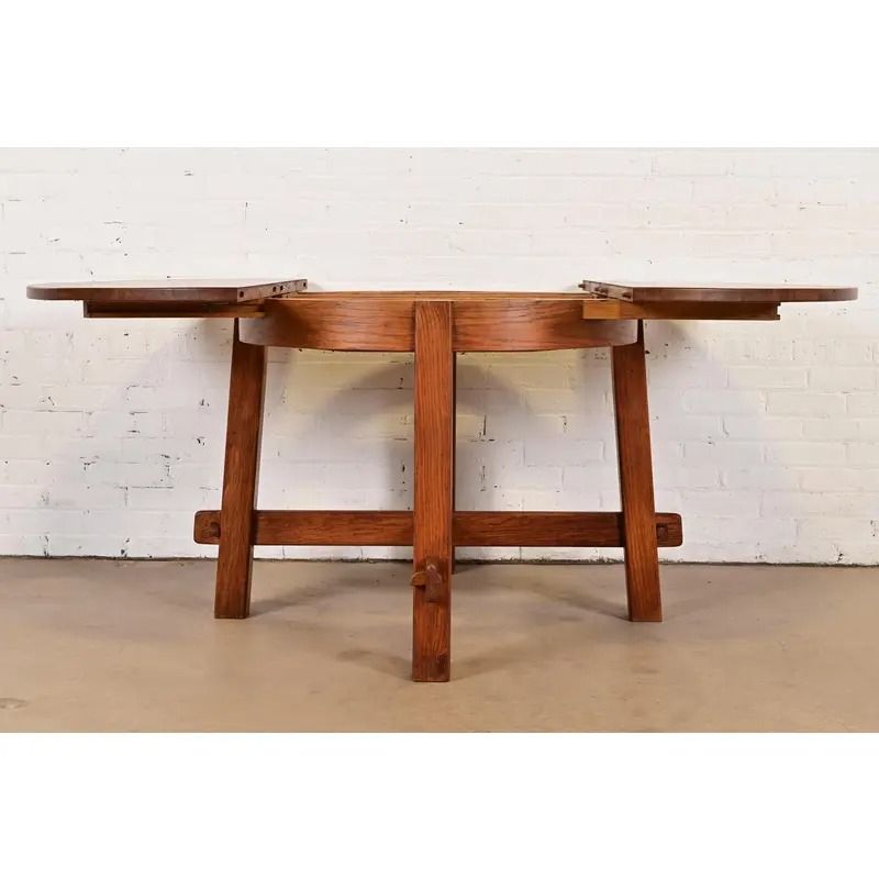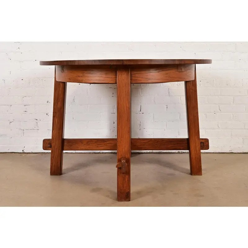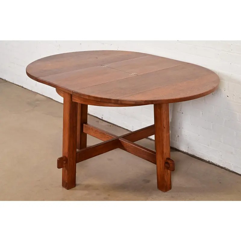 An exceptional Mission or Arts & Crafts style quarter sawn oak extension dining table