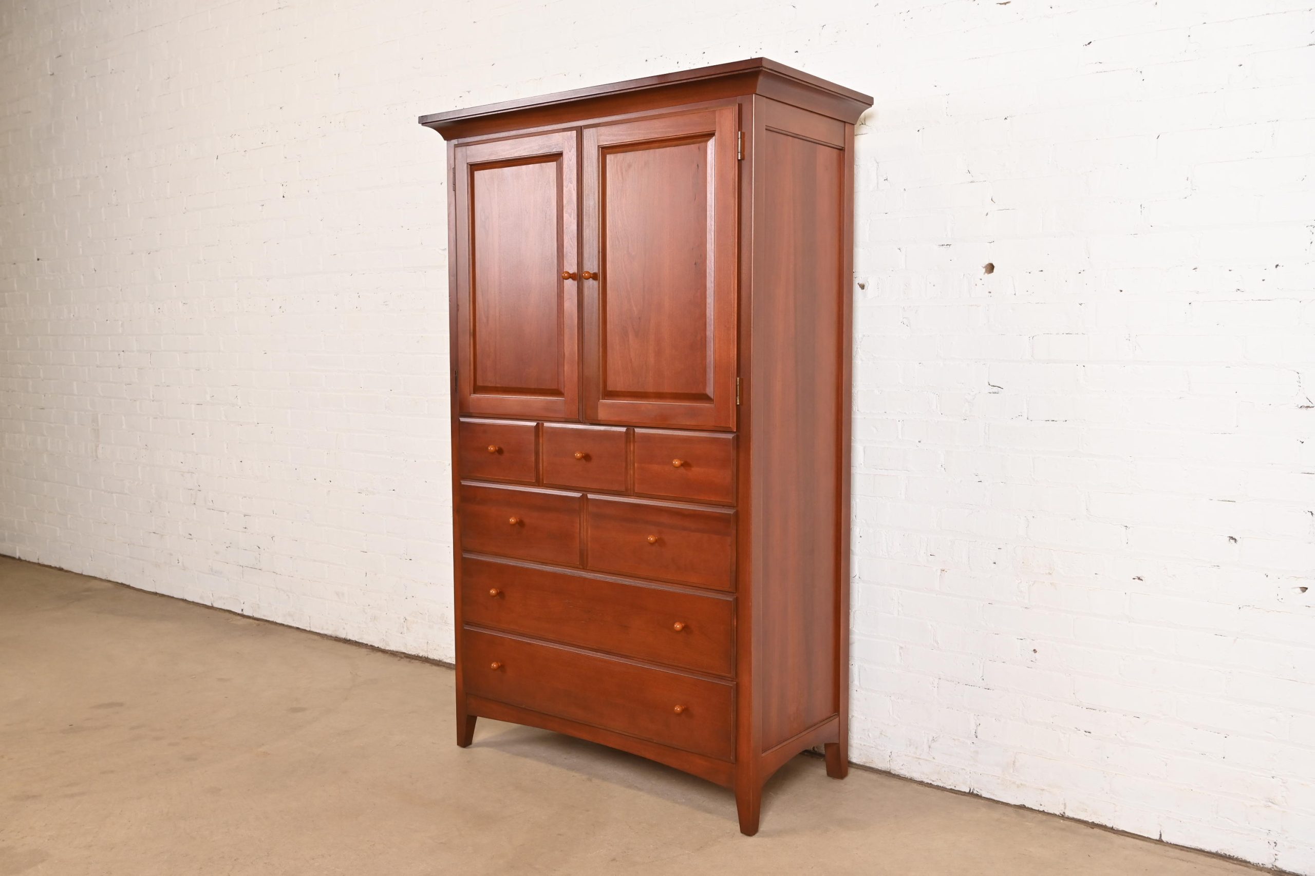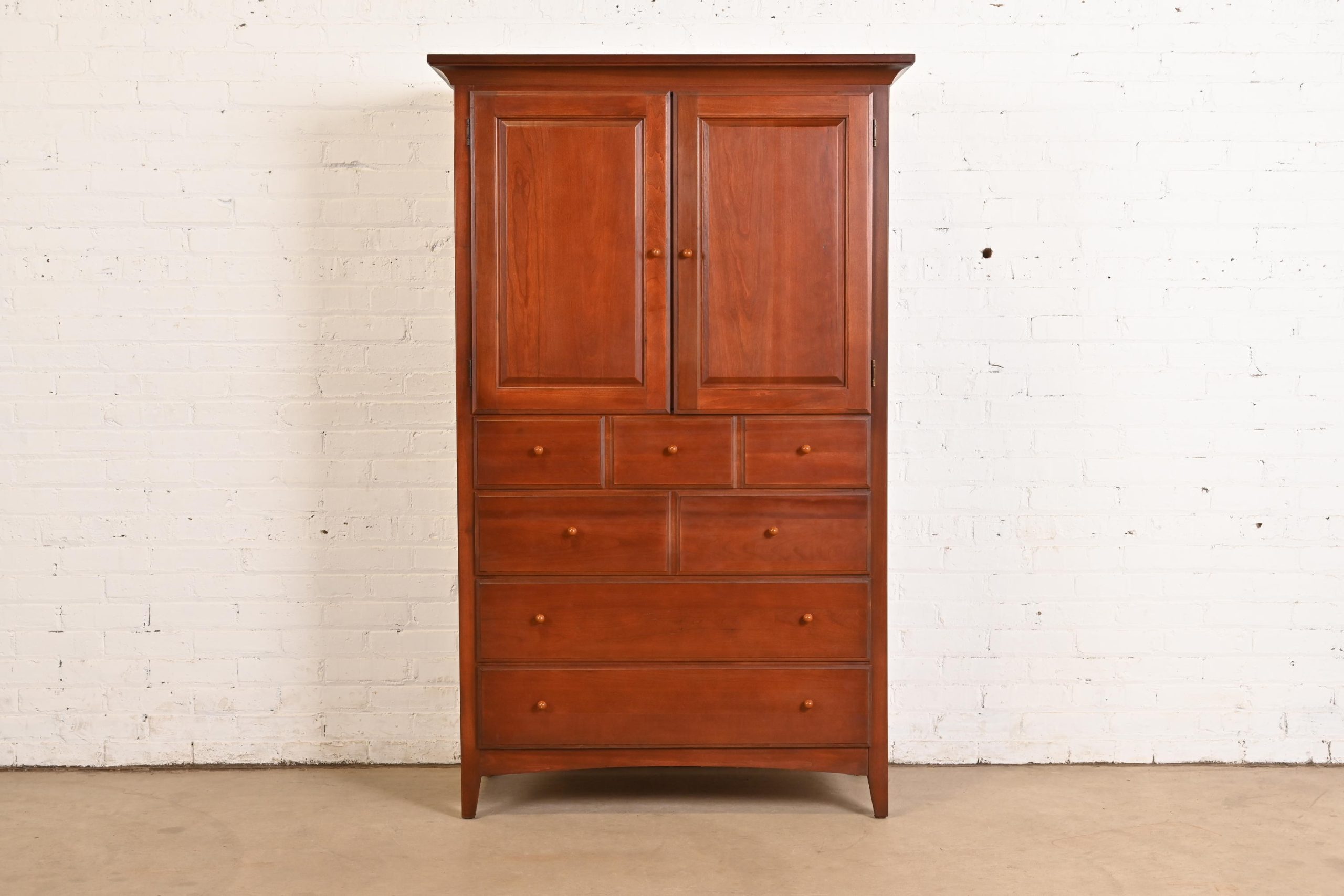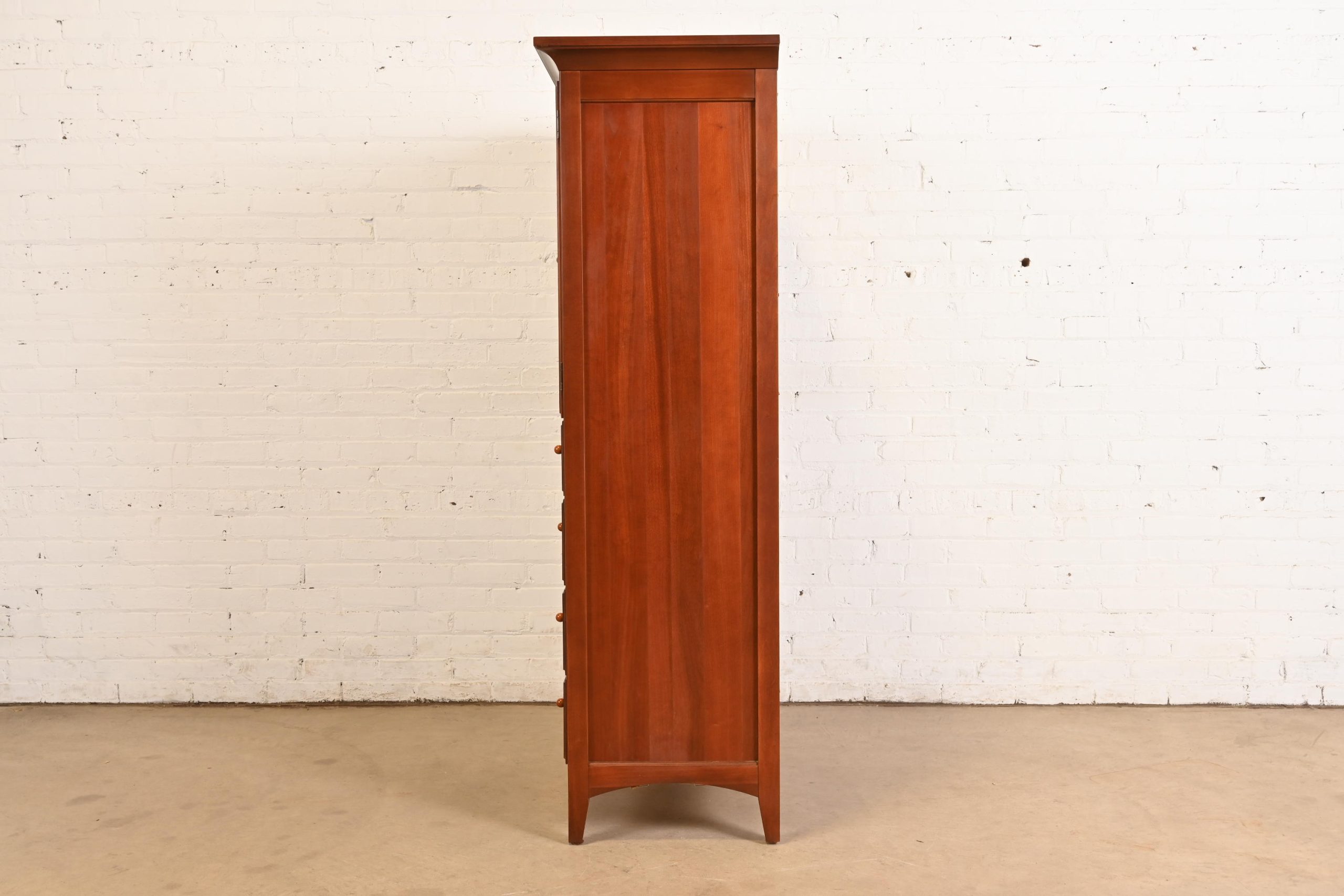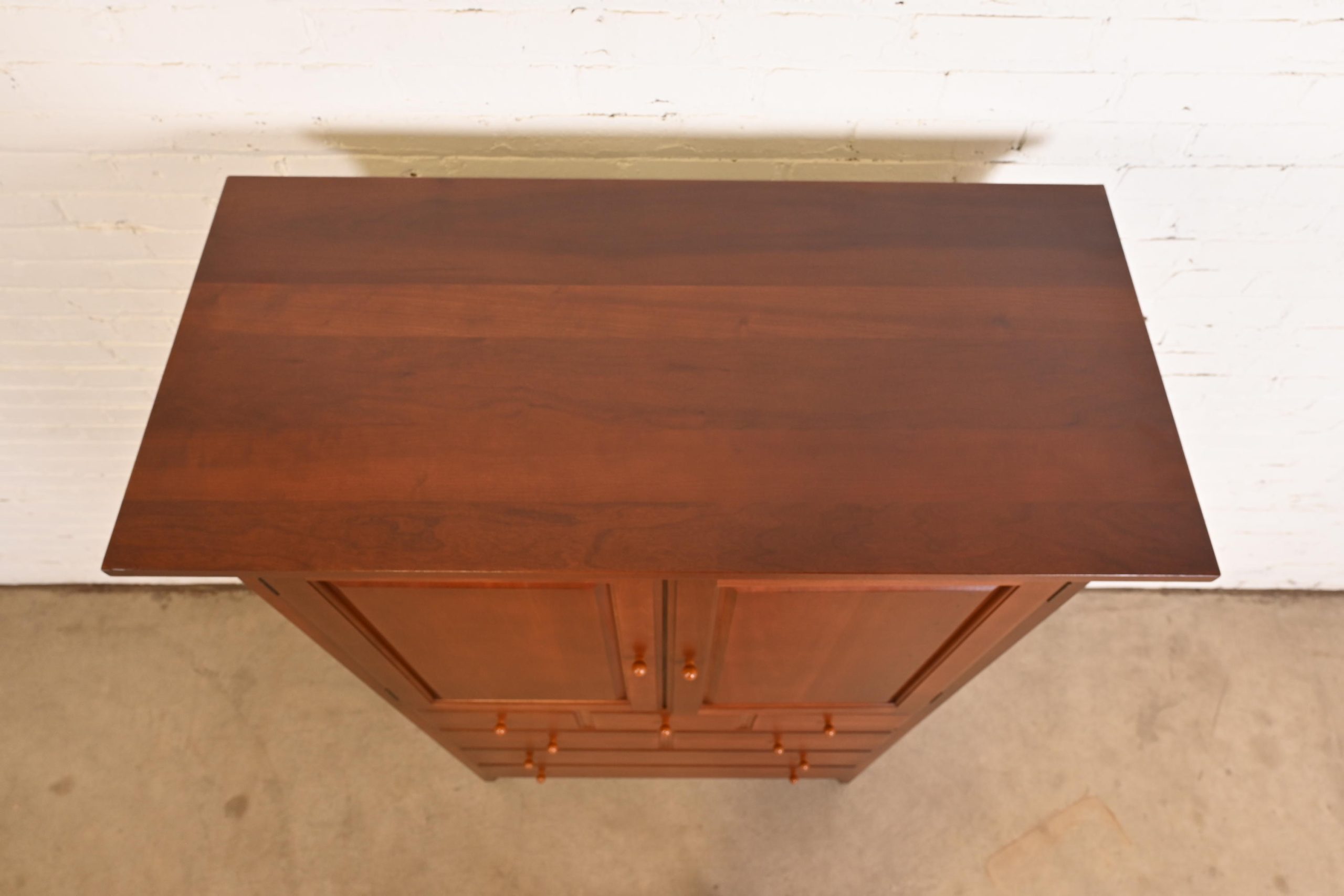 An exceptional Arts & Crafts or Shaker style solid cherry wood armoire dresser, gentleman’s chest, or linen press
