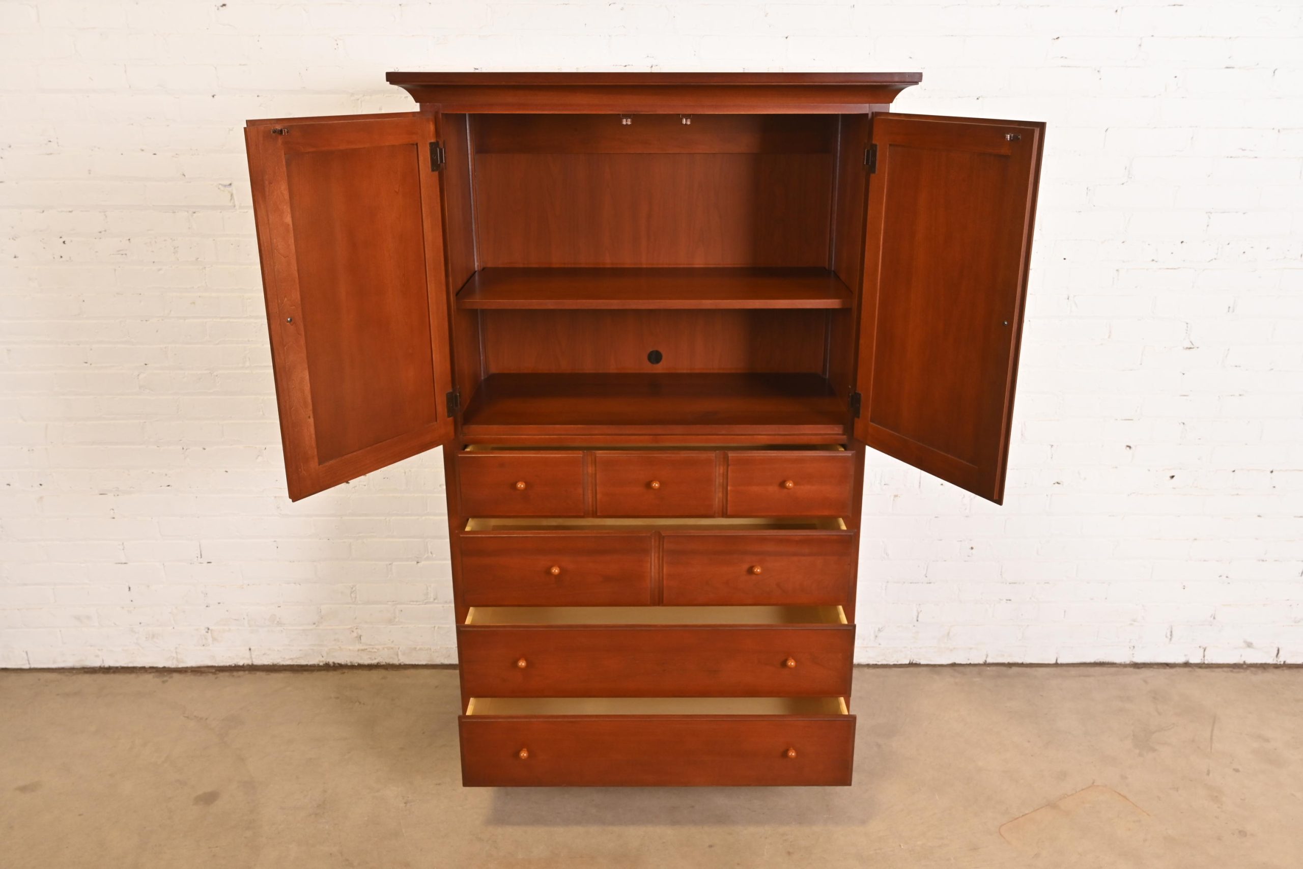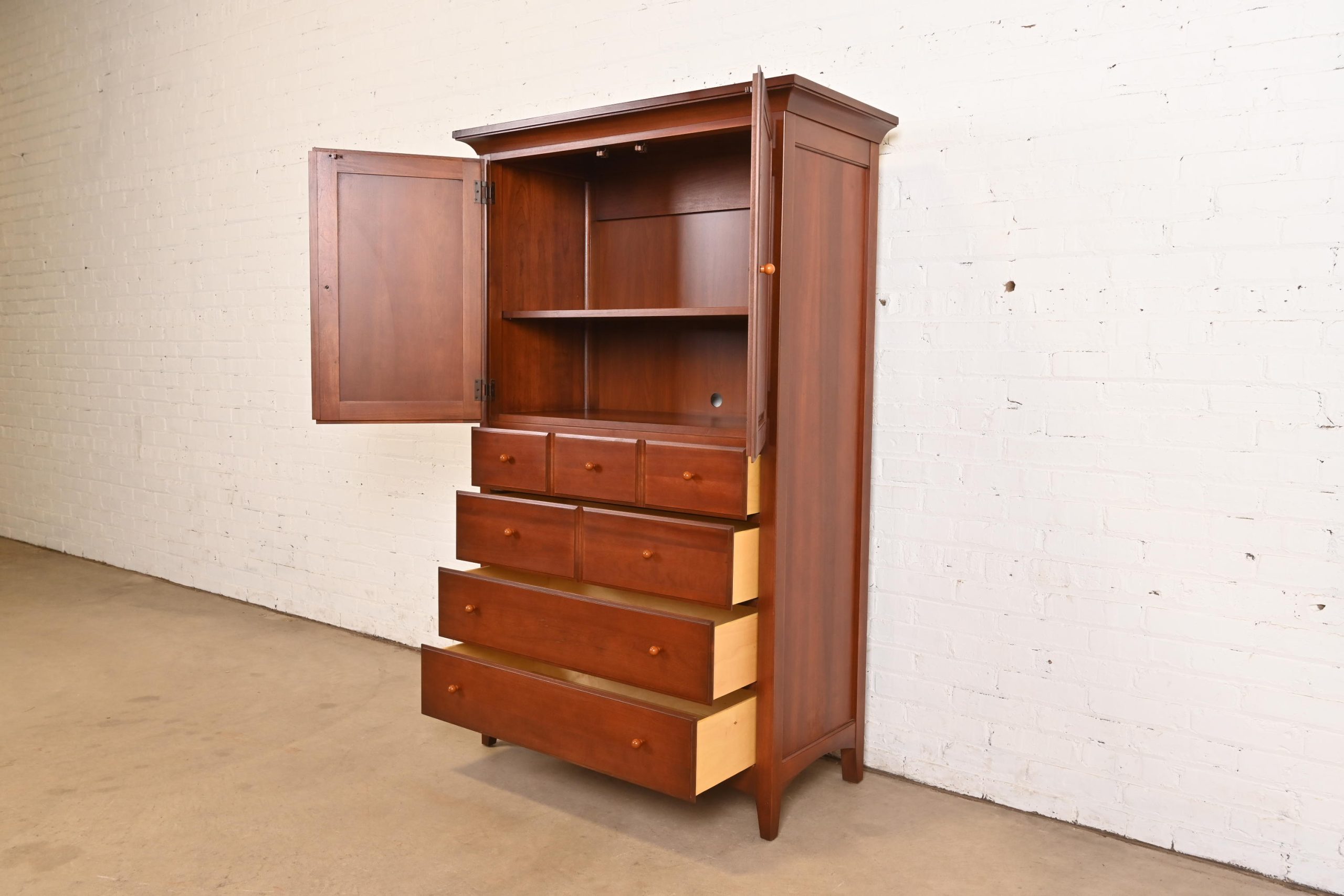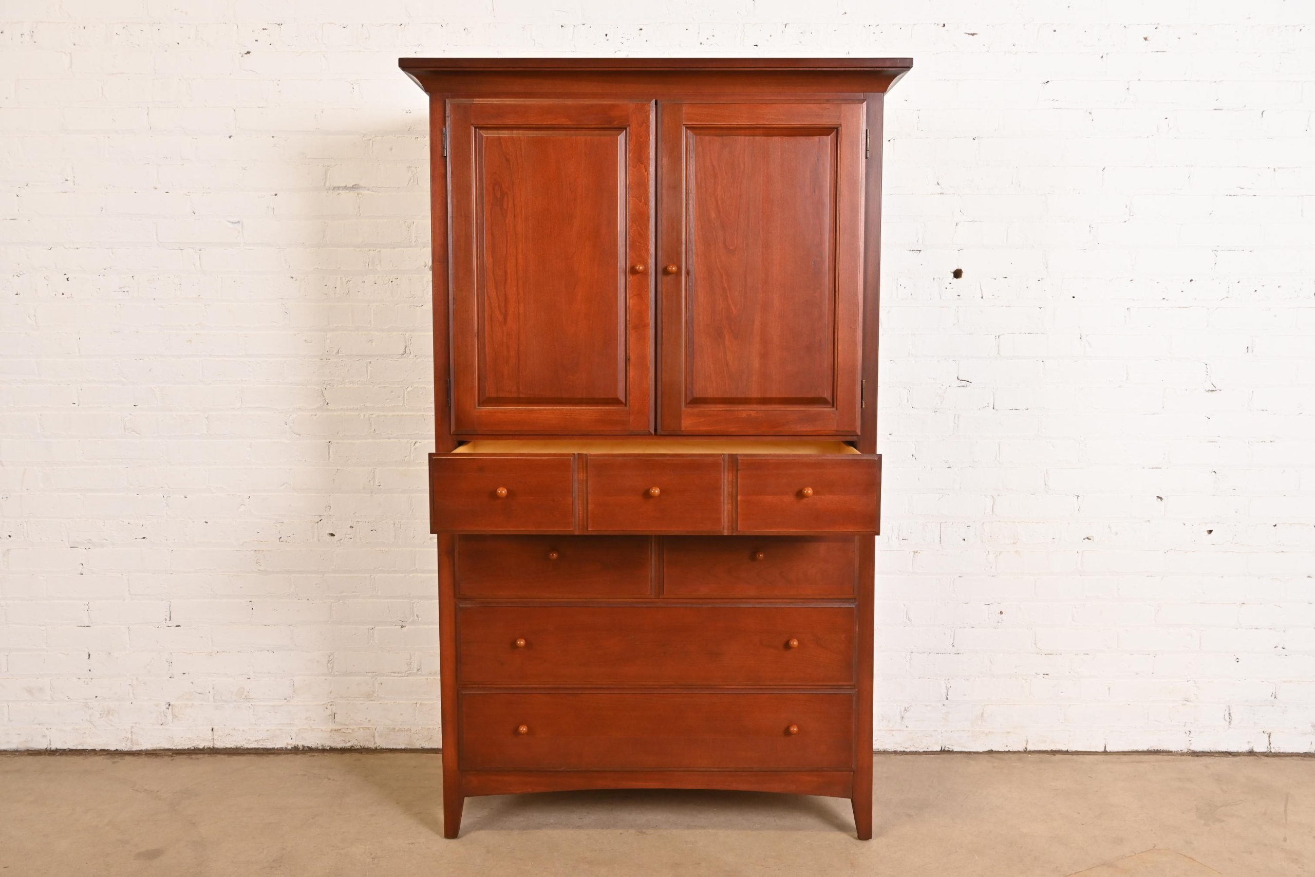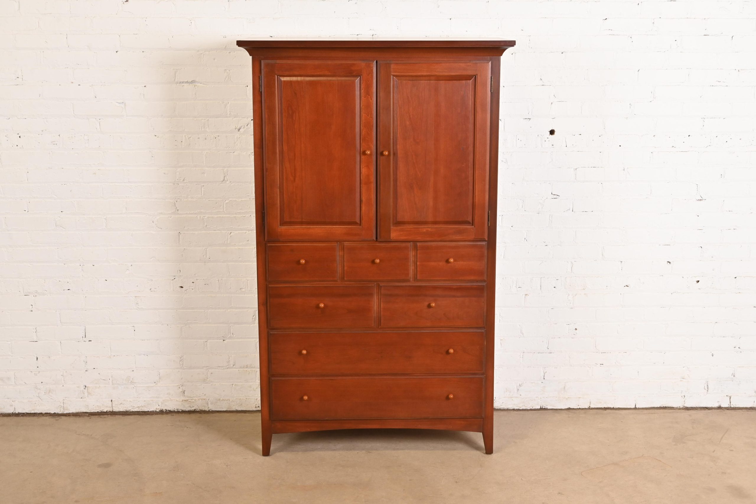 An exceptional Arts & Crafts or Shaker style solid cherry wood armoire dresser, gentleman’s chest, or linen press