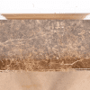 Gorgeous burl wood, with thick beveled marble top, and original brass hardware.