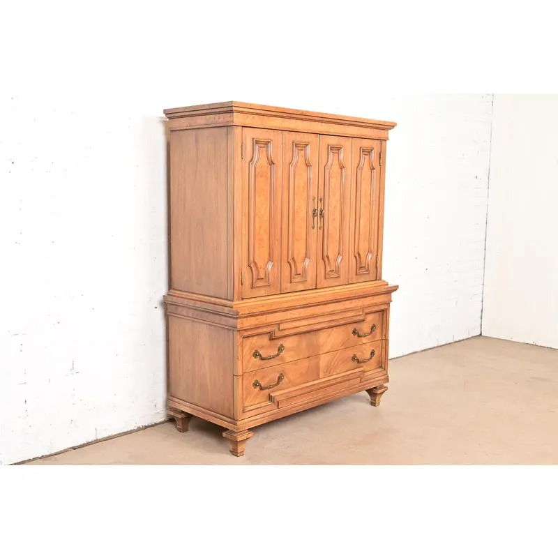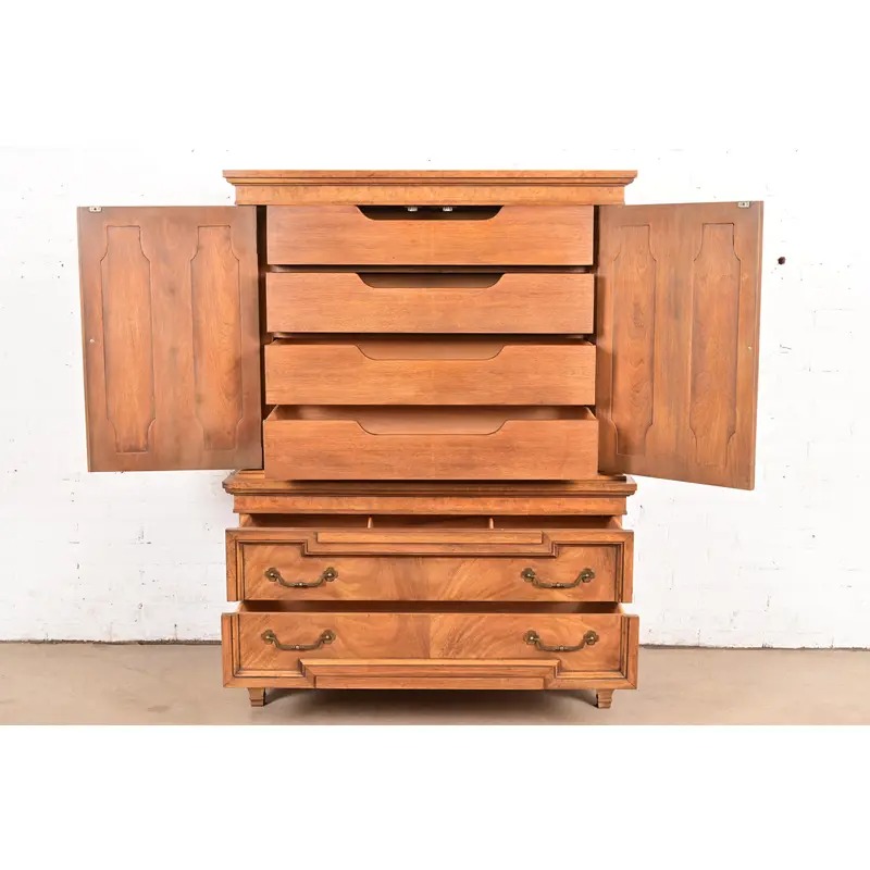 Thomasville French Regency Louis XVI Walnut and Burl Wood Gentleman’s Chest, Circa 1960s