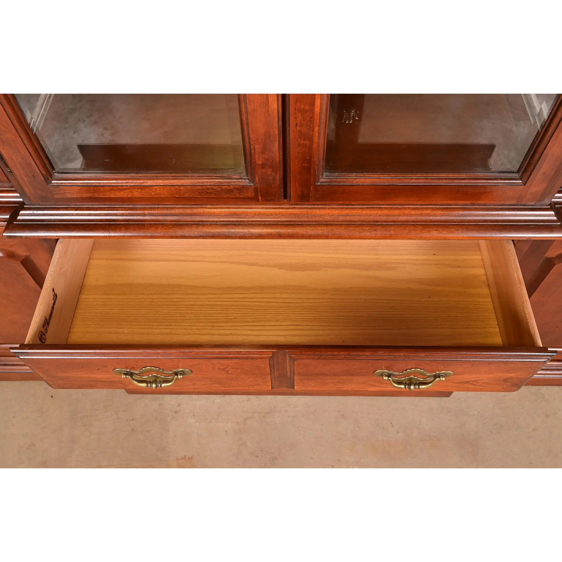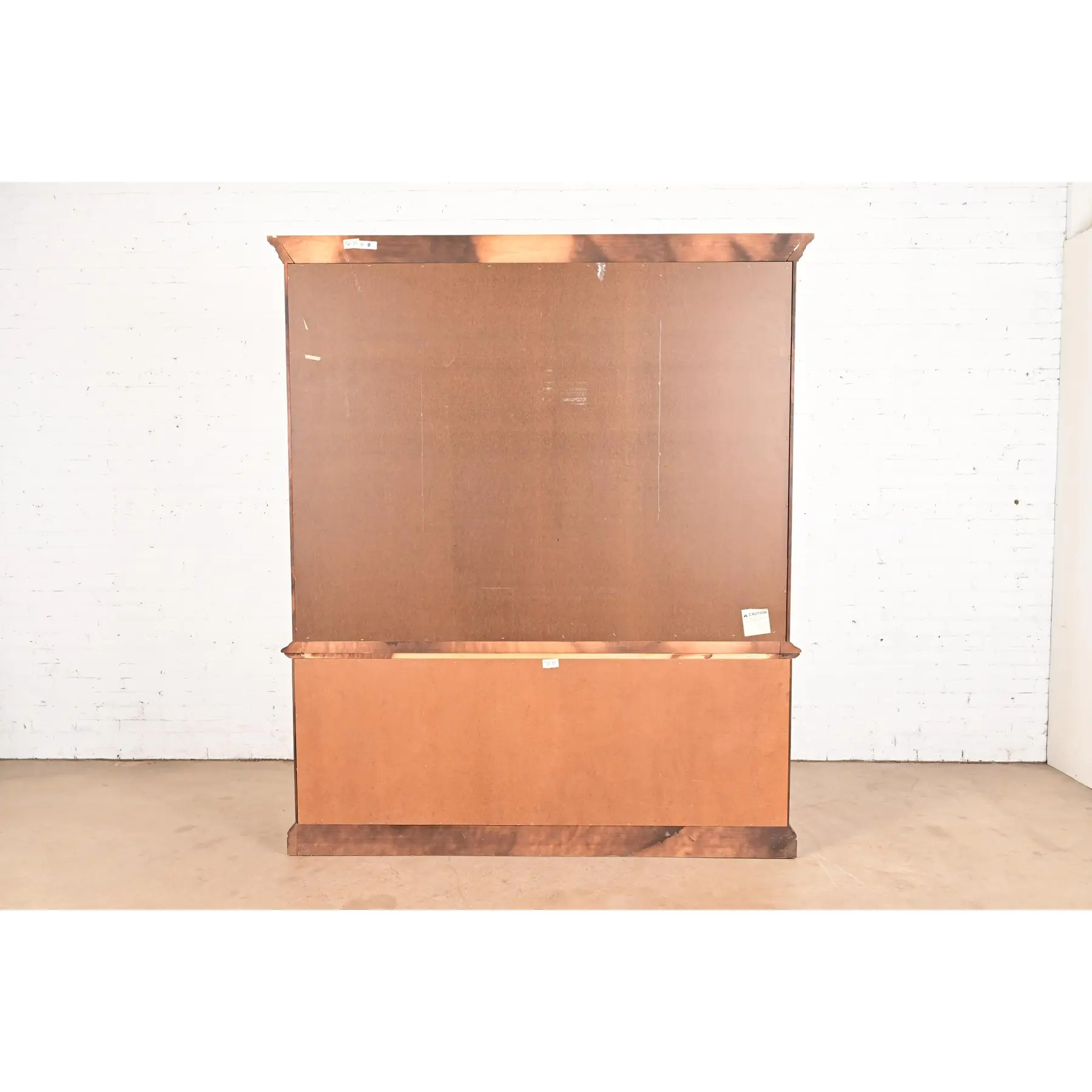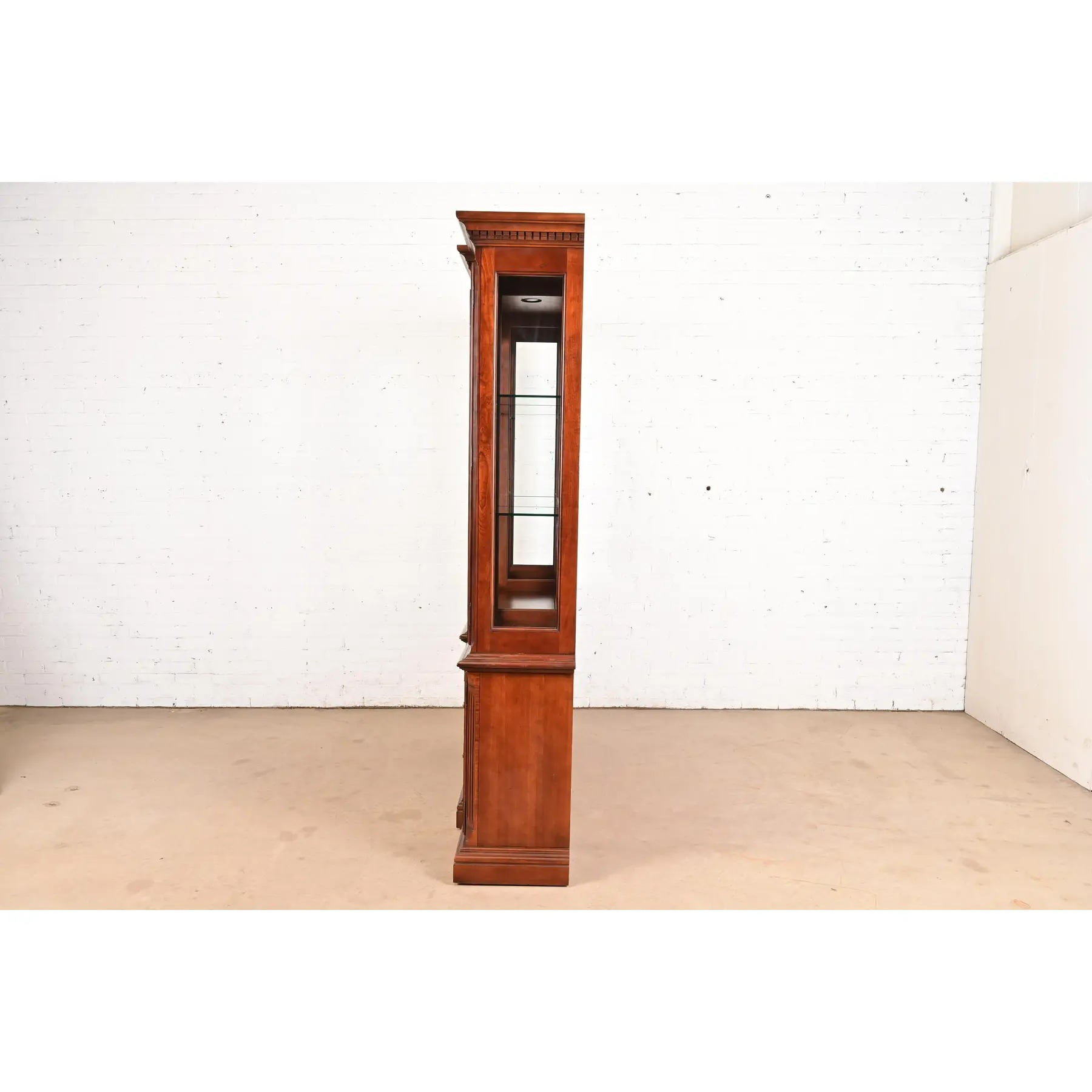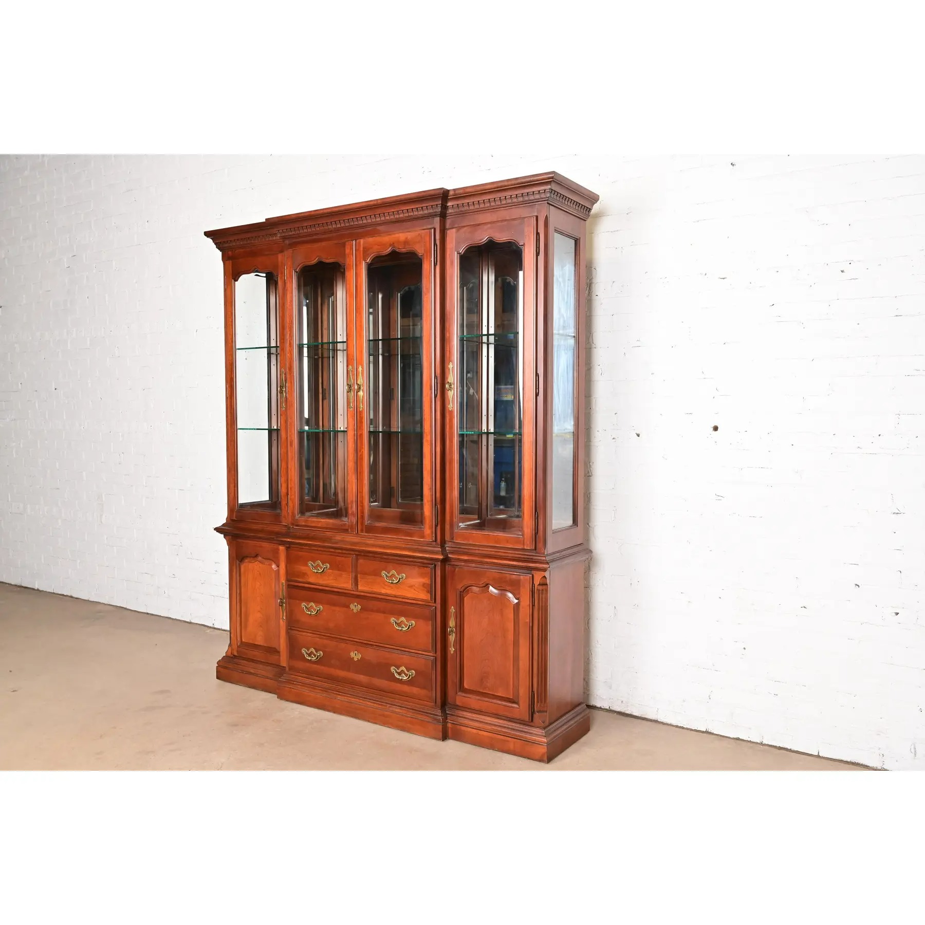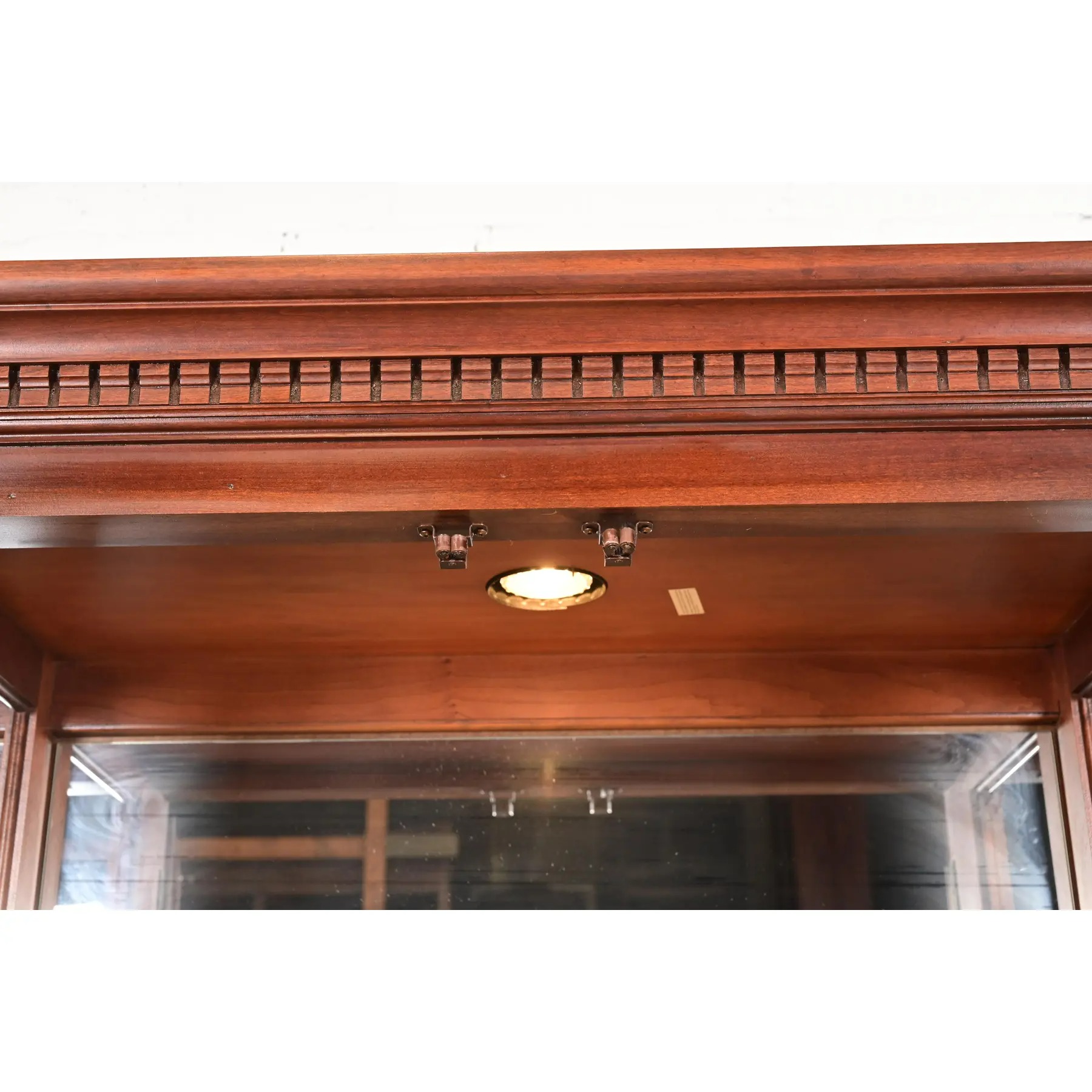A gorgeous Georgian or Chippendale style lighted breakfront bookcase cabinet, display cabinet, or dining cabinet