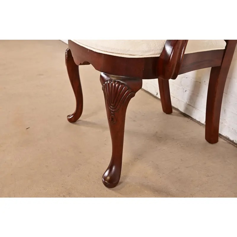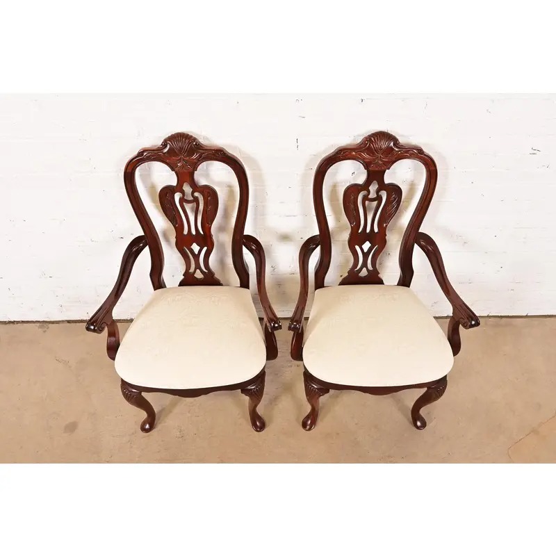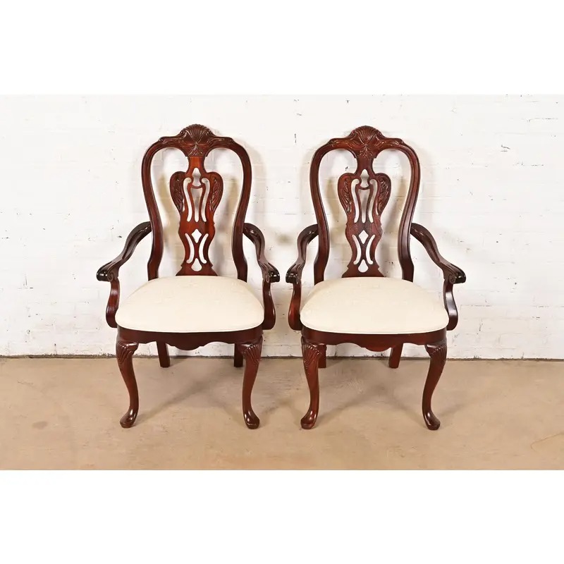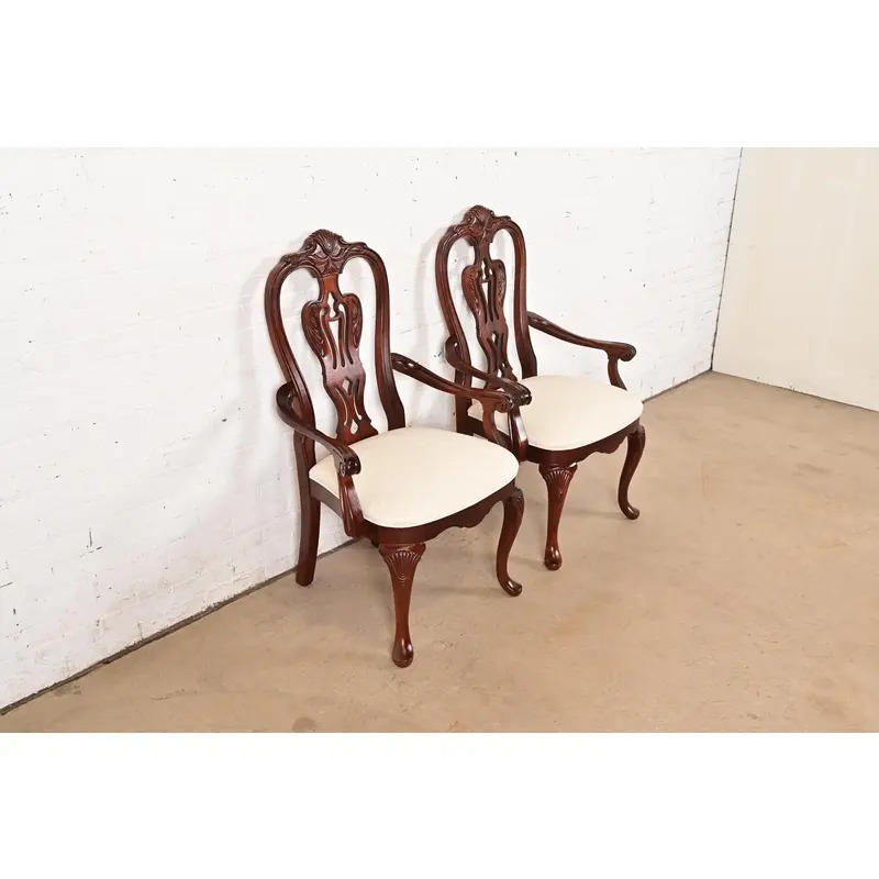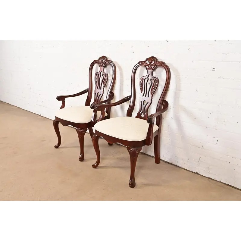 A gorgeous pair of Georgian, Chippendale, or Queen Anne style armchairs or dining captain chairs