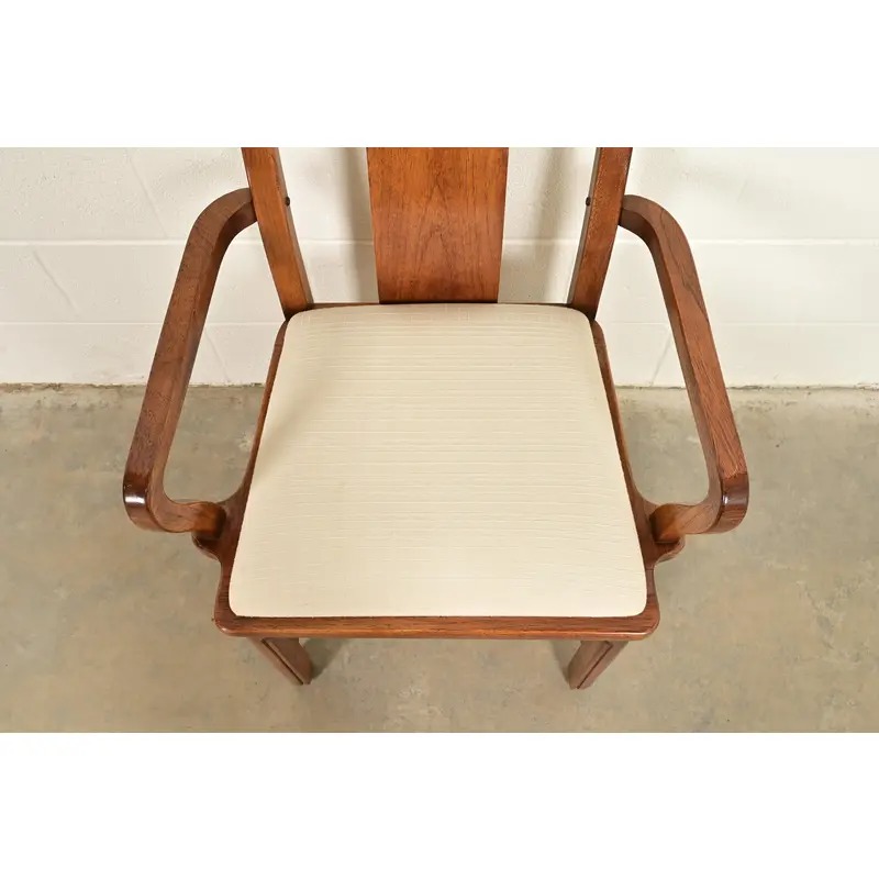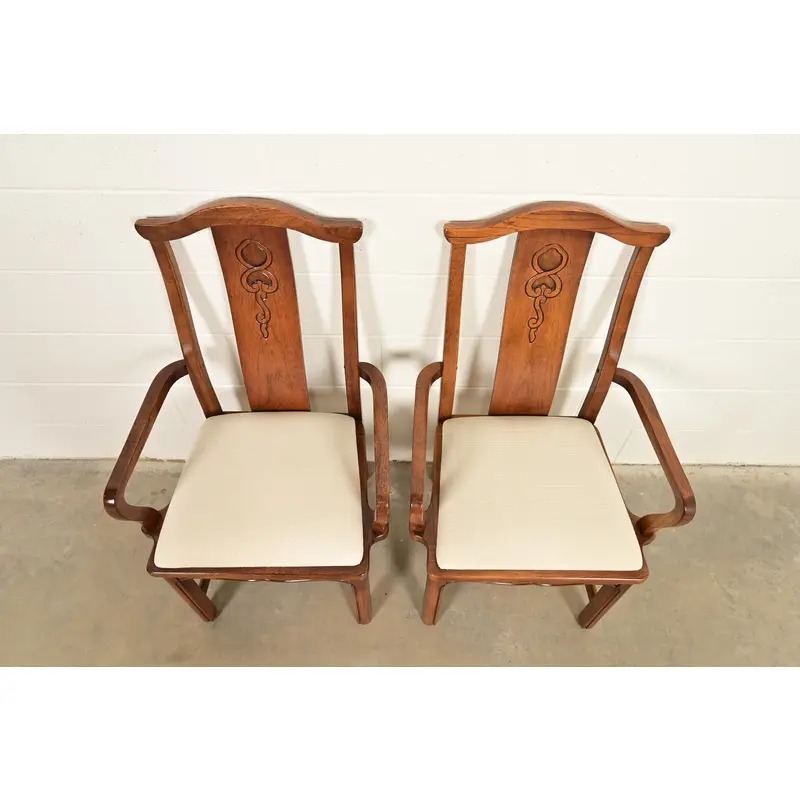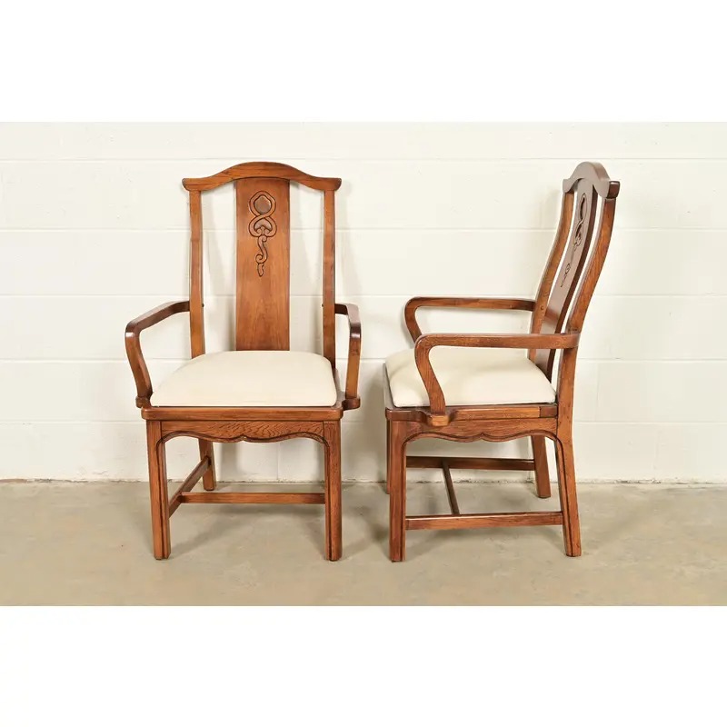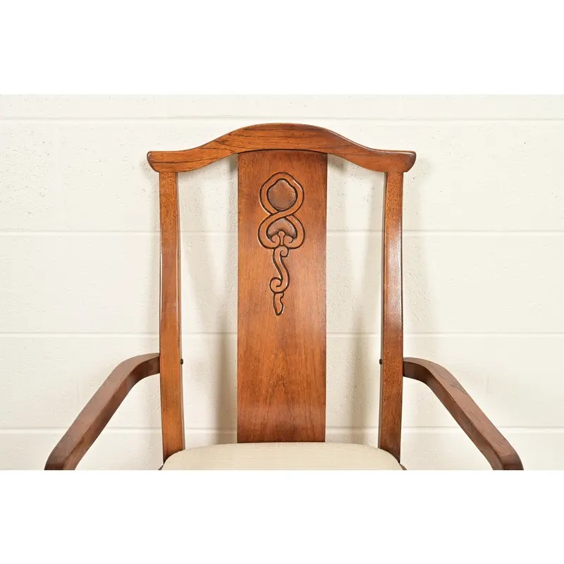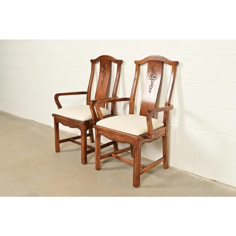 A gorgeous pair of Mid-Century Modern Hollywood Regency Chinoiserie high back armchairs or dining captain chairs