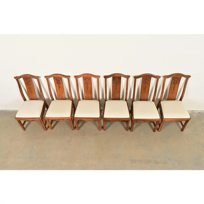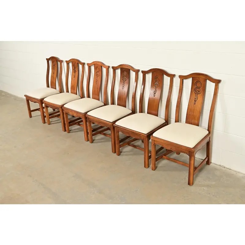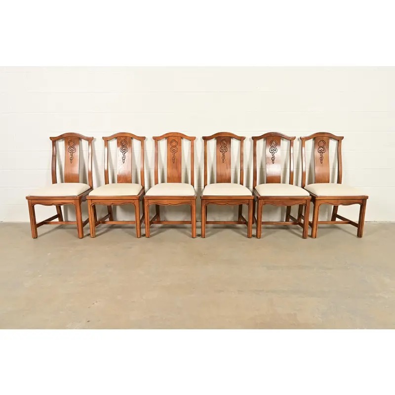 A gorgeous set of six Mid-Century Modern Hollywood Regency Chinoiserie high back dining chairs