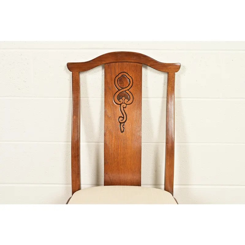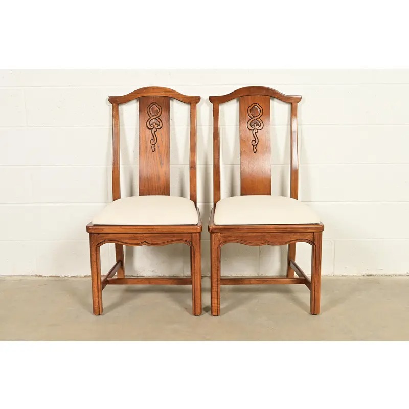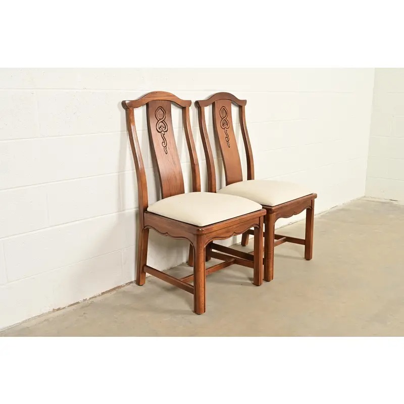 Thomasville Mid-Century Hollywood Regency Chinoiserie Carved Walnut Side Chairs or Dining Chairs, Pair